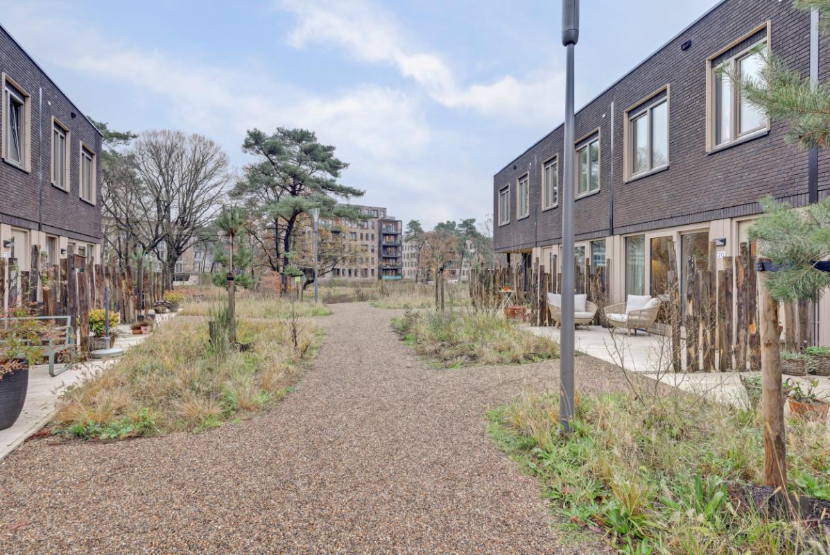 Algemeen In de verkoop gekregen: deze fraaie tussenwoning in de wijk Kerckebosch. Deze woning is onderdeel van het project Bosgaarde, opgeleverd in juli 2024. Bosgaarde was het laatste woningbouwproject in de prijswinnende wijk Kerckebosch. Deze duurzame woning is één van die 30 rug-aan-rugwoningen, in de Bosgaarde waarbij bij de bouw de natuur en het bos leidend zijn geweest. De woningen, de tuinen en het terras vloeien naadloos over in de omringende natuur, waardoor je midden in het bos leeft en woont. Er is gebruikgemaakt van natuurlijke kleuren en materialen en auto’s worden uit het zicht geparkeerd.