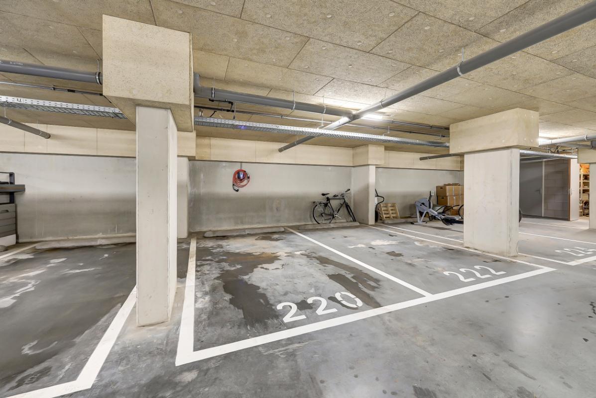 Berging en parkeerplaats Onder het huis ligt een afgesloten garage met eigen parkeerplaats met daarnaast een 4-fase laadpunt voor het opladen van een elektrische auto. In de garage is een ruime berging met een dubbel stopcontact voor het opladen van meerdere elektrische fietsen.