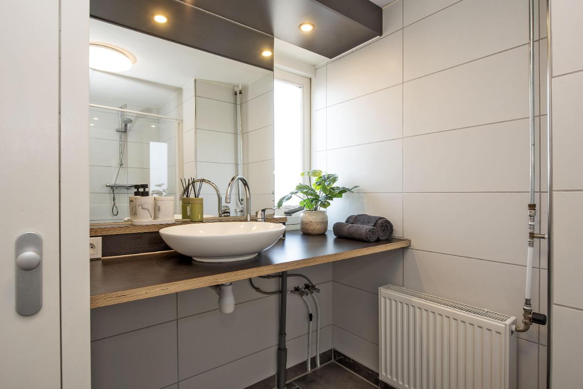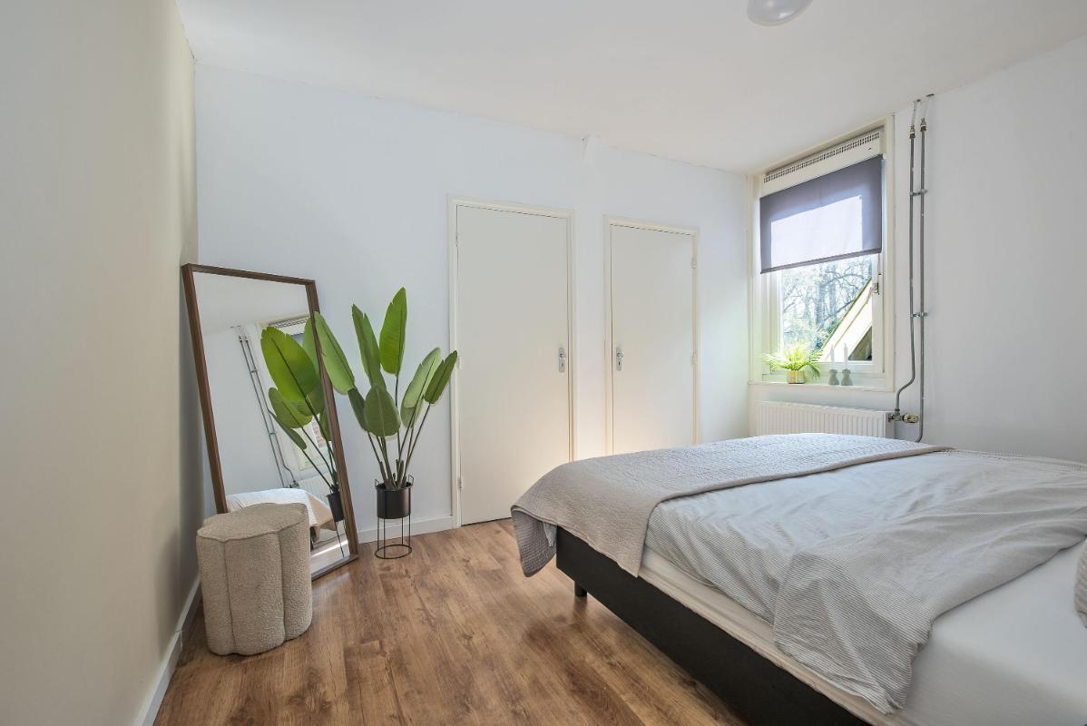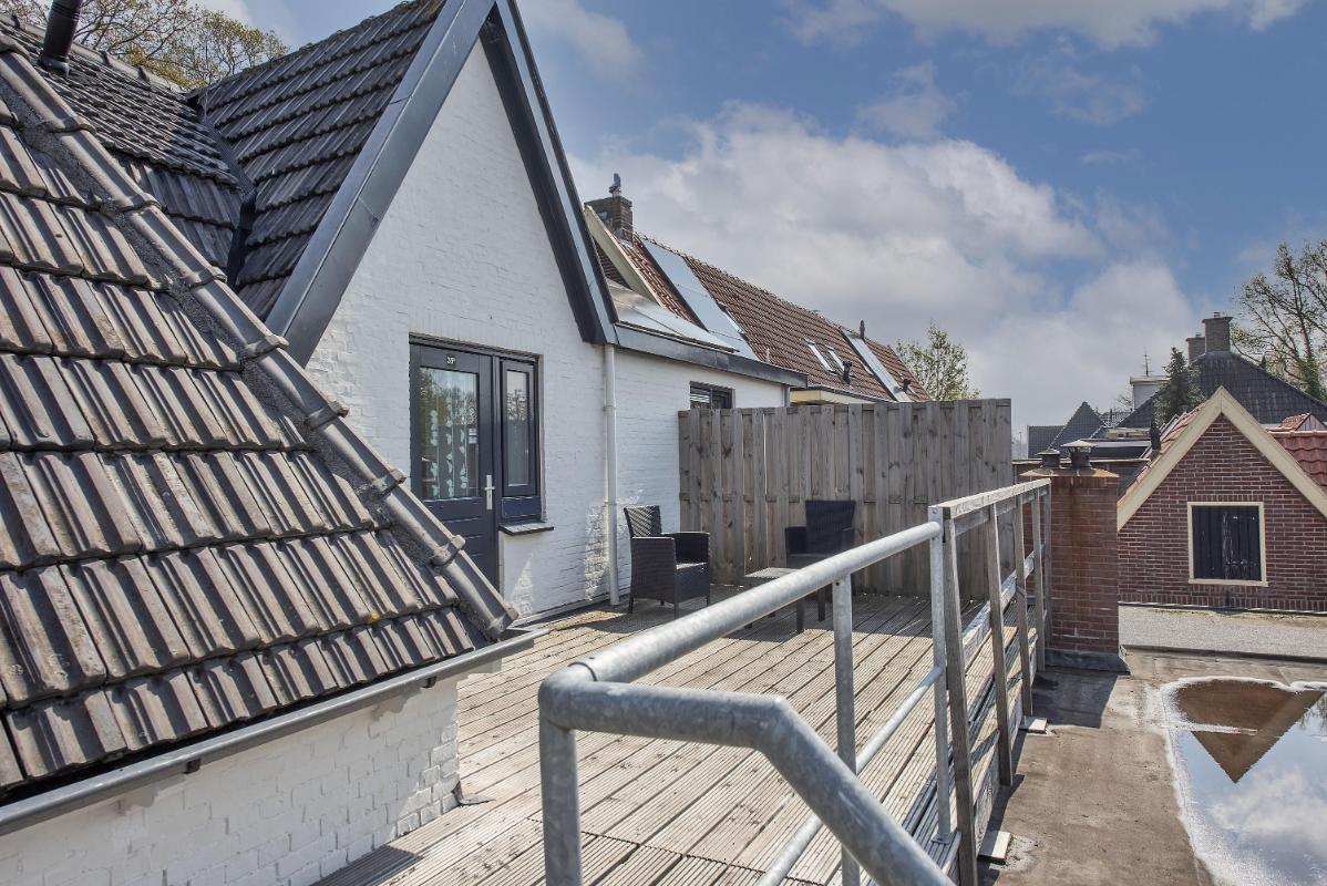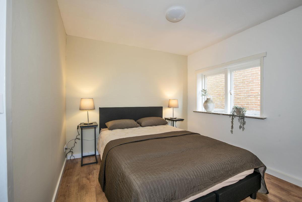 Indeling: Appartement: opgang middels trap, dakterras, entree, hal, toilet met fontein, meterkast, sfeervolle woonkamer met open keuken voorzien van inbouwapparatuur, portaal, ruime slaapkamer met vaste kasten, badkamer met douche, waskom en opstelplaats voor de wasapparatuur, slaapkamer met vaste kasten.