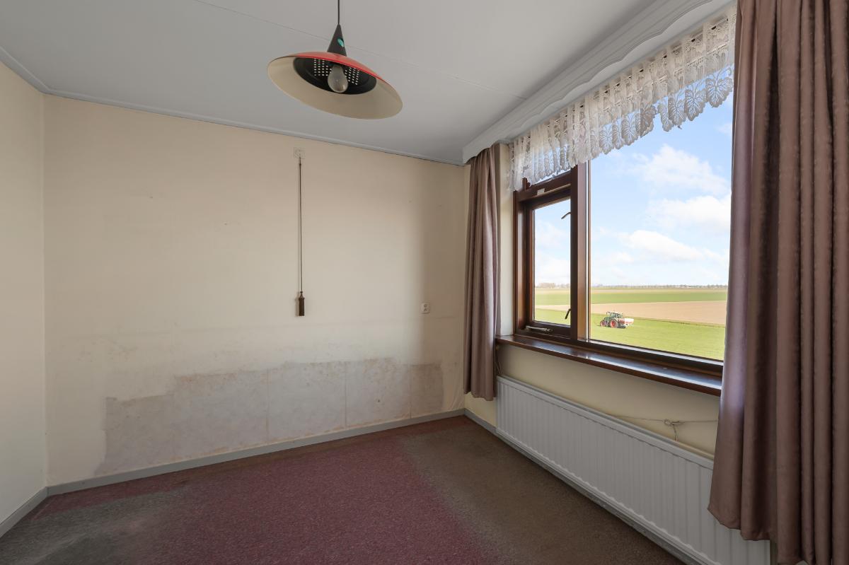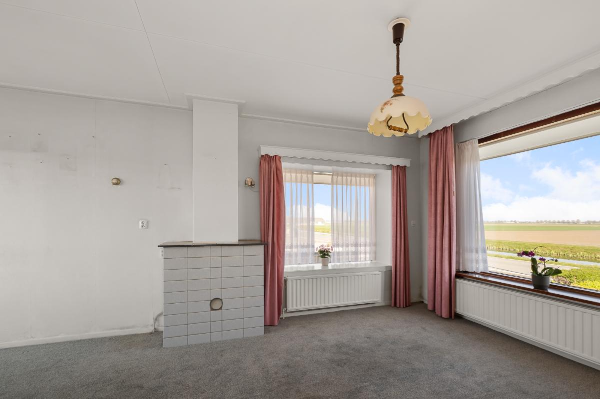 Bij het binnenstappen van de woonkamer valt één ding direct op: de fraaie lichtinval dankzij de hoeveelheid raampartijen. Daardoor valt je oog direct op het panoramisch uitzicht over de uitgestrekte weilanden. De woning zelf verdient enige modernisering, maar dat is met zijn ... m² lekker overzichtelijk te noemen. Zodra de schemering is gevallen en er niet meer van het fenomenale uitzicht kan worden genoten, ga je een verdieping hoger. Op de eerste verdieping zijn 3 slaapkamers gesitueerd en een badkamer met originele granitovloer. De tweede verdieping is bereikbaar via een vlizotrap en daardoor op dit moment niet als woonoppervlakte meegeteld in het aantal m². Door het onder andere plaatsen van een vaste trap, kan die ruimte wel als zodanig worden benut. De inpandige garage en de wasruimte in het souterrain maken dit plaatje compleet.
