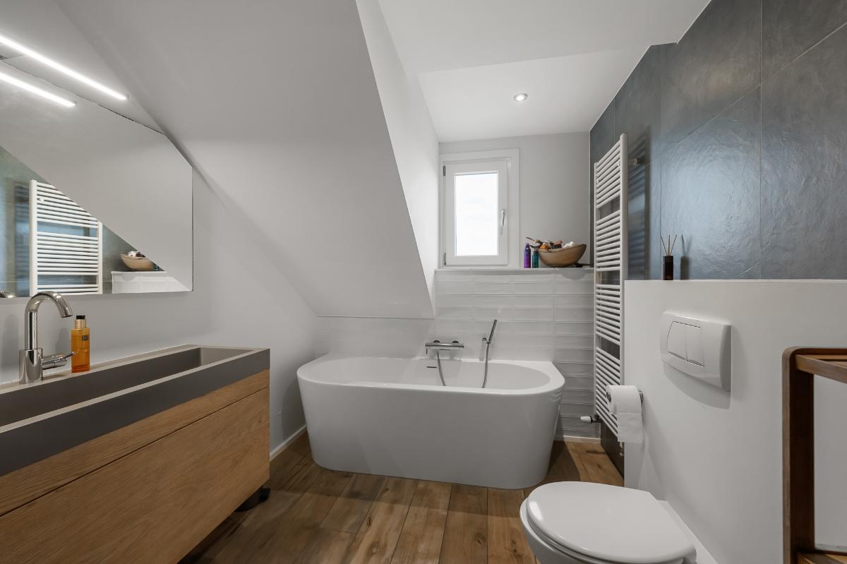 Op de eerste verdieping bevinden zich drie slaapkamers, waarvan één met handige inbouwkast. De ruime en vergrote badkamer is luxe uitgevoerd en voorzien van een toilet, badkamermeubel, douche en ligbad. De tweede verdieping biedt een vierde slaapkamer met kunststof dakkapel, voorzien van buitenzonwering en horren. Achter de knieschotten is extra bergruimte aanwezig.