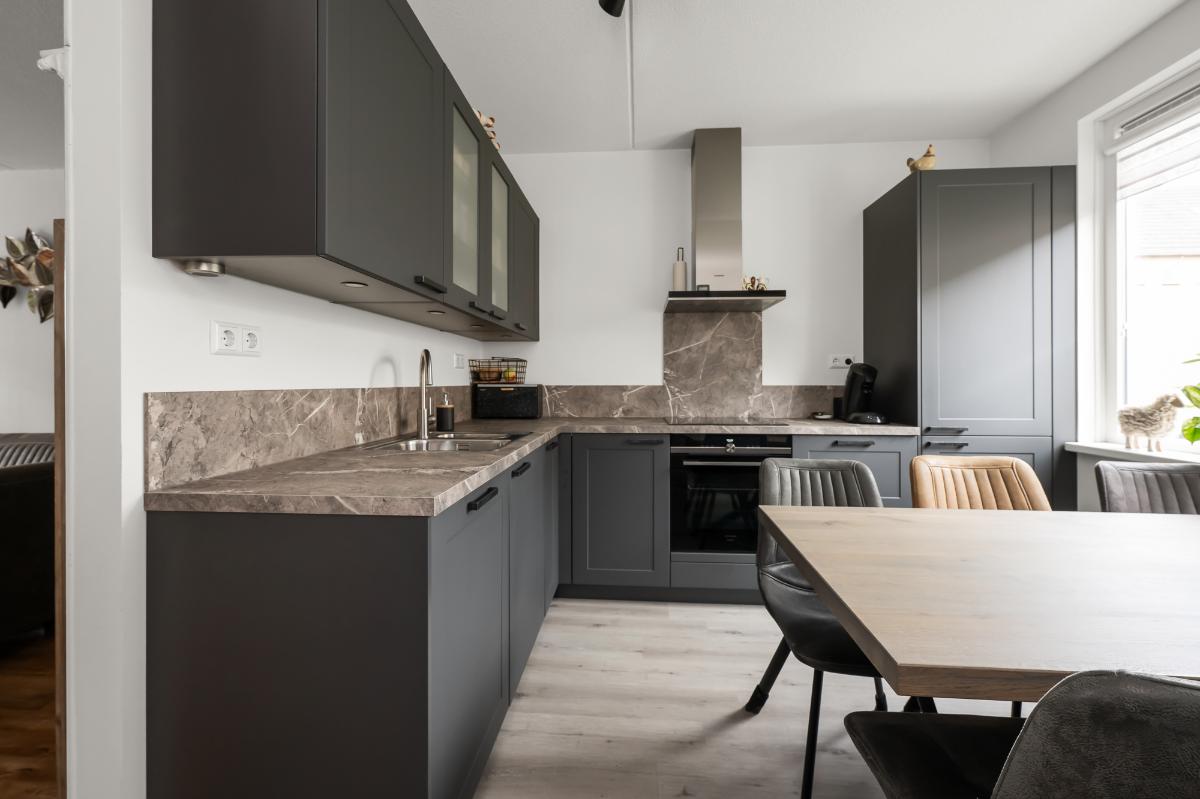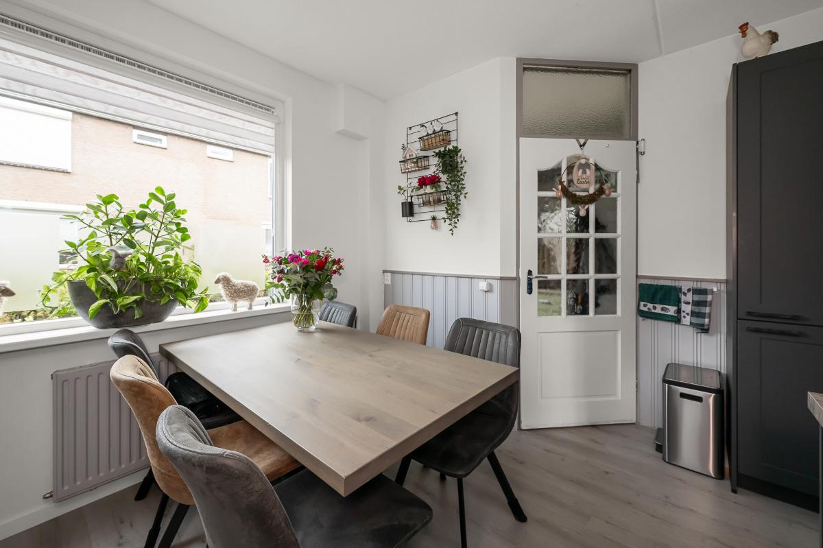 Feiten op een rij Uitgebouwde woonkamer met openslaande deuren Moderne woonkeuken (2023) met Siemens inbouwapparatuur Elektrische rolluiken op de eerste verdieping Schilderwerk uitgevoerd in 2024 Gedeeltelijk kunststof kozijnen met HR++ glas Nokvorsten vervangen in april 2026 12 zonnepanelen aanwezig C.V.-ketel Intergas (2018) Fraai aangelegde tuin met vernieuwde erfafscheiding (2023)
