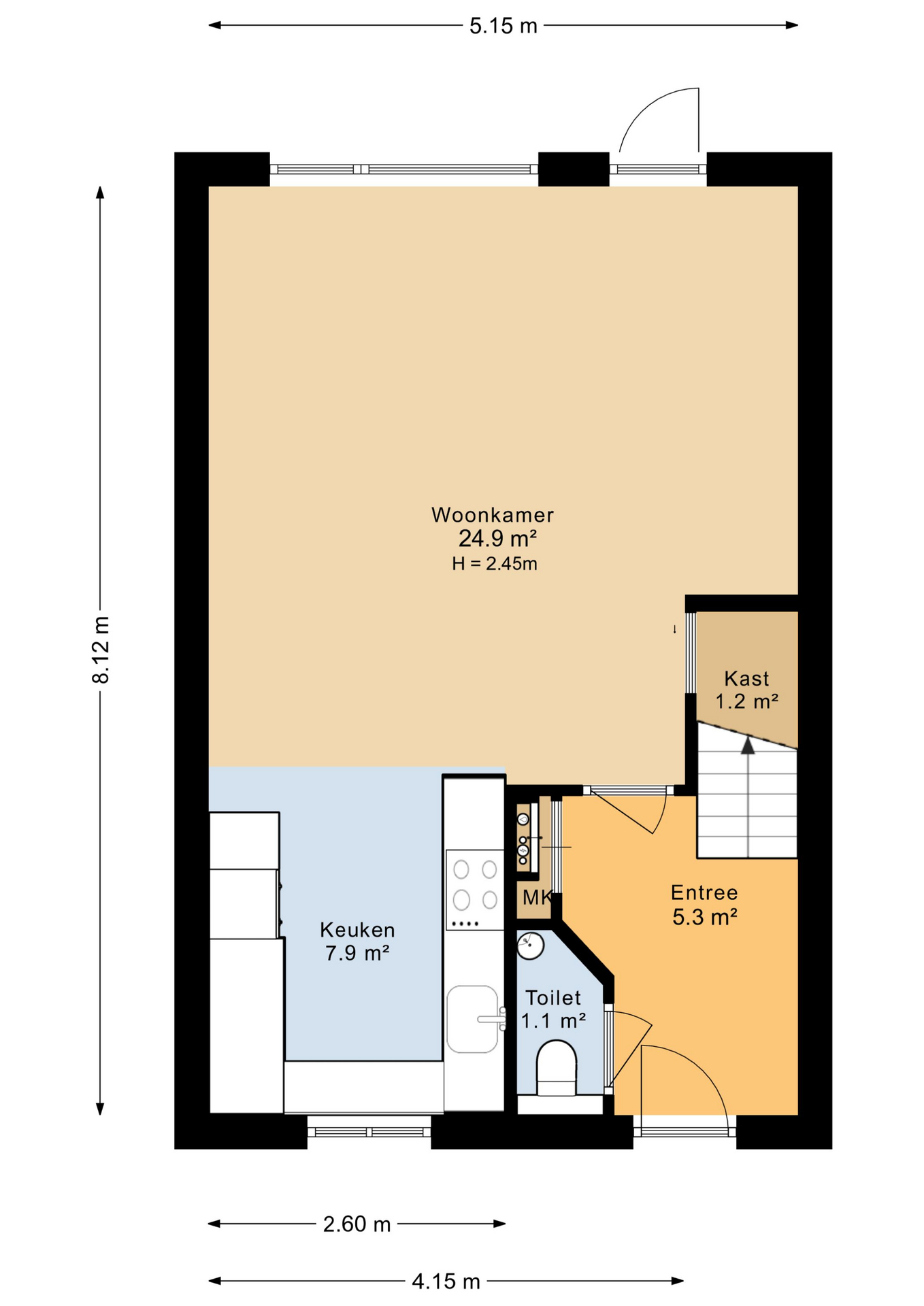 Via de entree kom je in de hal met toilet, meterkast en trapopgang. Het toilet is netjes afgewerkt en voorzien van een fonteintje.