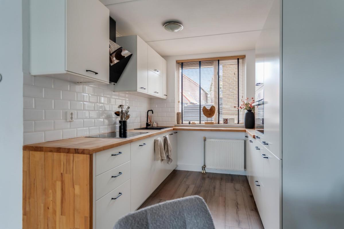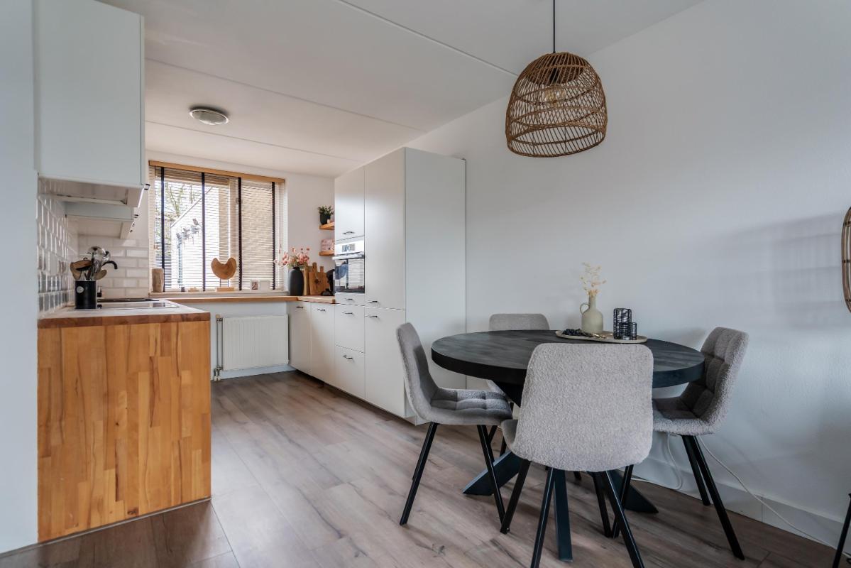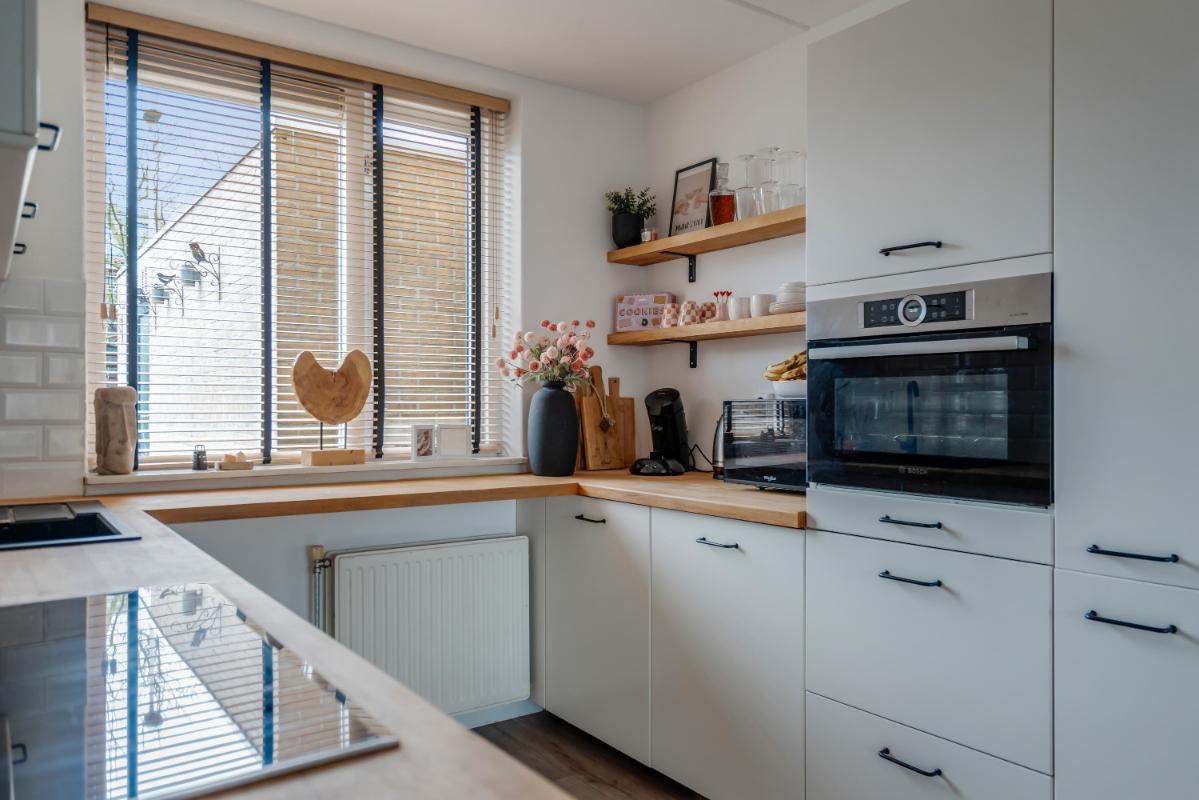 Aan de voorzijde bevindt zich de moderne keuken uit 2021. De keuken heeft een eigentijdse uitstraling en is compleet uitgevoerd met inbouwapparatuur waaronder een kookplaat, afzuigkap, oven, vaatwasser en koel vriescombinatie. Er is volop werkruimte en kastruimte aanwezig waardoor koken hier comfortabel en praktisch is.