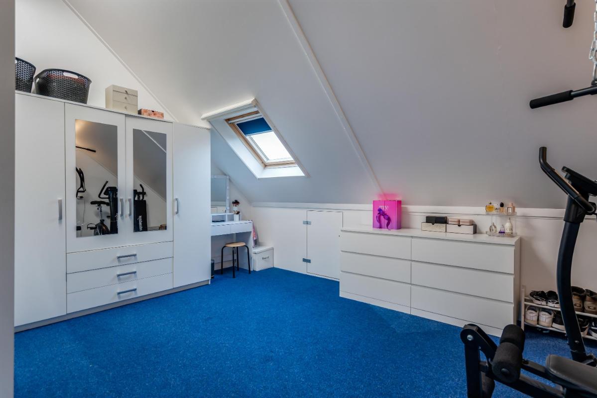 Via een vaste trap bereik je de zolderverdieping. Hier bevindt zich een ruime vierde slaapkamer met dakraam. Door de hoogte en de open indeling voelt deze verdieping verrassend ruim aan. Achter de knieschotten is praktische bergruimte aanwezig.