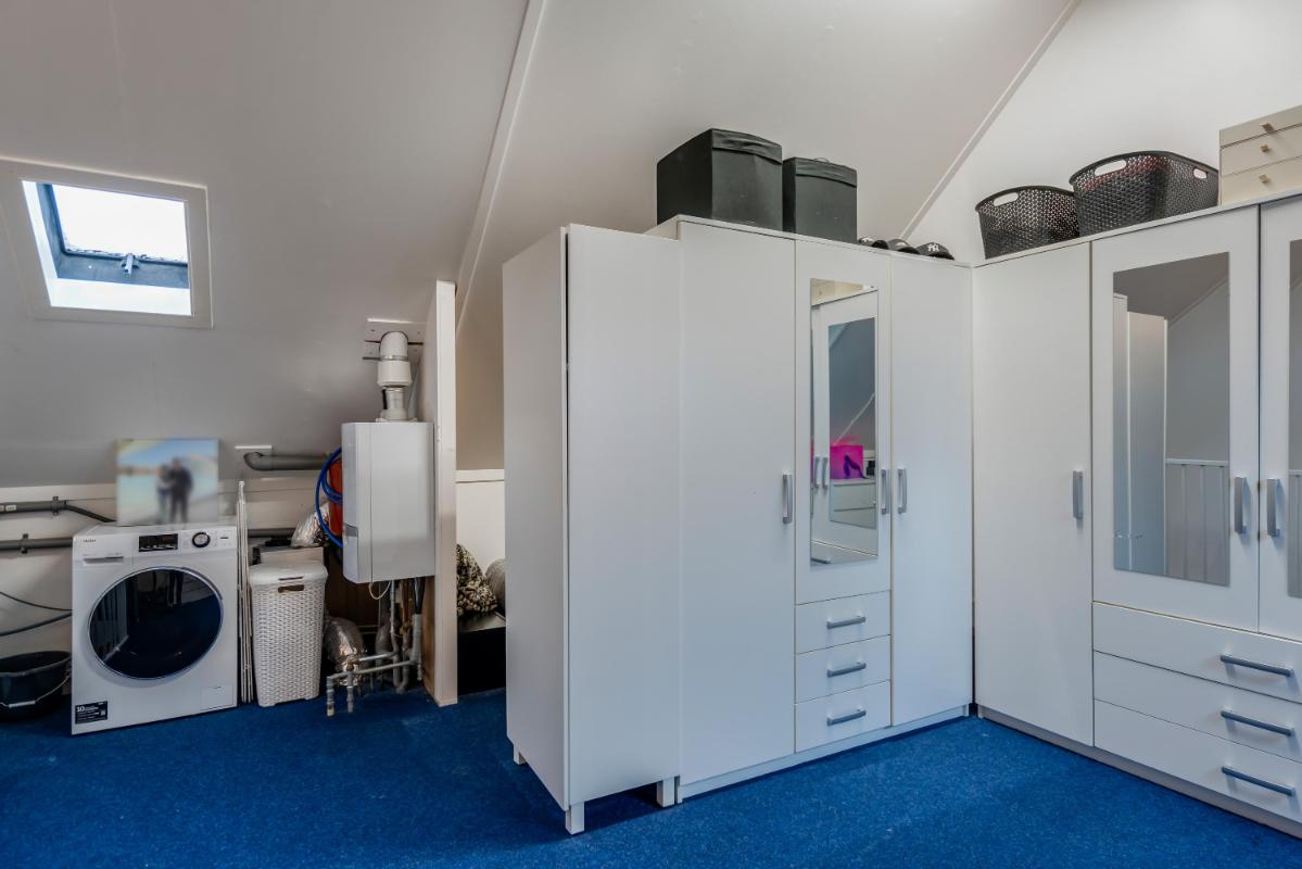 Op deze verdieping bevinden zich ook de aansluitingen voor wassen en drogen en de cv ketel uit 2017. De ruimte is multifunctioneel en perfect te gebruiken als extra slaapkamer, werkruimte of hobbykamer.