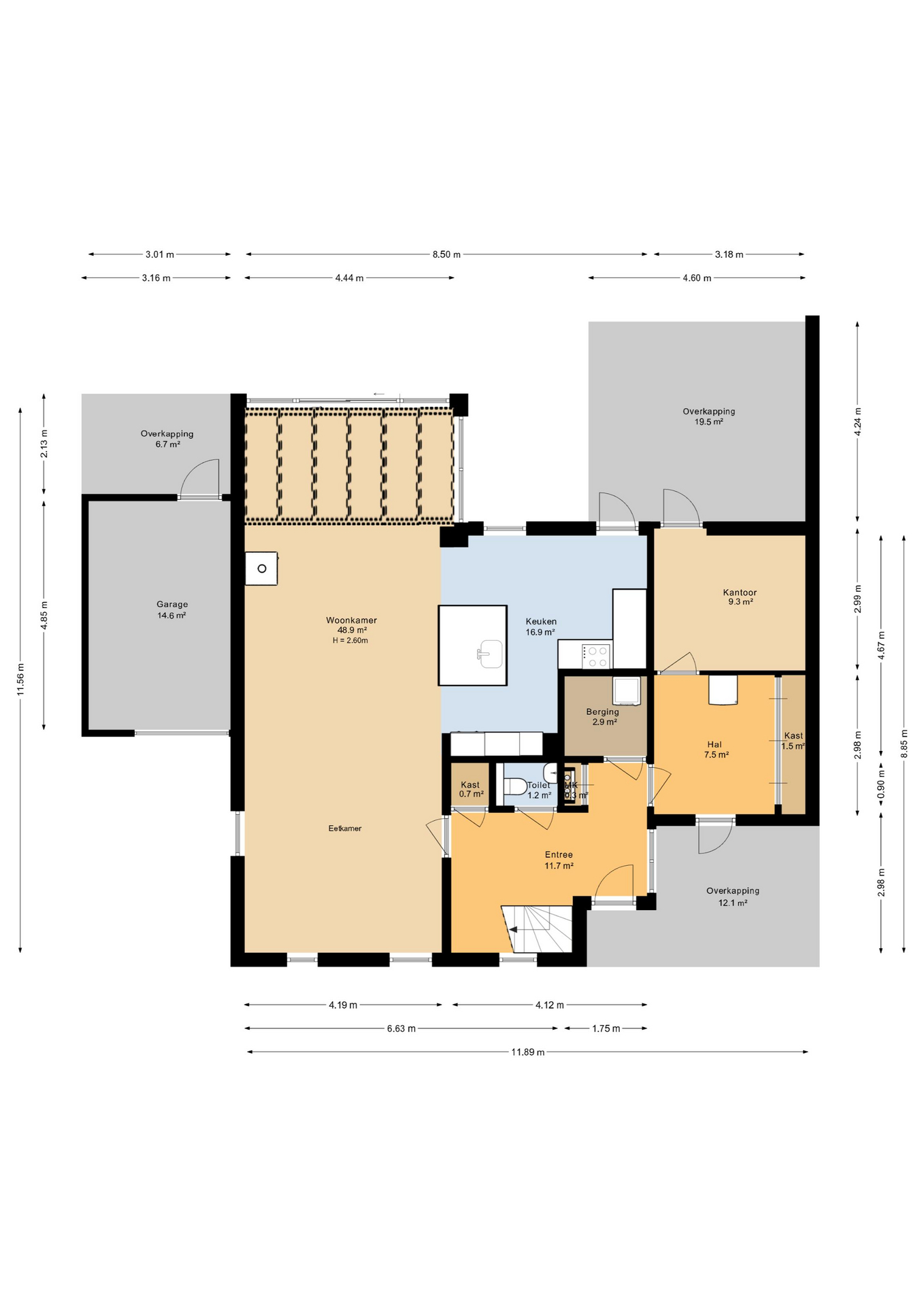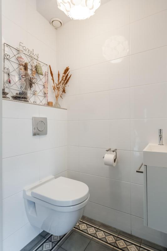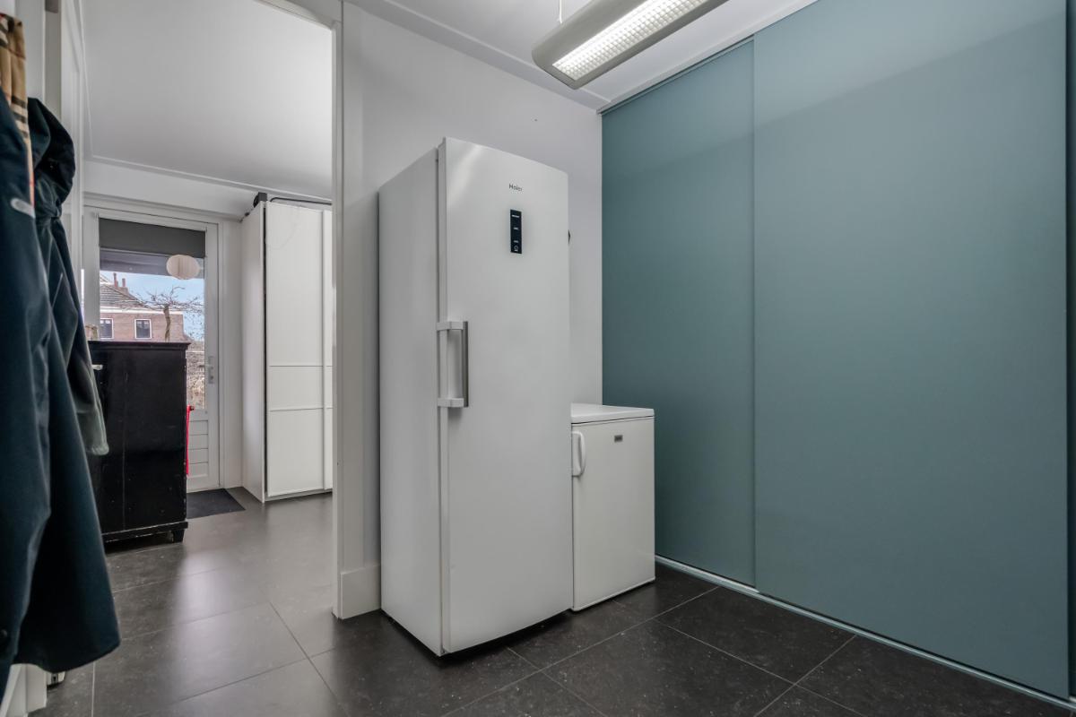 Via de entree komt u binnen in een ruime hal met trapopgang, meterkast en toilet met fonteintje. Vanuit deze hal is er toegang tot een extra hal met praktische berging. Deze berging is tevens via buitenom bereikbaar, ideaal voor fietsen of extra opslag.