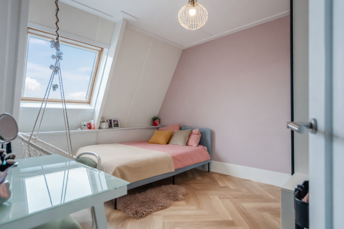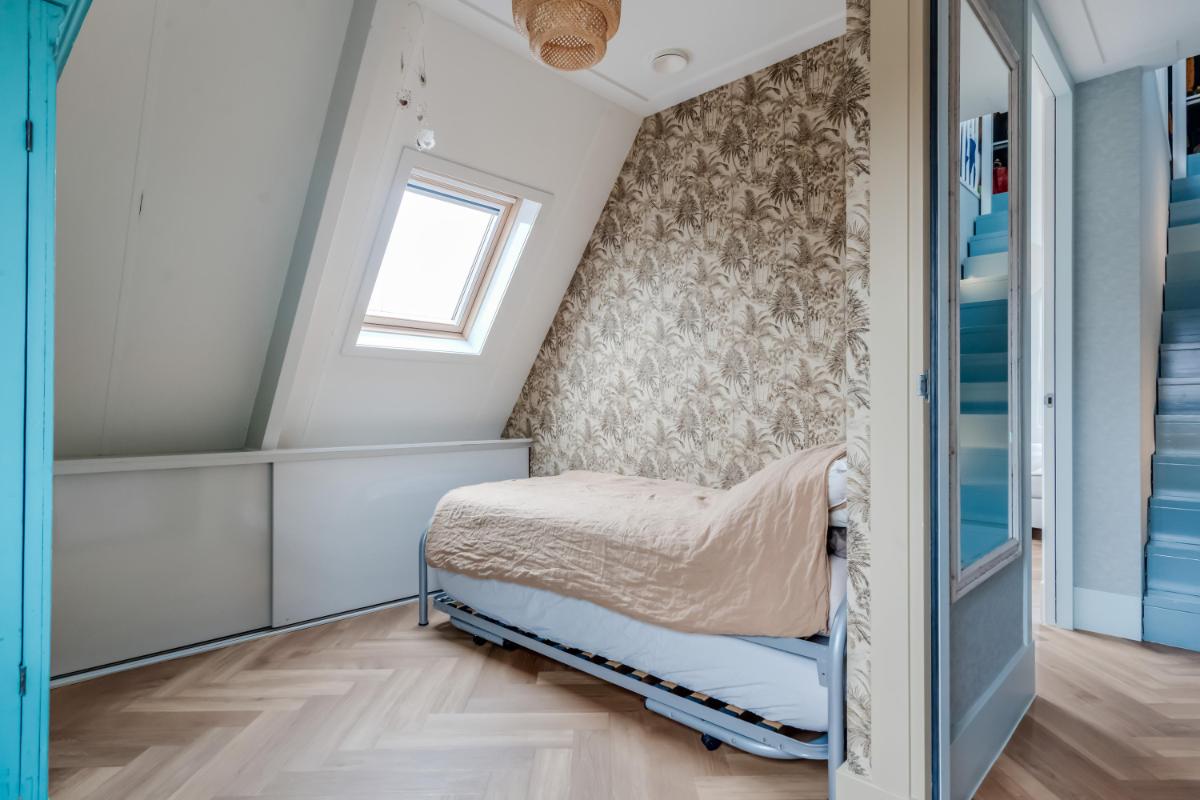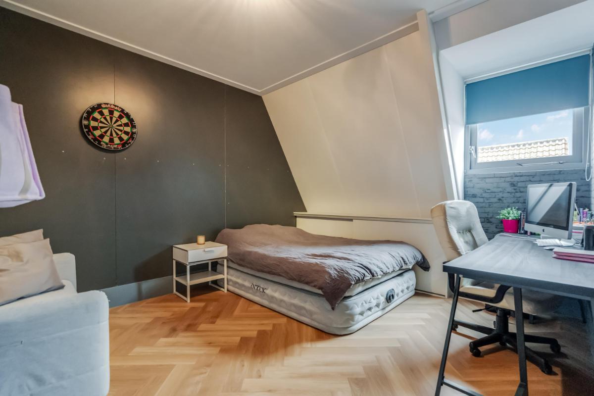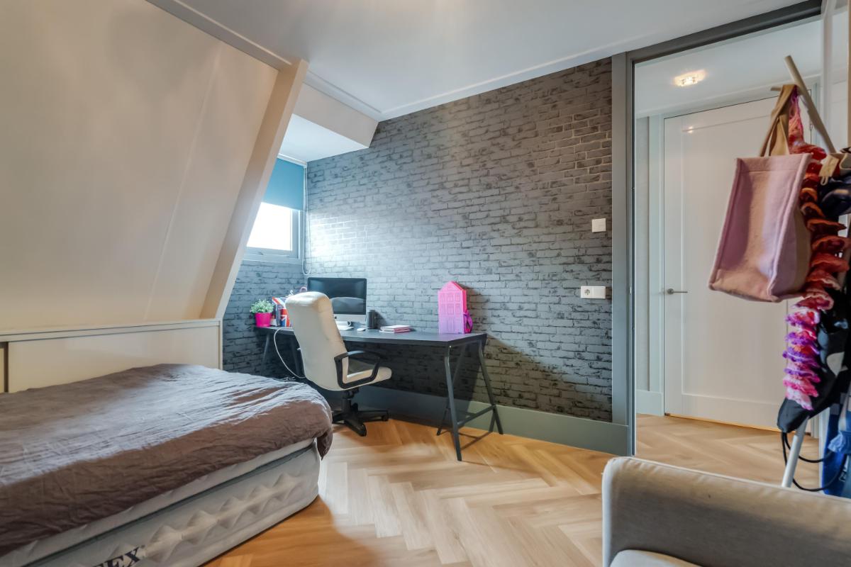 De ruime overloop geeft toegang tot vier slaapkamers en de badkamer. De kamers zijn praktisch ingedeeld en bieden volop mogelijkheden voor gezin, werk of hobby. De grootste slaapkamer beschikt over vaste kastruimte en daarnaast is er een aparte inloopkast aanwezig.