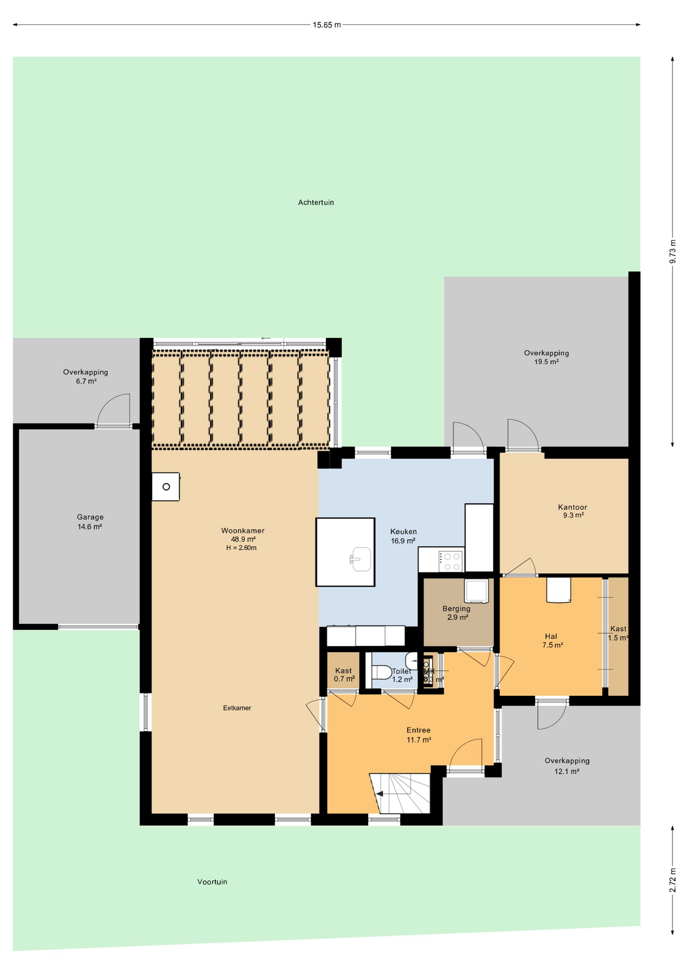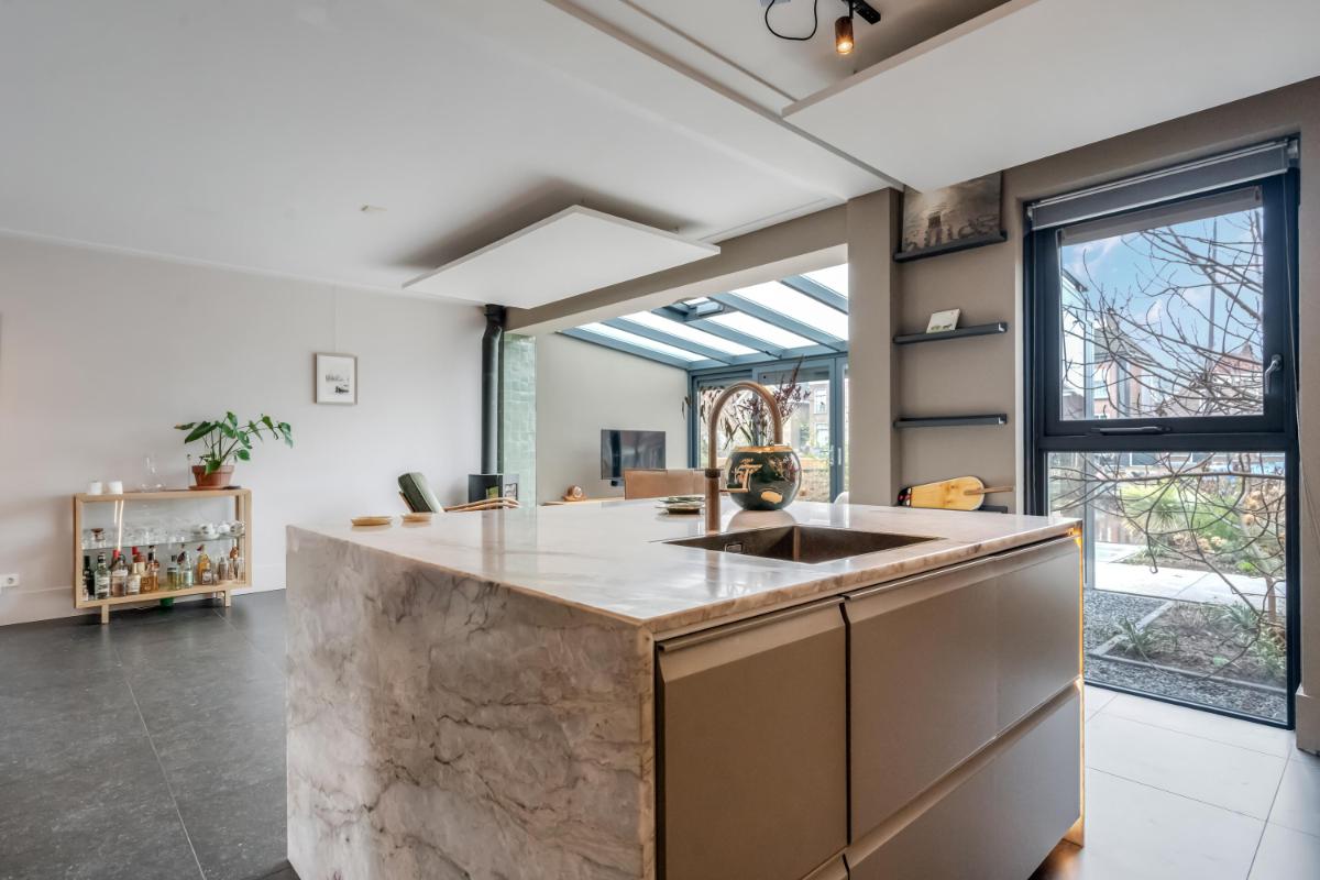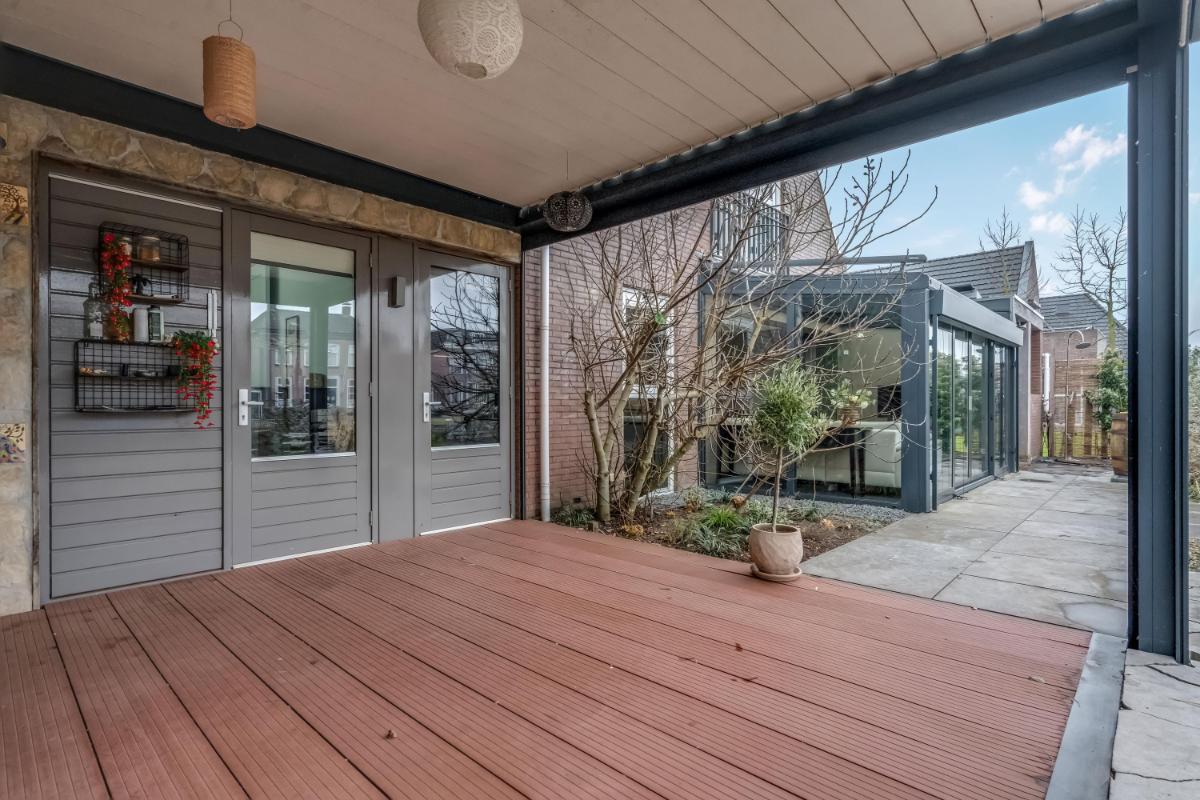 Via meerdere deuren bereikt u de overkappingen, waardoor binnen en buiten mooi in elkaar overlopen. Ook de garage is direct toegankelijk.