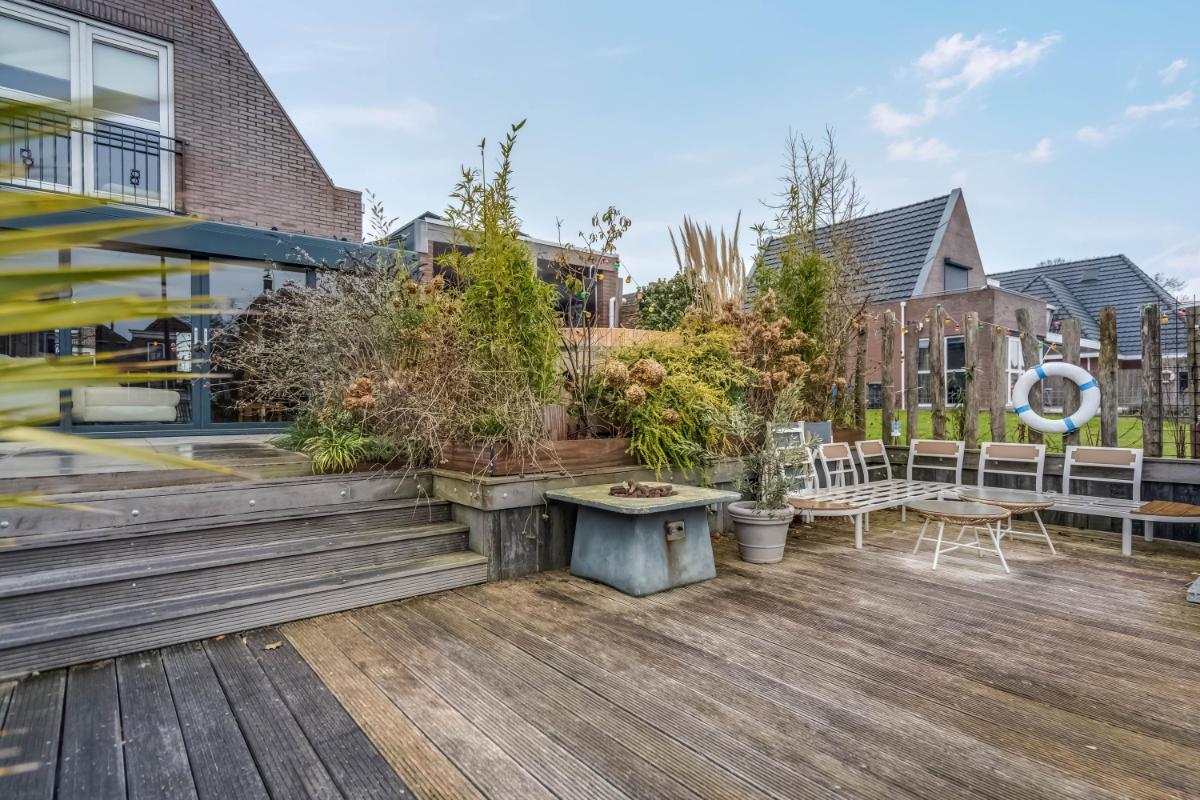 In de zomer zorgen lange avonden aan het water voor een echt vakantiegevoel. Dankzij de Zuid-West ligging van de tuin profiteert u hier van veel zonuren tot in de avond. In de winter krijgt de omgeving een rustige en sfeervolle uitstraling. De combinatie van water, groen en ruimte maakt dit een unieke woonplek.