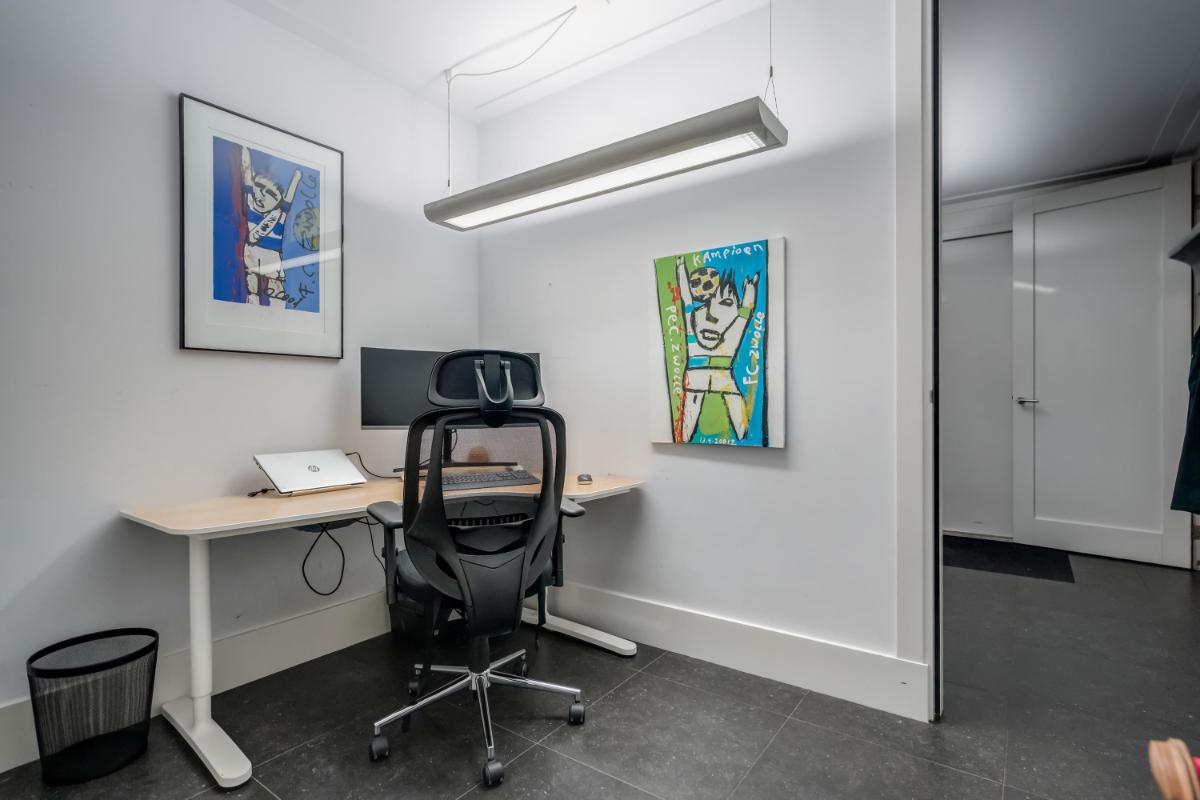 Aansluitend bevindt zich een aparte kantoorruimte. In combinatie met de berging biedt deze ruimte een uitstekende mogelijkheid om op de begane grond een royale slaapkamer met badkamer te realiseren. Daarmee is de woning eenvoudig levensloopbestendig in te richten.
