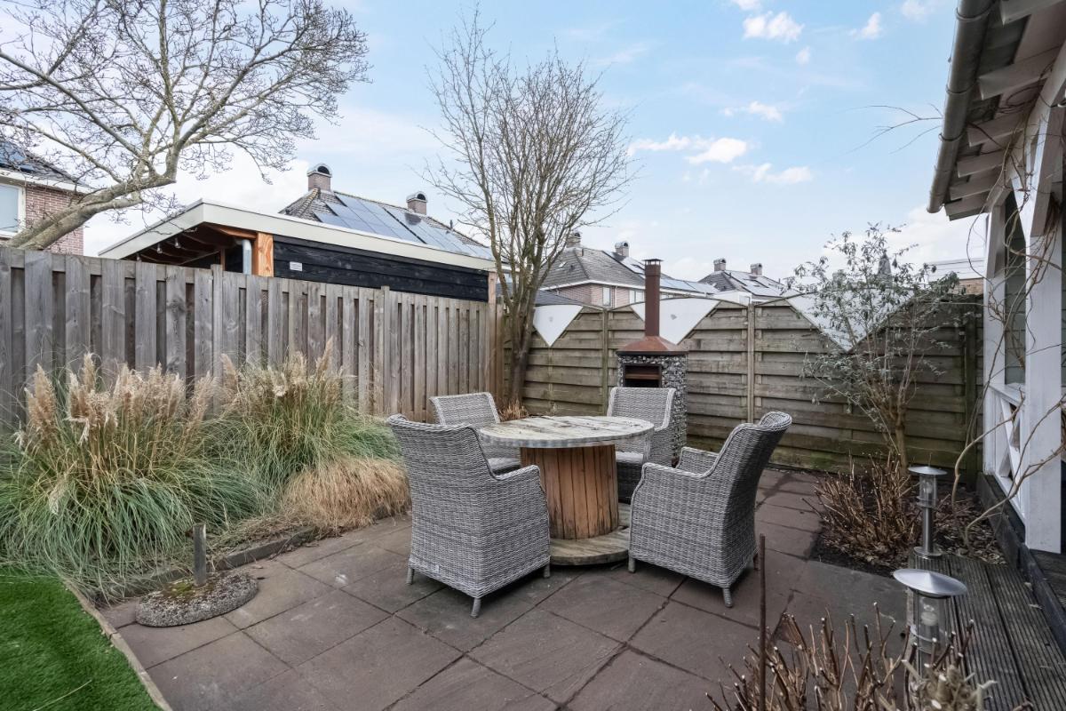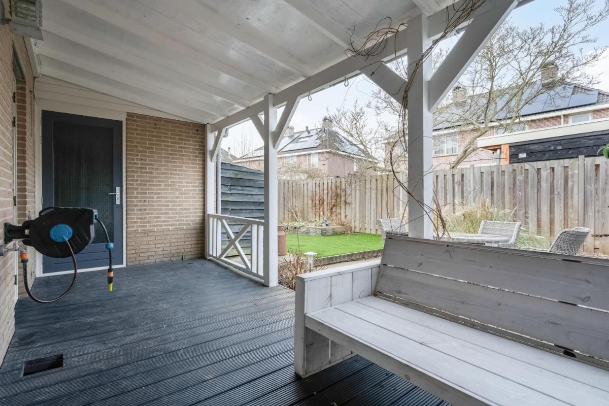 Buiten De woning beschikt over een verzorgde voortuin én achtertuin. De achtertuin is netjes aangelegd met bestrating en beplanting en voorzien van een ruime overkapping direct aan de woning. Via de tuin heb je toegang tot de garage. De oprit biedt plaats voor een auto op eigen terrein.