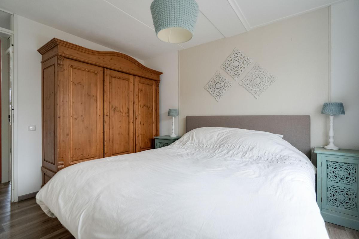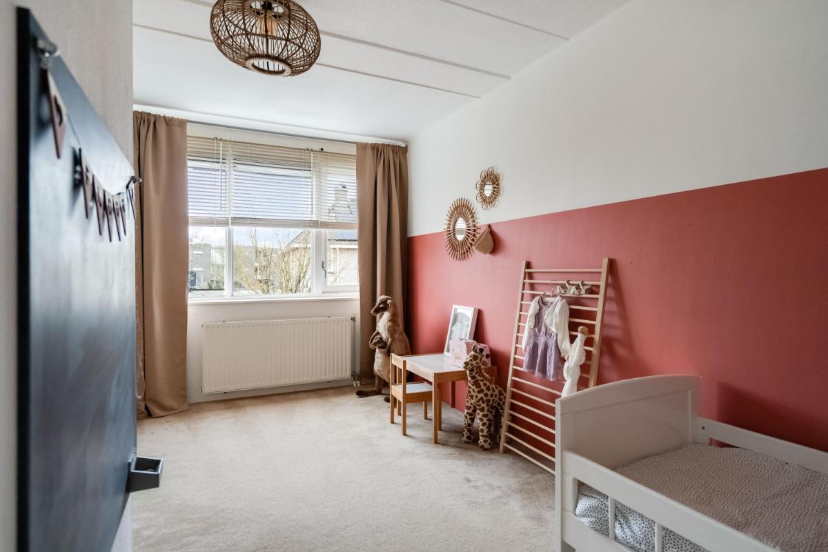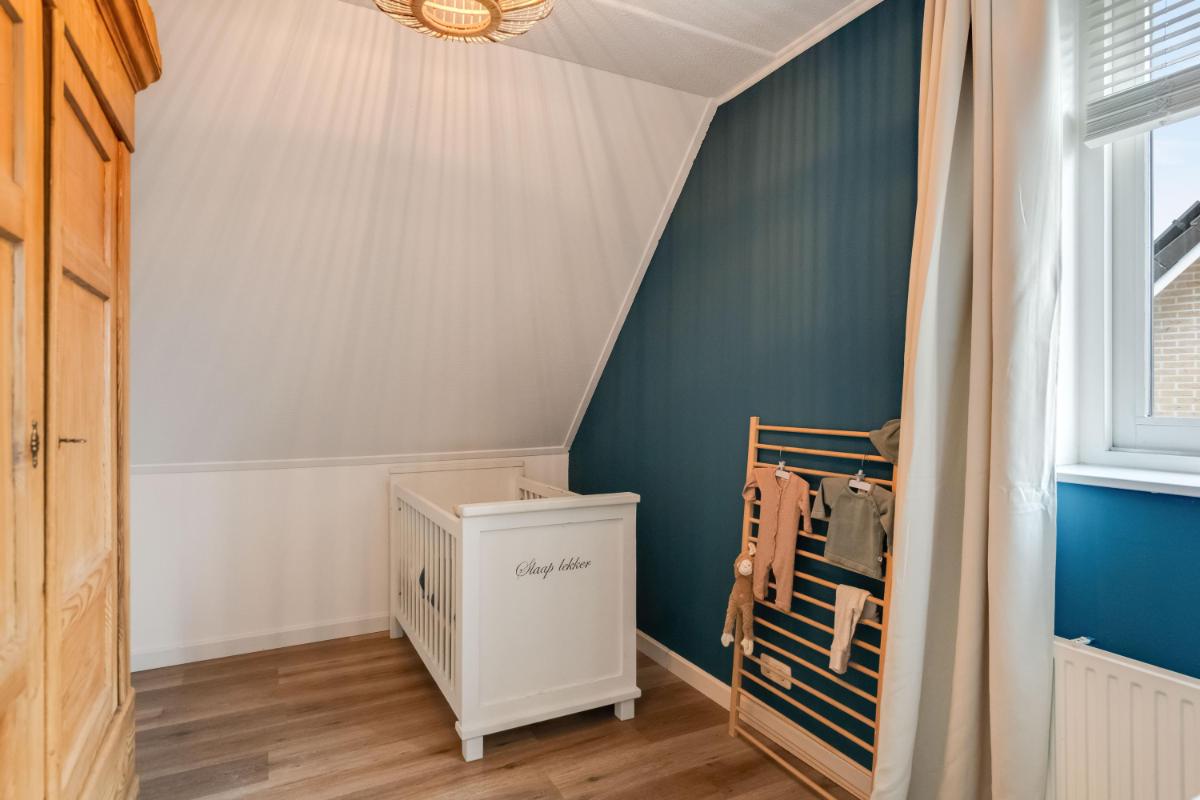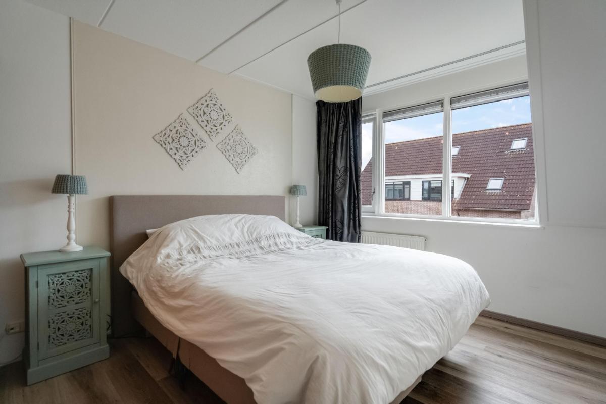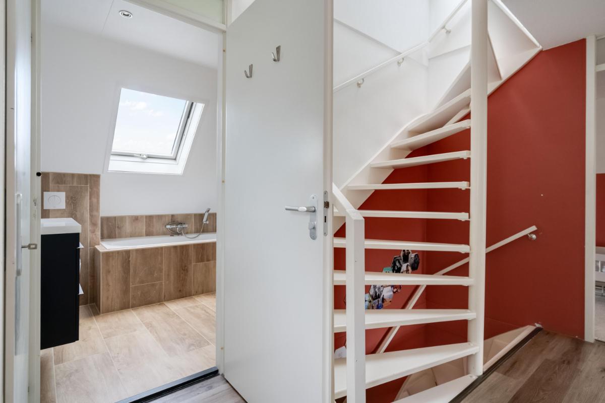 Eerste verdieping Op de eerste verdieping zijn drie slaapkamers. De grootste slaapkamer ligt aan de voorzijde van de woning. Aan de achterzijde vind je een ruime slaapkamer met ingebouwde kast. De derde slaapkamer is iets compacter, maar perfect als kinderkamer, werkplek of logeerkamer. De badkamer is in 2026 compleet vernieuwd en luxe afgewerkt met een ligbad, douche, toilet en dubbel wastafelmeubel.