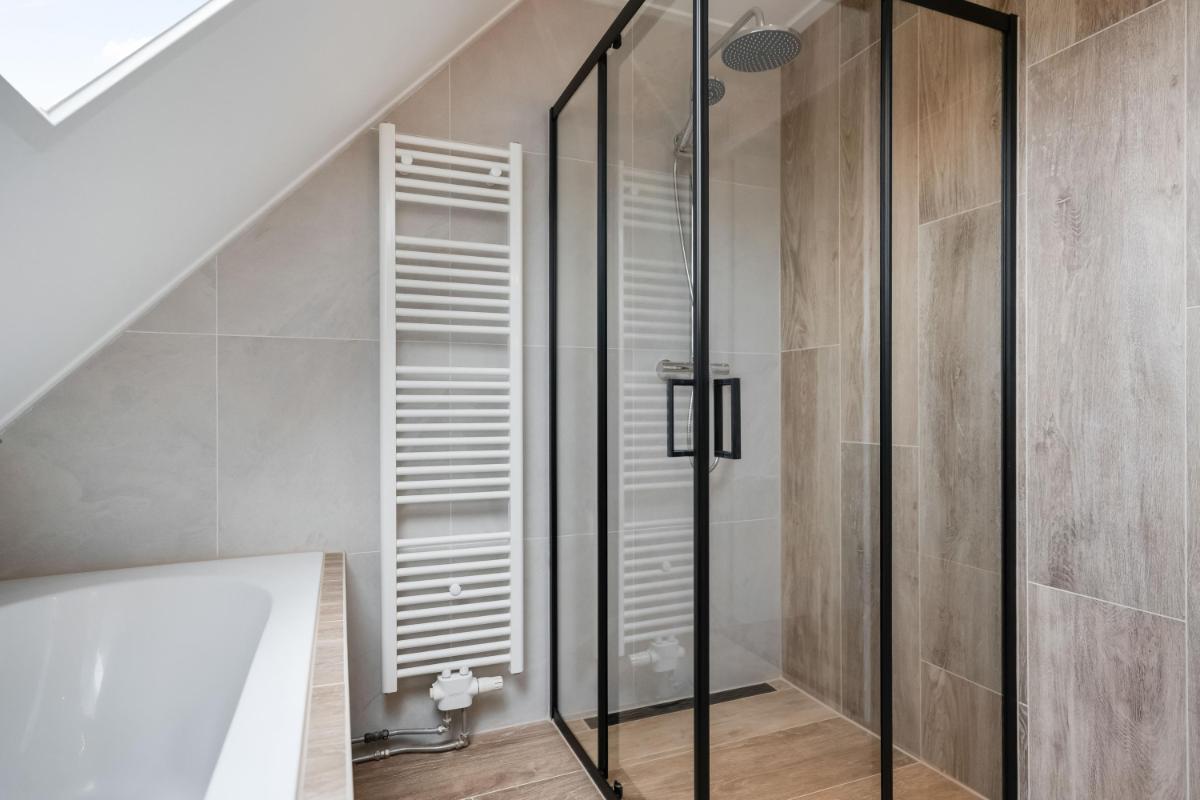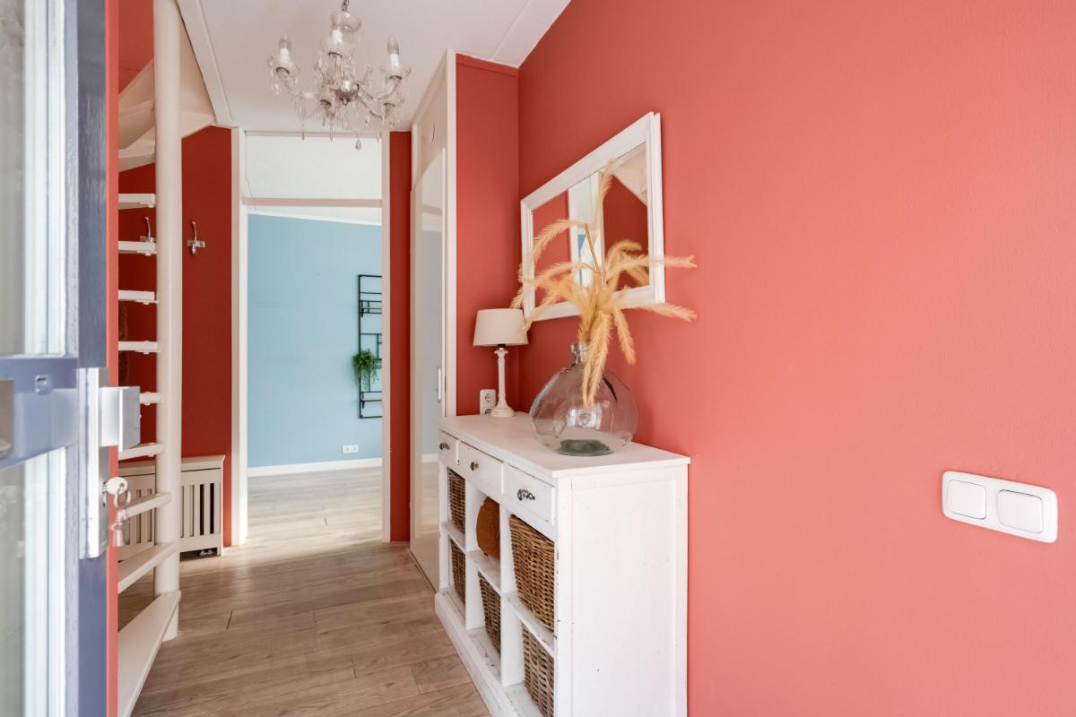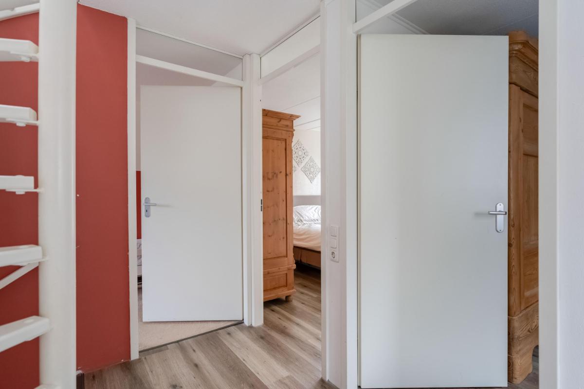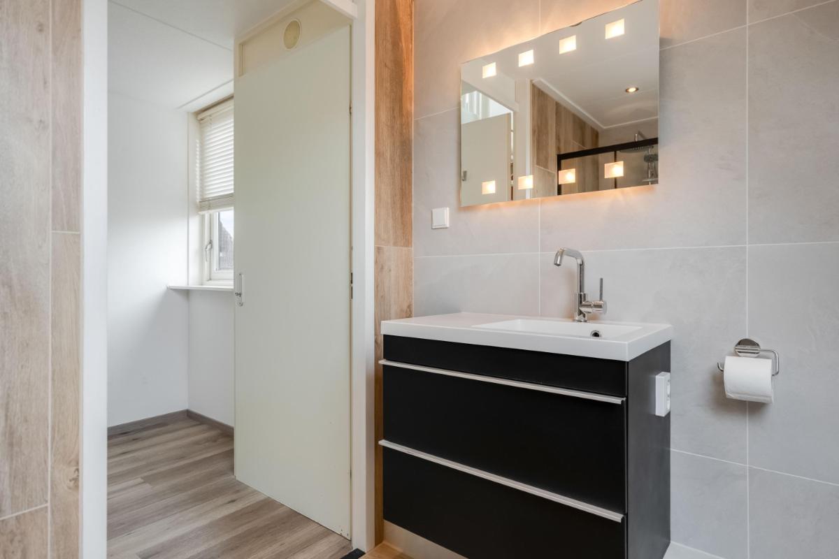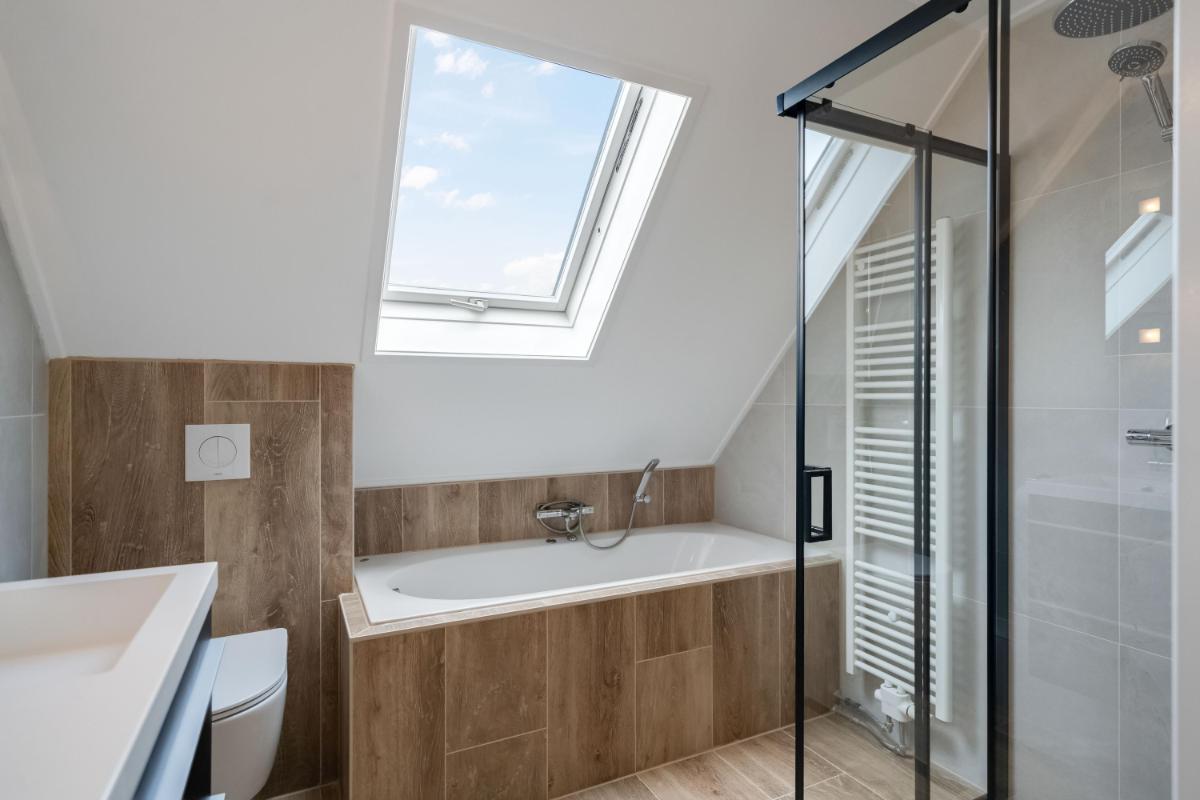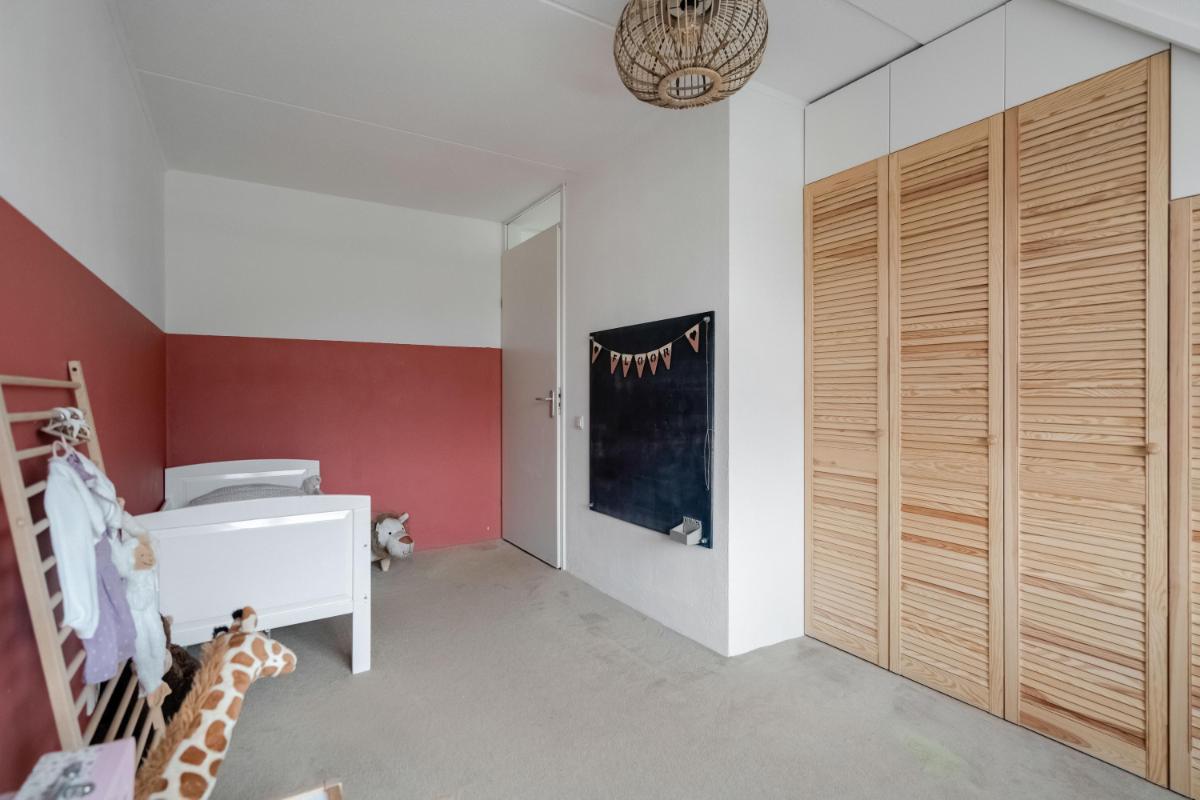 Eerste verdieping Op de eerste verdieping zijn drie slaapkamers. De grootste slaapkamer ligt aan de voorzijde van de woning. Aan de achterzijde vind je een ruime slaapkamer met ingebouwde kast. De derde slaapkamer is iets compacter, maar perfect als kinderkamer, werkplek of logeerkamer. De badkamer is in 2026 compleet vernieuwd en luxe afgewerkt met een ligbad, douche, toilet en dubbel wastafelmeubel.