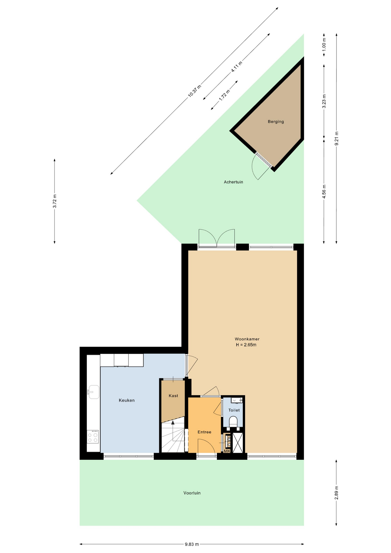 Buiten De onderhoudsvriendelijke achtertuin op het zuid-oosten is ingericht met grote grijze tegels, volwassen beplanting en meerdere zitplekken. Achterin staat een vrijstaande houten berging (ca. 7 m²) met elektra. Via de achterom bereikt u het achterpad. De voortuin biedt een prettige zitplek in de ochtendzon.