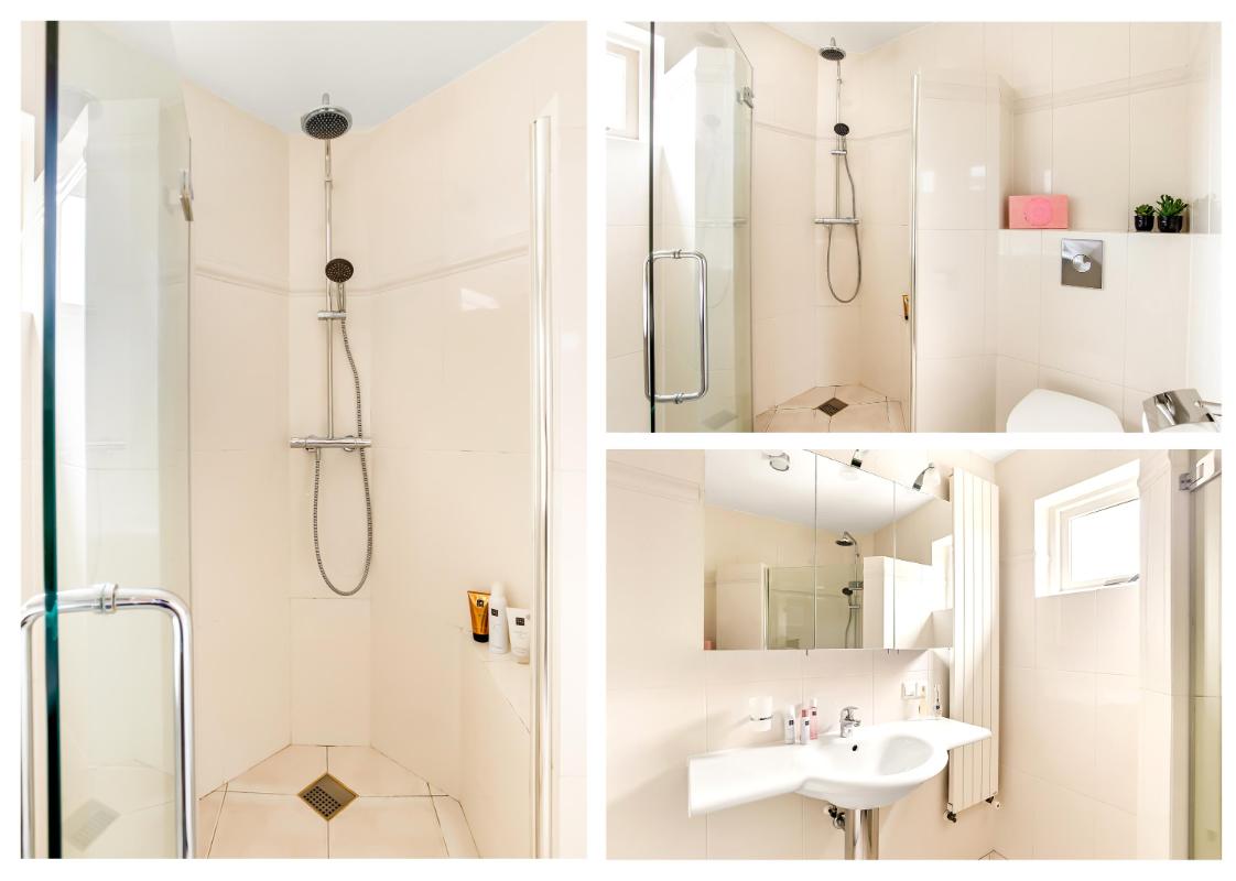 Op de eerste verdieping bevinden zich drie slaapkamers, waarvan twee mooi ruim en een nette badkamer. De badkamer is voorzien van een inloopdouche, een wastafel met meubel, een wandcloset en een designradiator. De afwerking is van goede kwaliteit en biedt ruim voldoende comfort voor het hele gezin.