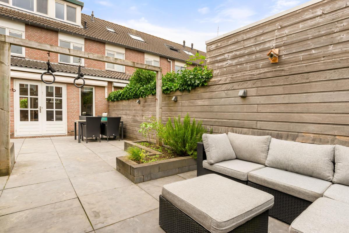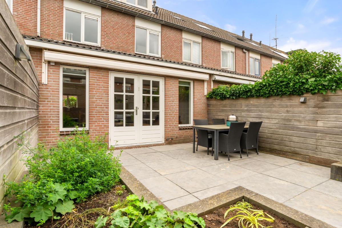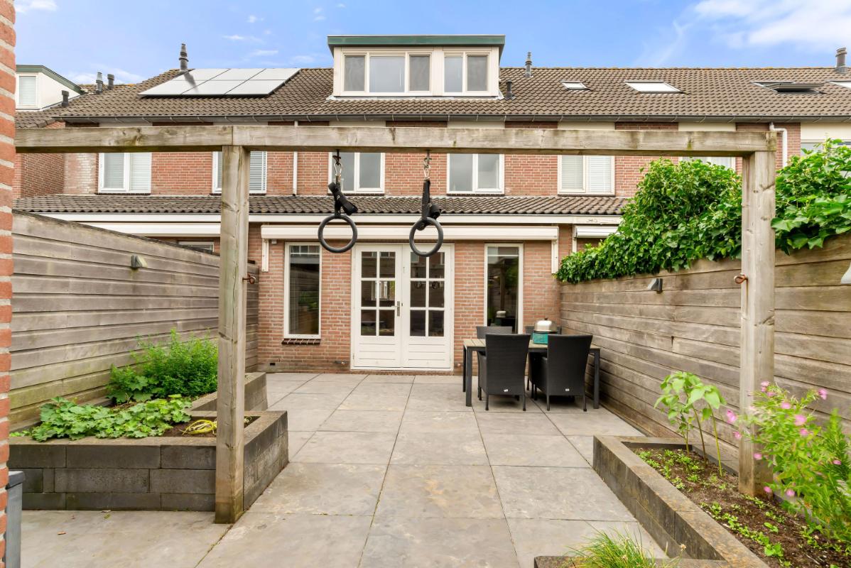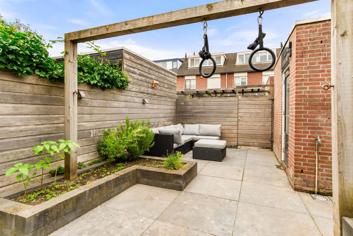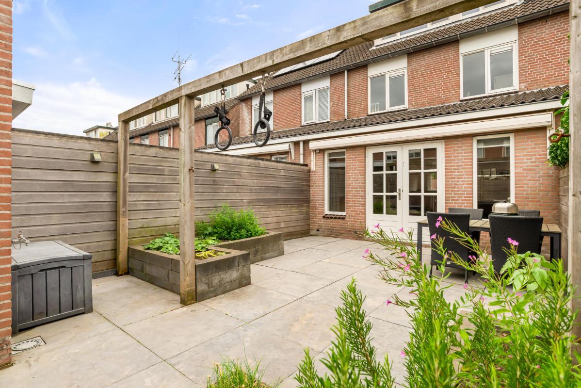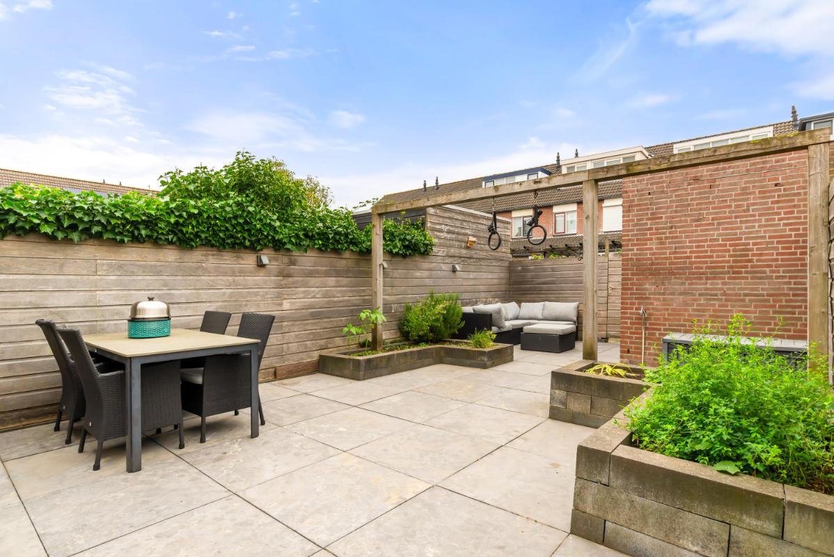 De tuin is zowel aan de voor- als achterzijde voorzien van straatwerk. De zonnige achtertuin is grotendeels bestraat en heeft verhoogde borders, waardoor er voldoende ruimte is voor groen. In de vrijstaande stenen berging is er voldoende opbergruimte voor fietsen, tuinmeubels of andere spullen.