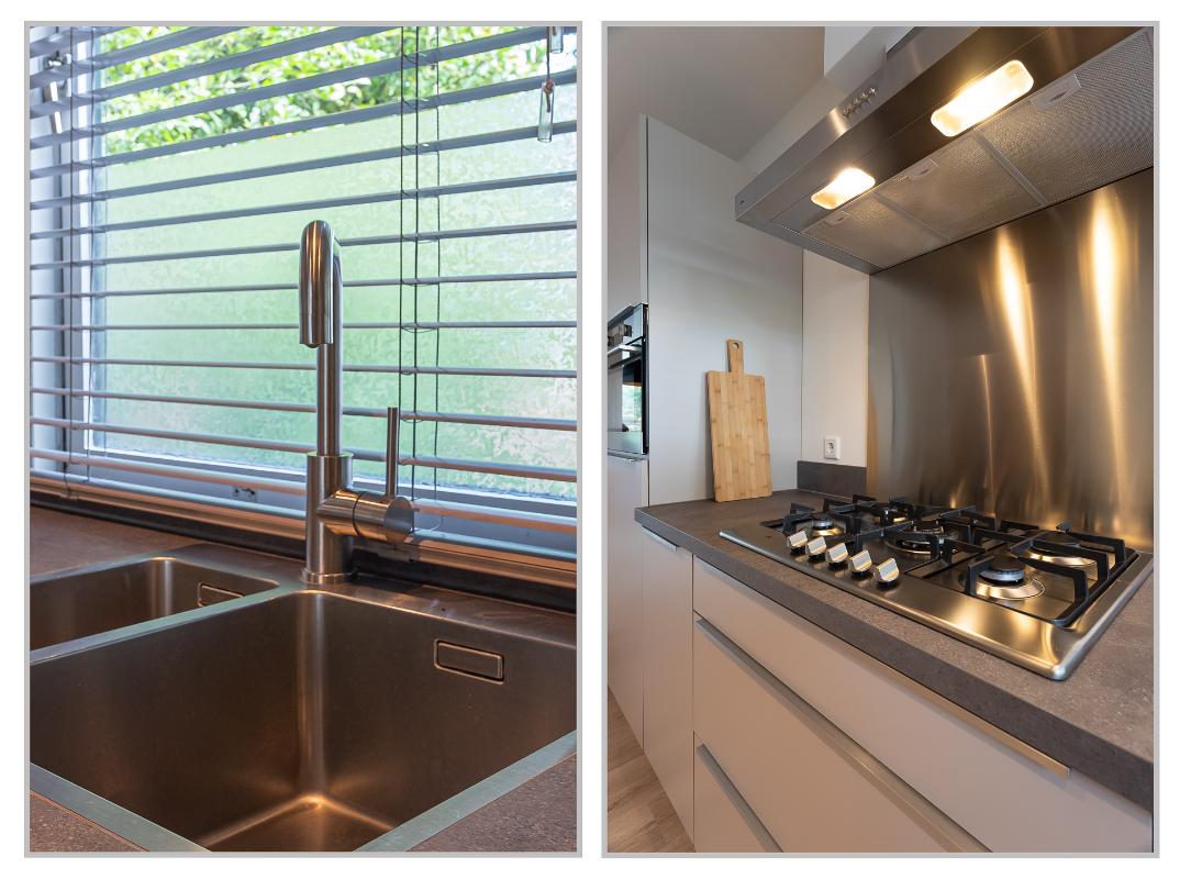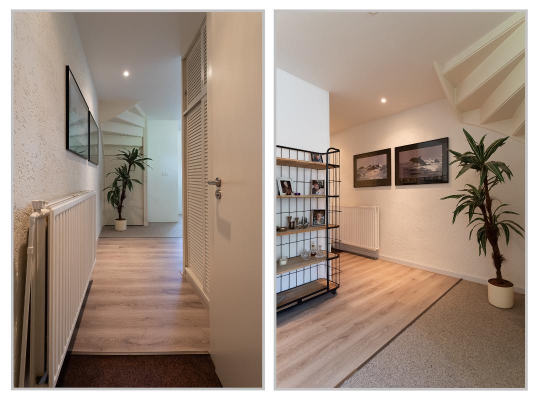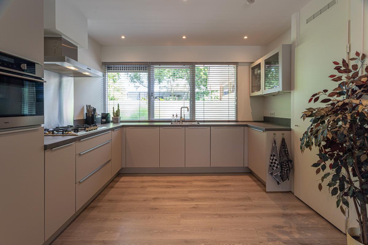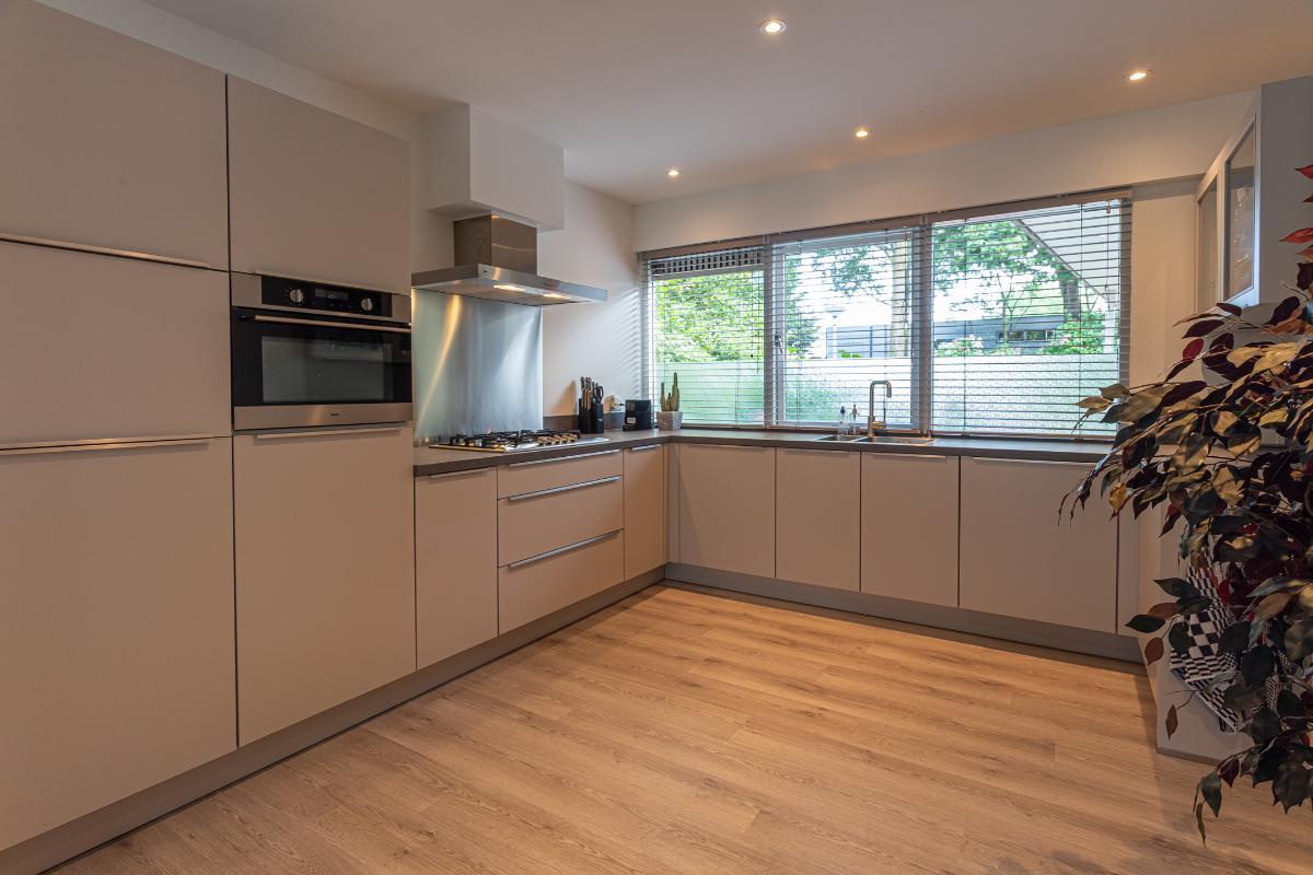 Begane grond: Entree, ruime hal met garderobe, aan de linkerkant bergruimte/ bijkeuken met wasmachineaansluiting, hal met apart toilet, bergkast en meterkast. De moderne en open keuken (2019) is voorzien van 5 pits gaskookplaat, combi-oven-magnetron, afzuigkap, koelkast, vriezer en een vaatwasser. Lichte living met houtkachel en schuifpui naar de zonnige achtertuin