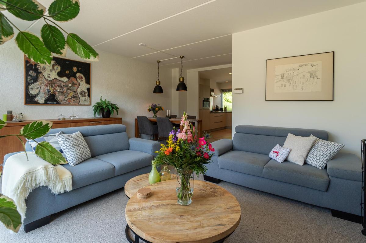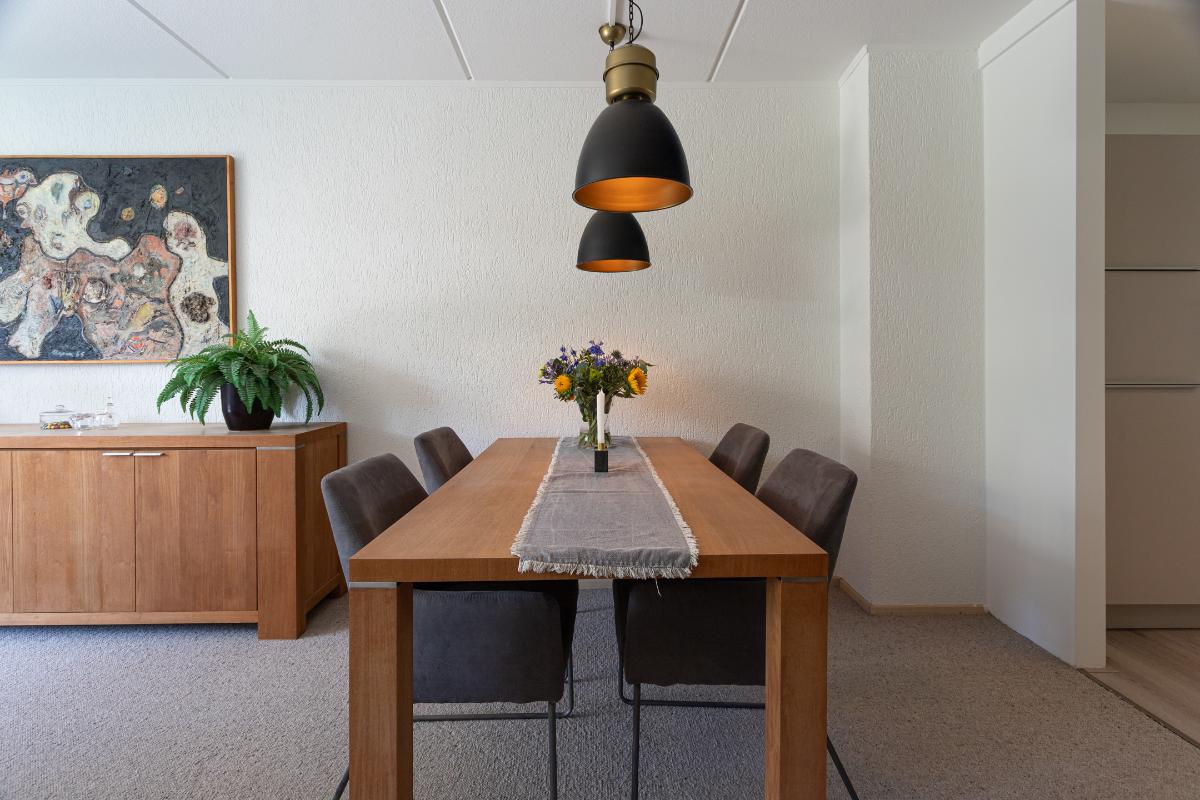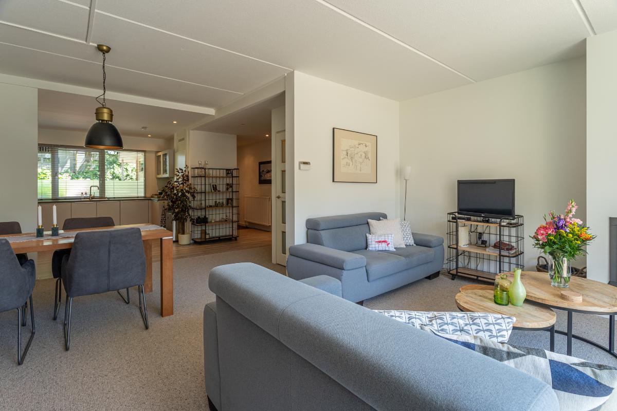 Begane grond: Entree, ruime hal met garderobe, aan de linkerkant bergruimte/ bijkeuken met wasmachineaansluiting, hal met apart toilet, bergkast en meterkast. De moderne en open keuken (2019) is voorzien van 5 pits gaskookplaat, combi-oven-magnetron, afzuigkap, koelkast, vriezer en een vaatwasser. Lichte living met houtkachel en schuifpui naar de zonnige achtertuin