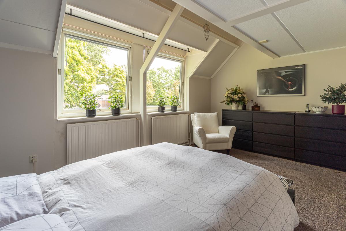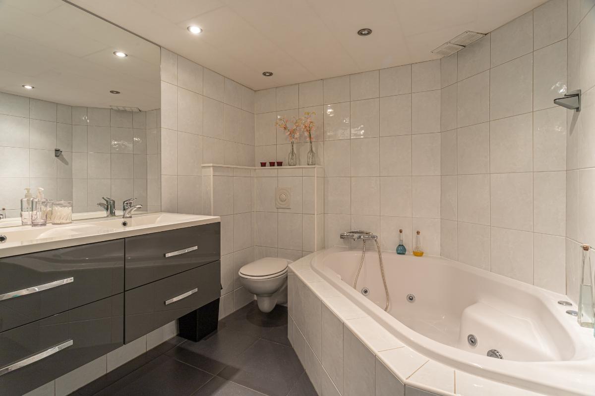 1e verdieping: Overloop, 2 royale slaapkamers, één aan de voorzijde van de woning en één aan de achterzijde van de woning. Badkamer voorzien van een ligbad, inloopdouche, dubbele wastafel en toilet.