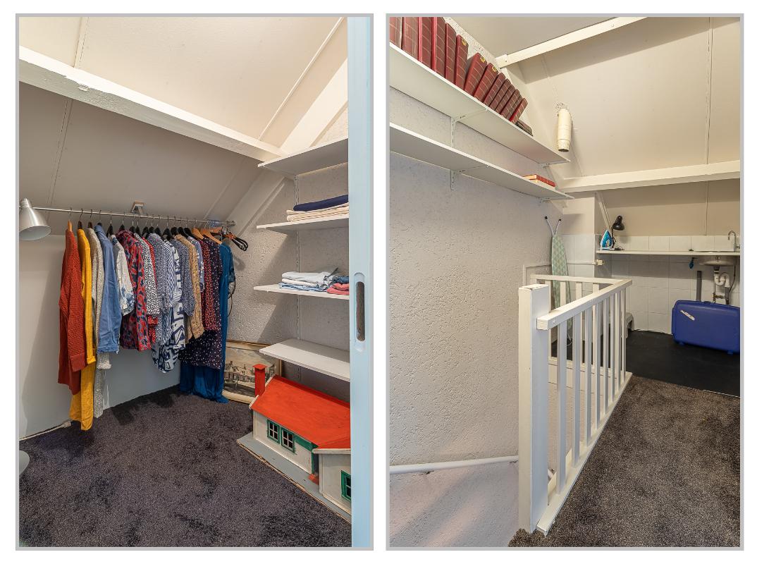 2e verdieping: Voorzolder met wastafel, bergruimte, zeer royale slaapkamer die is voorzien van twee grote dakramen en een bergkast.