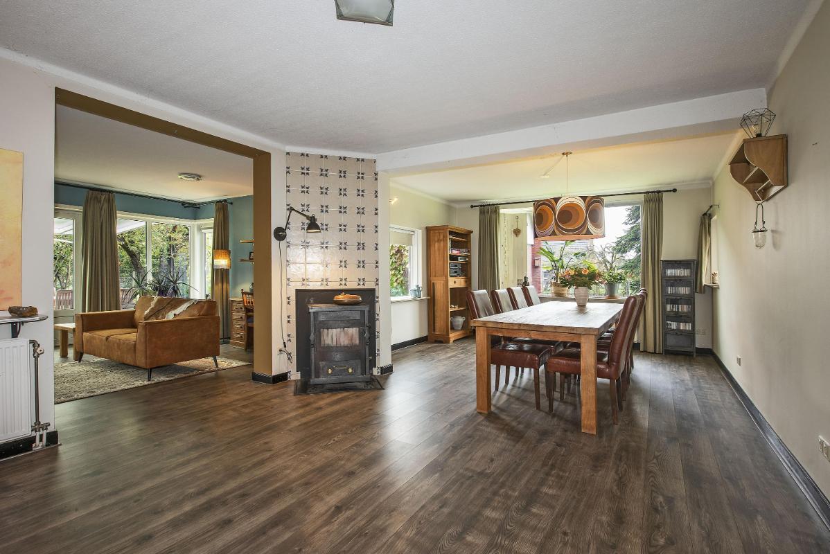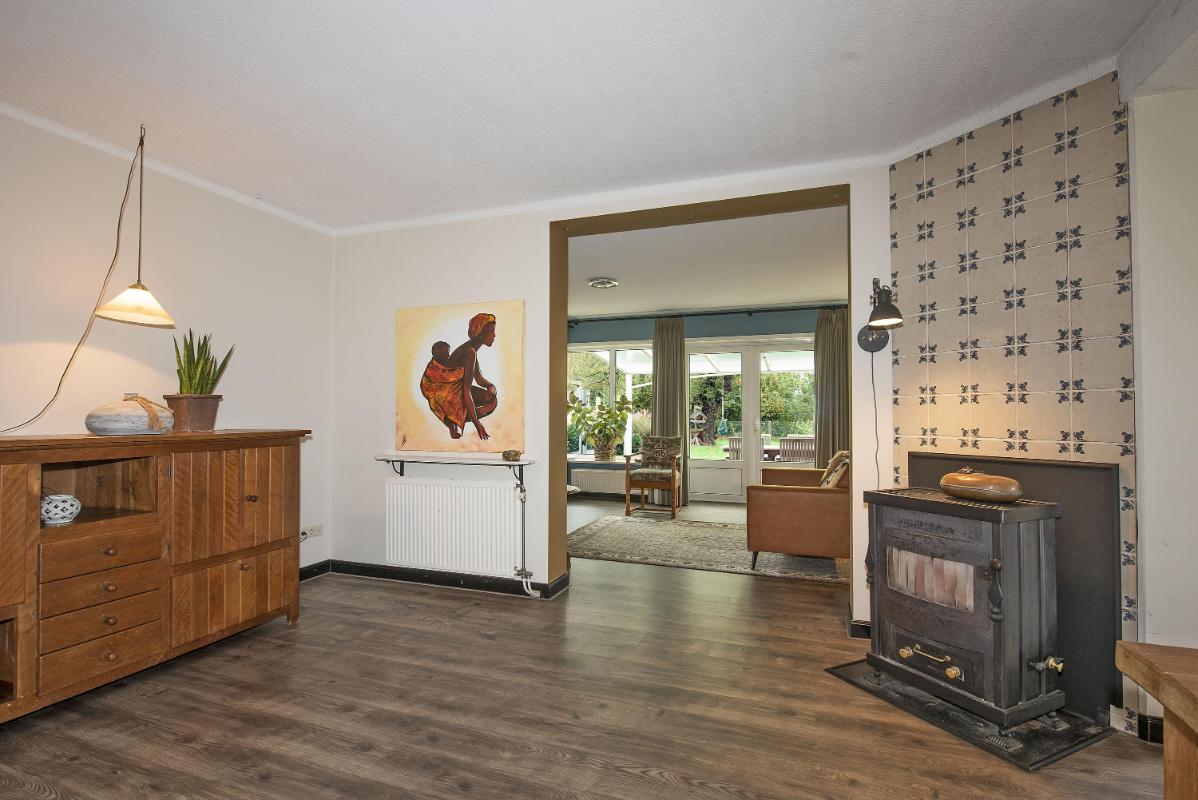 Indeling: Kelder: provisiekelder aanwezig. Begane grond: hal, trapopgang, doorgang naar kantoor en woonkamer, royale woonkamer met rookkanaal en doorgang naar tweede woonkamer met aangrenzend een overkapping, dichte woonkeuken, bijkeuken, achterhal met meterkast en toilet. Eerste verdieping: overloop met vaste kasten, badkamer met ligbad, inloopdouche, wastafelmeubel en toilet, 4 slaapkamers. Tweede verdieping: Via vlizotrap te bereiken bergzolder.