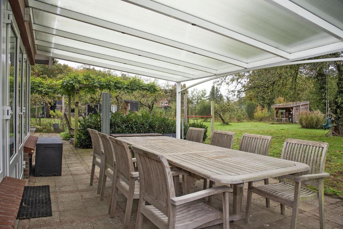 Tuin: Royale tuin rondom met veel privacy, volwassen beplanting en vrij uitzicht over de landerijen. Het bijgebouw beschikt over een carport, een ruimte met toegang tot een toilet plus wasbak, en een royale berging/multifunctionele ruimte met wasbak en een overkapping. Het tweede bijgebouw dient als overdekt terras en biedt nog plek voor het stallen van een aanhanger.
