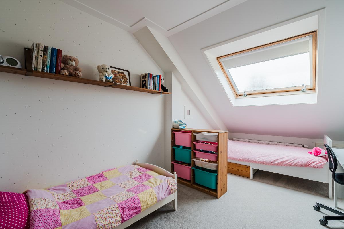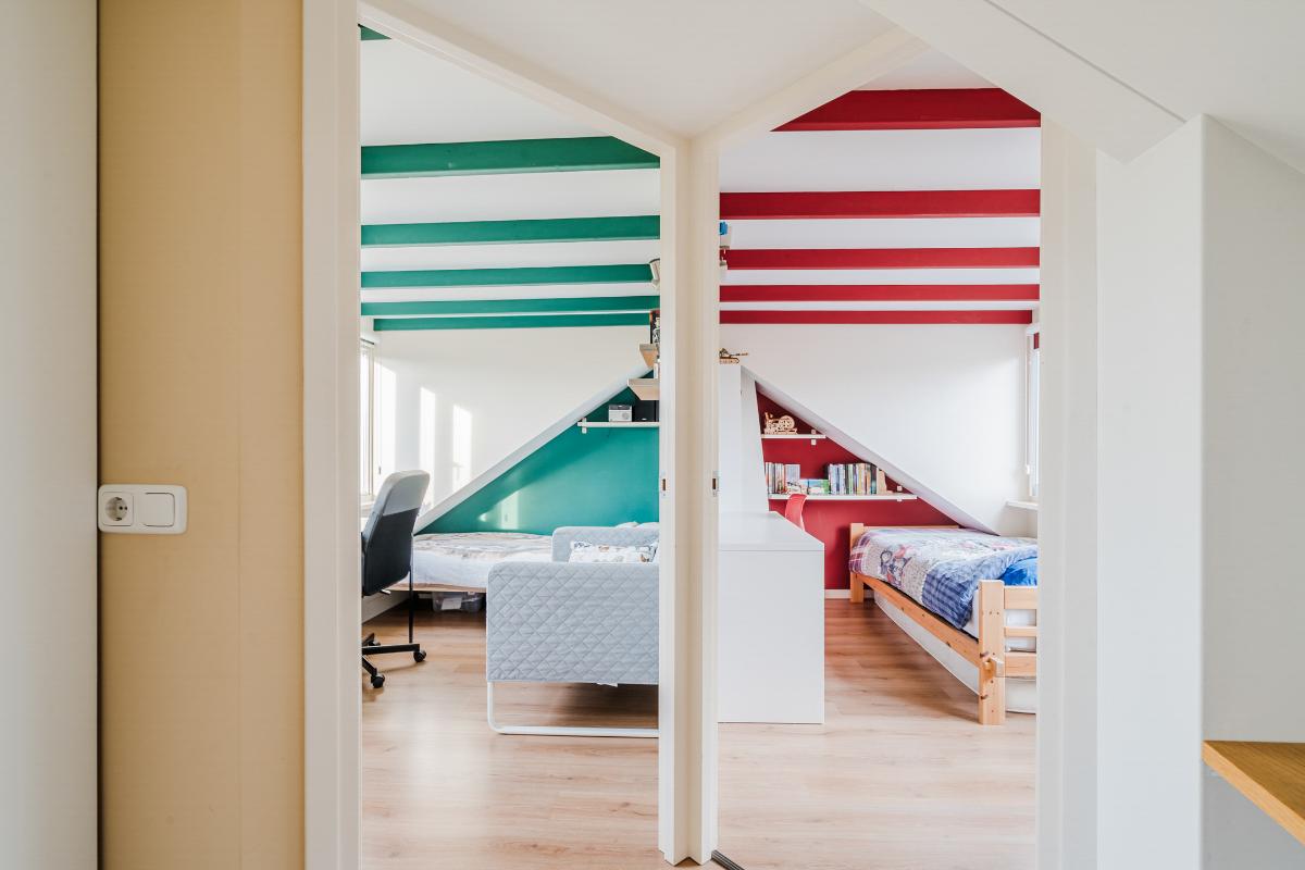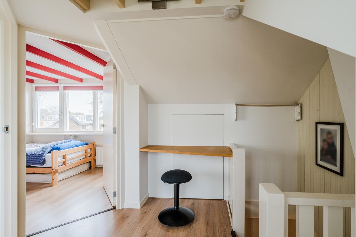 De vaste trap leidt naar de voorzolder, waar u 2 zolderkamers vindt, beiden voorzien van een laminaatvloer, gestucte wanden en dakkapellen. Deze ruimte is ideaal voor oudere kinderen die graag hun eigen plekje willen, of voor gasten die blijven overnachten.