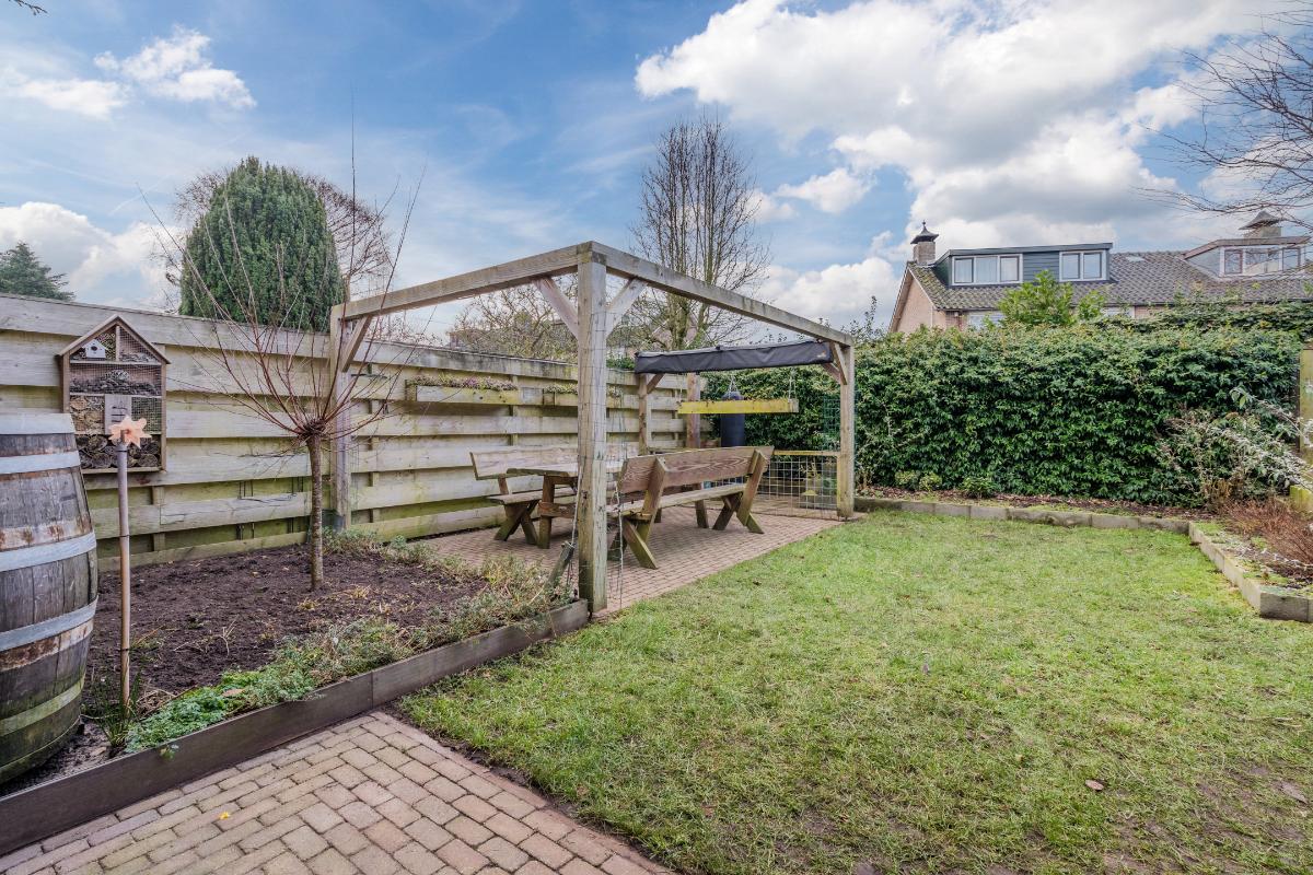 De zonnige achtertuin op het zuidwesten is een waar paradijs voor de liefhebbers van het buitenleven. Met een prachtig gazon, gezellige terrassen en bloeirijke borders, biedt deze tuin de perfecte setting voor ontspanning, spelende kinderen en gezellige barbecues met vrienden en familie. De openslaande tuindeuren verbinden de tuin naadloos met de ruime woonkamer, waardoor binnen en buiten moeiteloos in elkaar overlopen.