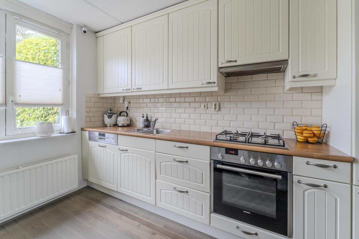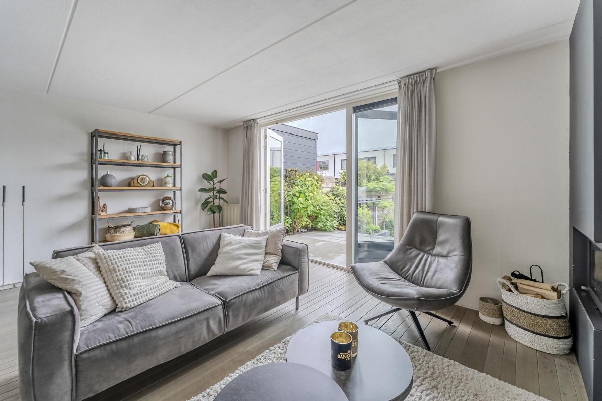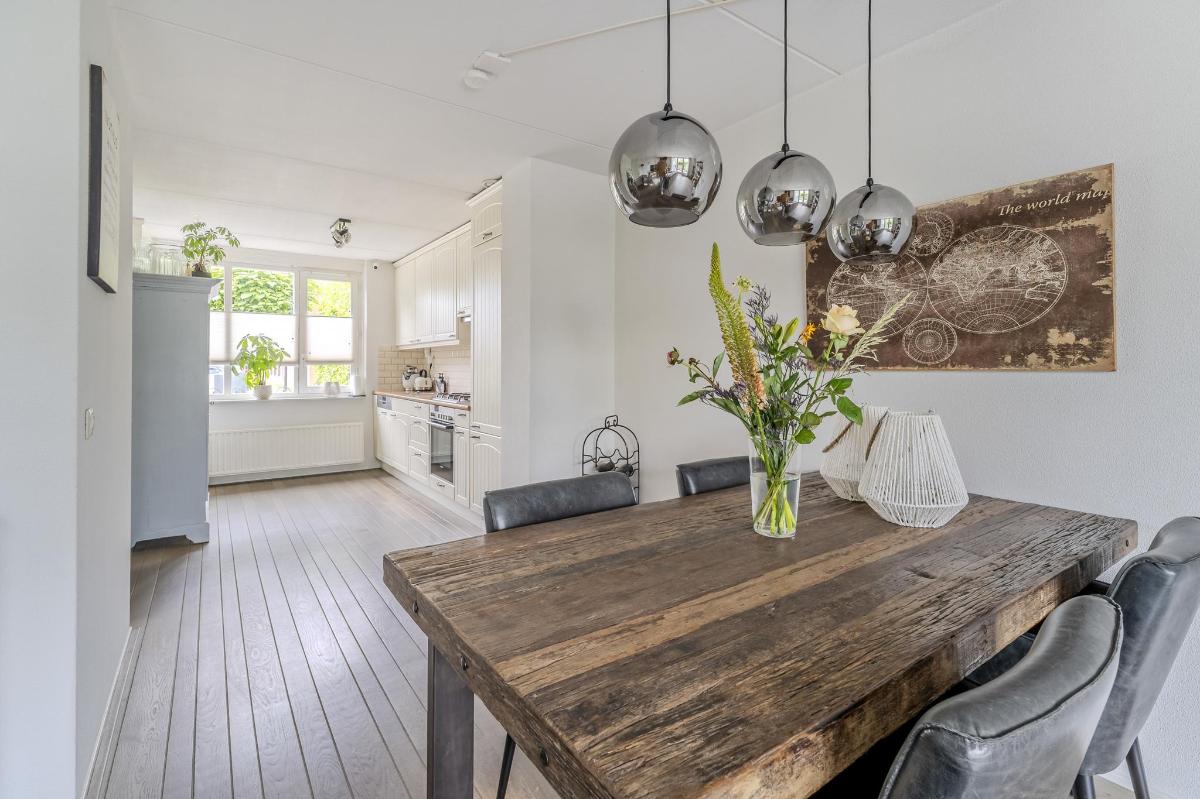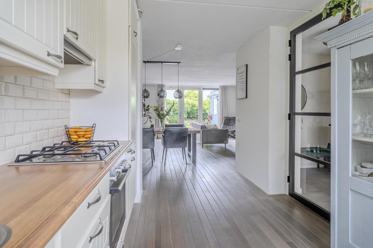 Indeling: Bij binnenkomst valt meteen de stijlvolle hoge metalen taatsdeur op, die de hal met de woonkamer verbindt en het geheel een moderne uitstraling geeft. De toiletruimte is keurig afgewerkt met een hangend toilet en fonteintje. De tuingerichte woonkamer ademt sfeer en warmte. Dit mede door de gezellige zithoek met moderne haard. Een heerlijke plek om lekker te ontspannen en van je vrije tijd te genieten. Via de openslaande deuren sta je zo in de achtertuin, waar binnen en buiten naadloos in elkaar overlopen. De open keuken aan de voorzijde van het woning is praktisch ingericht. De keuken is geplaatst in een rechte opstelling en is uitgerust met inbouwapparatuur, waaronder een afzuigkap, gaskookplaat, oven, vaatwasser, koel-vriescombinatie. De gehele begane grond is voorzien van een prachtige eiken parketvloer, wat bijdraagt aan de warme sfeer van het huis.