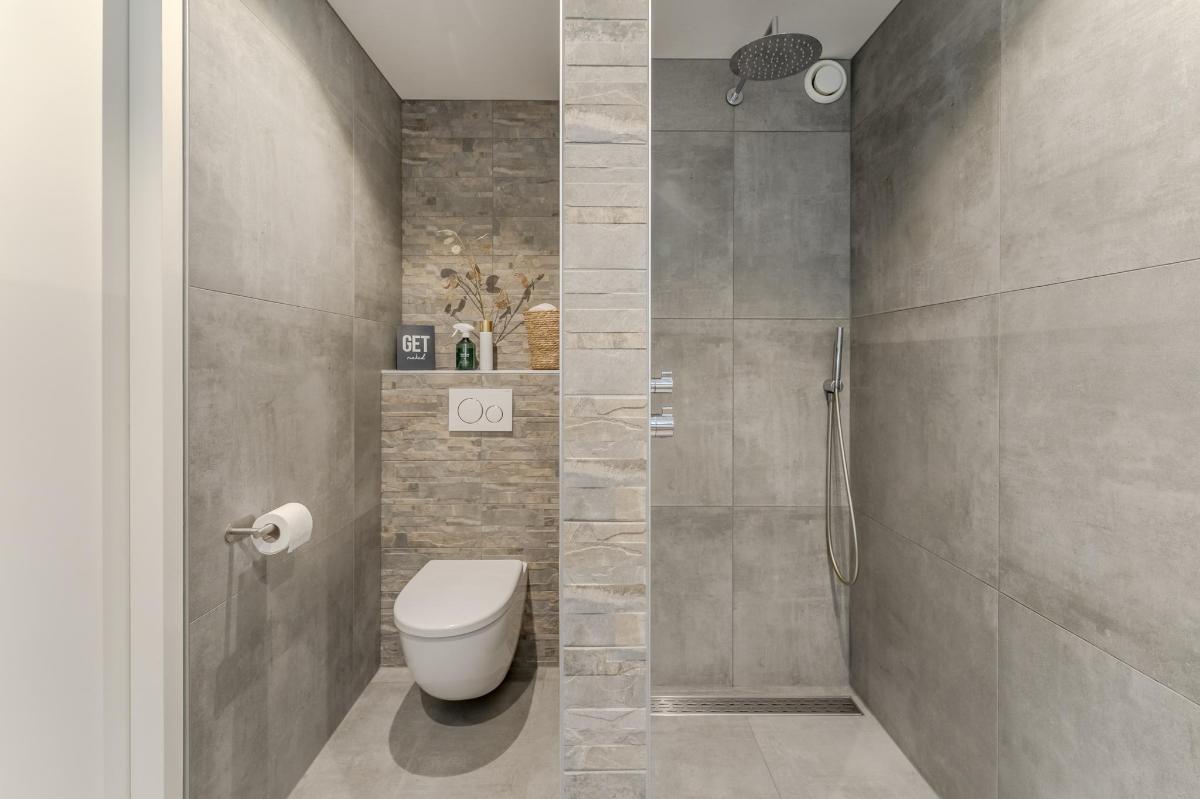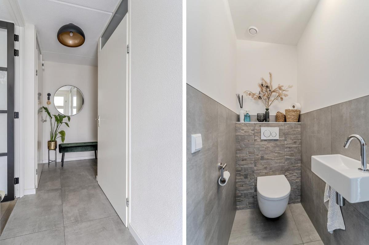 Verdieping: Op de eerste verdieping bevinden zich 3 mooie slaapkamers, waarvan de royale masterbedroom met extra ruimte voor een grote garderobekast. Alle slaapkamers zijn netjes afgewerkt en voorzien van een moderne laminaatvloer. De luxe badkamer is een echte blikvanger: strak, modern en compleet ingericht met een ruime inloopdouche met rainshower, en draingoot, een dubbele waskom met stijlvol badkamermeubel, een grote spiegel met verlichting, een 2e hangend toilet en een design-handdoekenradiator, voorzien van vloerverwarming. De grote wandpanelen en vloertegels in de badkamer zorgen voor een hoogwaardige en tijdloze uitstraling.