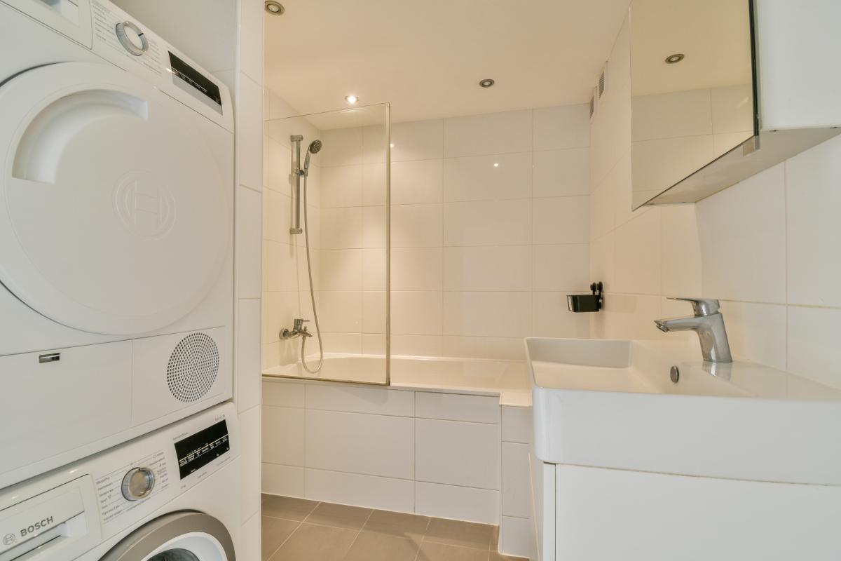 Vanuit de woonkamer zijn via een tussenhal de twee slaapkamers, het separate toilet en de badkamer bereikbaar. De slaapkamer aan de galerijzijde beschikt over een vaste kast en de 2e slaapkamer biedt toegang tot het balkon. De geheel betegelde moderne badkamer beschikt over een ligbad met douche gelegenheid met glazen spatscherm, een badkamermeubel met wastafel en spiegel. In een nis is er ruimte voor een wasmachine met daarboven op de droger.