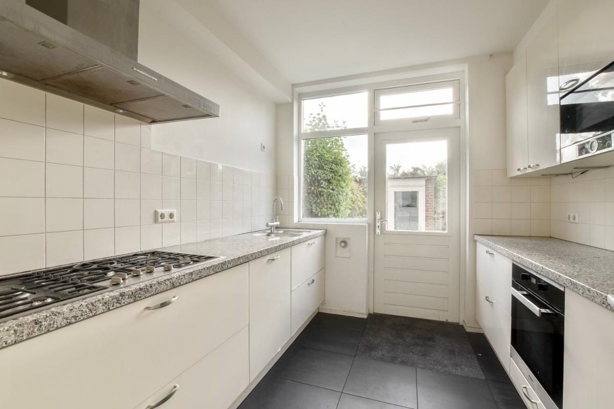 This delightful five-bedroom family home is located on a quiet street in Elsrijk, with unobstructed views to the front and close to Amstelveen's city center. The house boasts four bedrooms and two bathrooms. A wide dormer window on the second floor provides ample privacy. The house is situated in the popular Elsrijk neighborhood. An ideal location, with the Amsterdamse Bos just a few minutes away by bike. The house is also a short walk from the Amstelveenlijn tram stop to Amsterdam and Uithoorn, and major highways such as the A9, A10, and A2 are easily accessible. The shopping center on Rembrandtweg is just a few minutes' walk away for daily groceries, while other shopping centers such as Stadshart, Kostverlorenhof, Bankrashof, and Gelderlandplein are also easily accessible by bike, public transport, or car. Nearby, you'll find several primary schools, daycare centers, the International School, and after-school care facilities. In short, a wonderful home in an ideal location. Layout: The large front garden is paved and features borders with established plants, providing ample privacy from the street. From the entrance hall with the meter cupboard and coat closet, you enter the hallway, which provides access to the toilet, the under-stairs cupboard, the stairs to the first floor, the kitchen, and the living room. The hall and living room feature modern laminate flooring, and the kitchen has easy-care anthracite tile flooring.