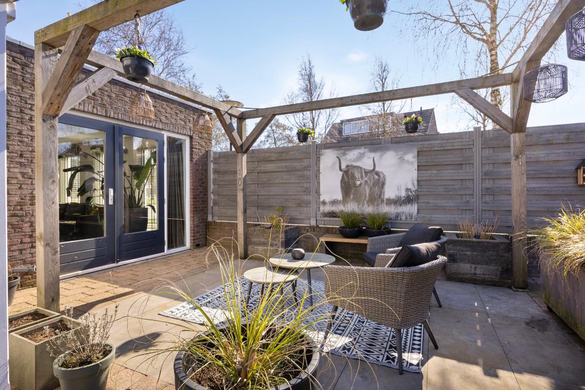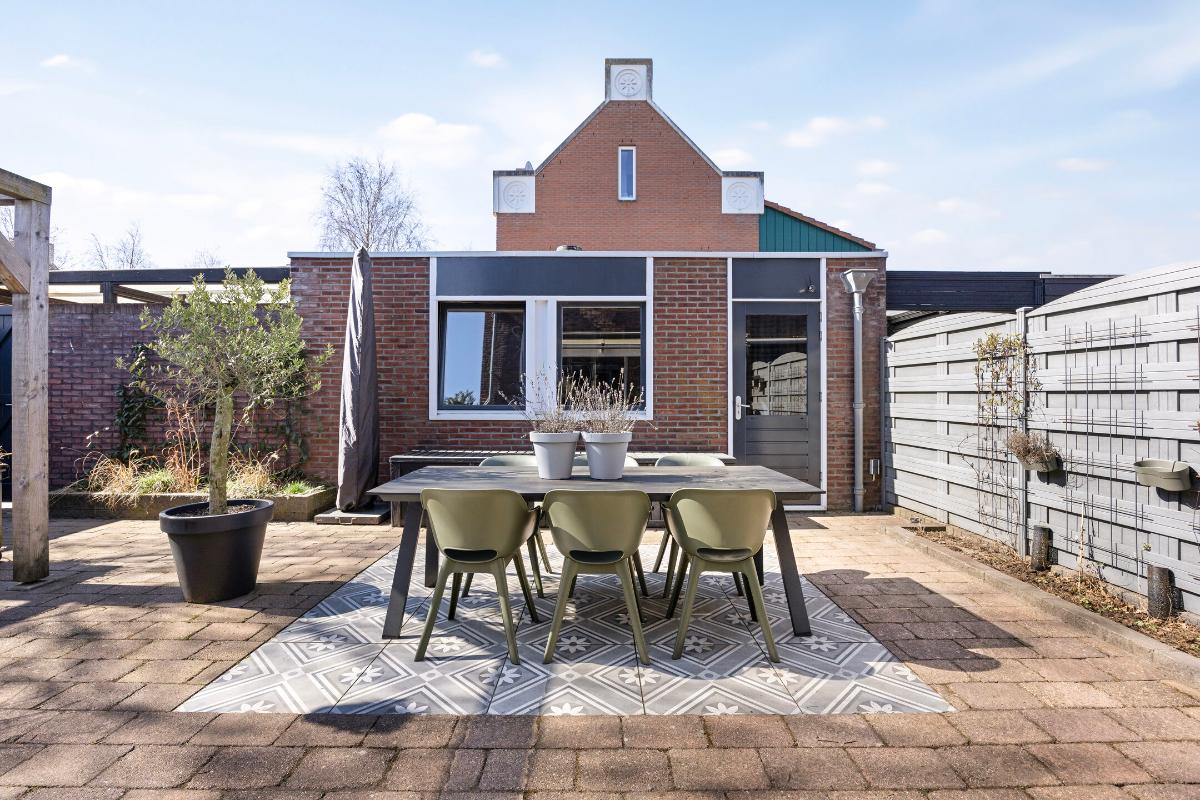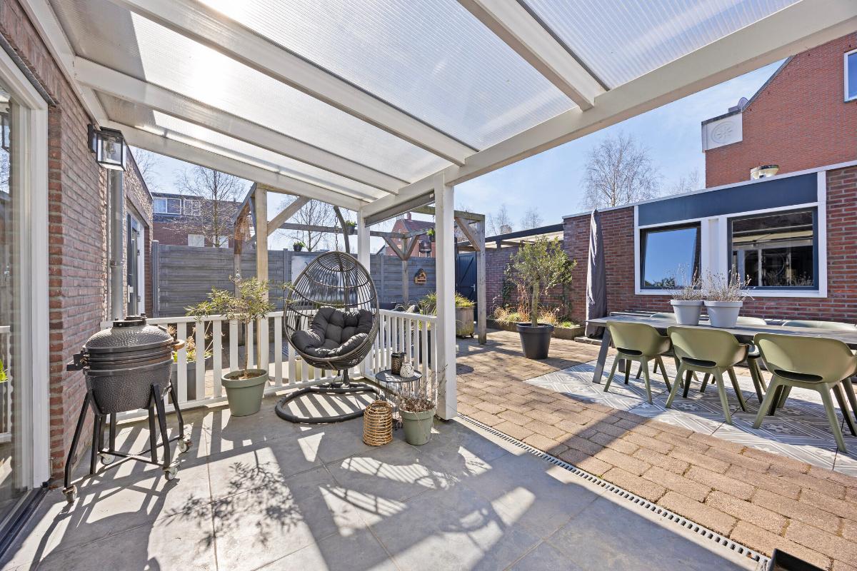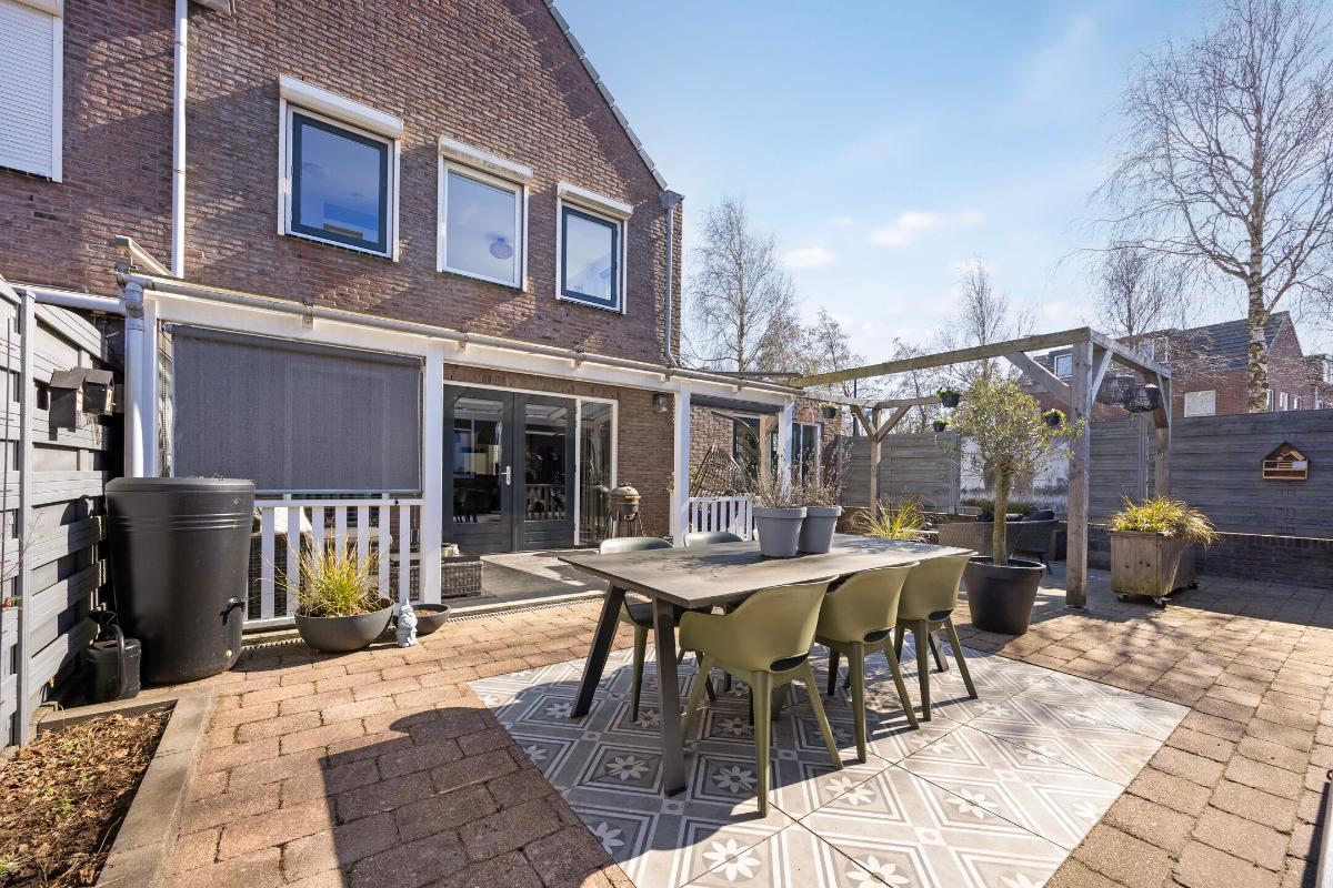 In de achtertuin staat een vrijstaande stenen garage v.v. elektra en carport. Aan de achterzijde van de woning staat een veranda.