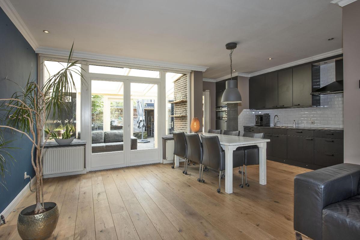 Begane grond: entree, hal, toilet, meterkast, trapopgang, provisiekelder, open keuken voorzien van inbouwapparatuur, lichte straatgerichte woonkamer met openslaande deuren voor toegang tot de aangebouwde serre. 1e verdieping: overloop, separate wasruimte, 3 slaapkamers, badkamer met wastafelmeubel, inloopdouche en toilet. 2e verdieping: overloop, zolderruimte met technische opstelling, vierde, royale slaapkamer met dakkapel en rolluik.