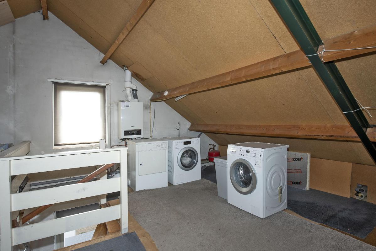 Indeling: Begane grond: overdekte entree, hal met trapopgang en garderoberuimte, toilet met fontein, meterkast en toegang tot de keuken en/of woonkamer, dichte eenvoudige keuken voorzien van 4-pits gaskookplaat, afzuigkap en koelkast met voldoende ruimte voor een eettafel, L-vormige woonkamer met openslaande deuren naar de tuin en gezellige gashaard. Beschutte tuin met achterom en toegang tot de extra brede, vrijstaande garage met loopdeur, handmatig bedienbare kanteldeur en voldoende bergruimte. 1e verdieping: ruime overloop met zijraam en bergkast, 3 royale slaapkamers waarvan 2 voorzien van vaste kastruimte, moderne badkamer met inloopdouche, wastafelmeubel, toilet en toegang tot een praktisch balkon. 2e verdieping: middels vaste trap bereikbare open zolderruimte met zijraam, stook- en wasmachine-opstelling. Er bestaat hier de mogelijkheid om extra (slaap)kamers te realiseren.