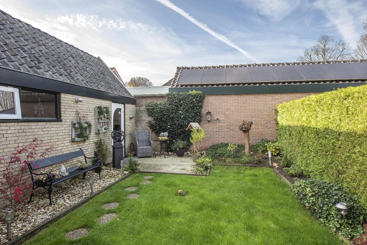 Bijzonderheden: - Gunstig gelegen ten opzichte van basisscholen, kinderopvang, sportfaciliteiten en uitvalswegen, met ook het buitengebied op korte afstand; - De moderne badkamer is vernieuwd in 2020; - De pui met de openslaande deuren naar de tuin is uitgevoerd in een onderhoudsvrij kunststof; - De tekeningen, maten, oppervlakte en inhoud zijn indicatief, hieraan kunnen geen rechten worden ontleend; - In de koopovereenkomst worden clausules opgenomen in het kader van ouderdom; - In de koopakte wordt een 10% waarborgsom of bankgarantie opgenomen.