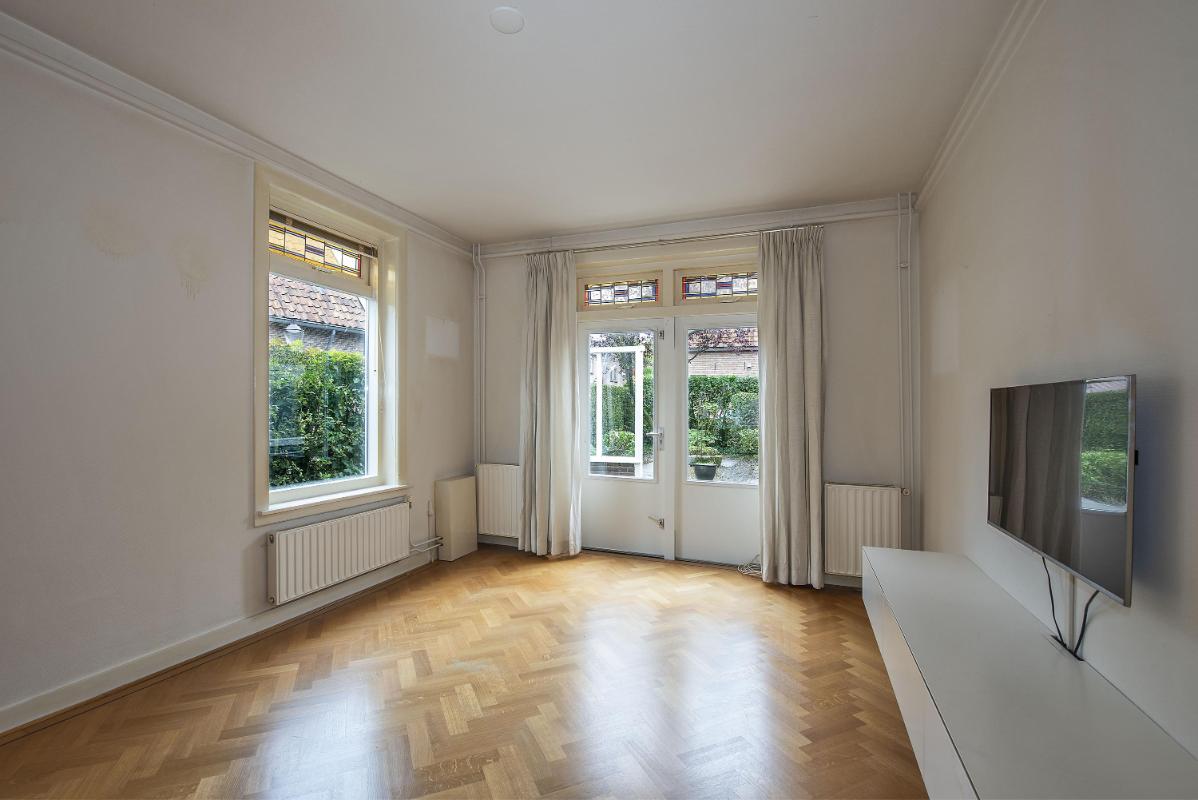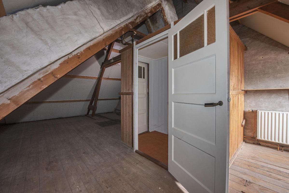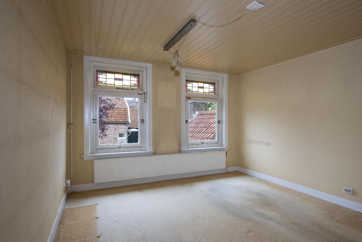 Indeling: Begane grond: entree, hal, meterkast, toilet, provisiekelder, voorkamer met erker en suitedeuren, tuingerichte woonkamer met openslaande tuindeuren, keuken voorzien van eenvoudige keukeninrichting, praktische aangebouwde bijkeuken/berging met aansluitingen voor de wasapparatuur. 1e verdieping: overloop, 2 ruime slaapkamers waarvan de slaapkamer aan de voorzijde toegang geeft tot het balkon, badkamer met douche, toilet, ligbad en wastafel. 2e verdieping: middels vaste trap bereikbaar, overloop, royale zolderruimte met indelingsmogelijkheden en technische opstelling.