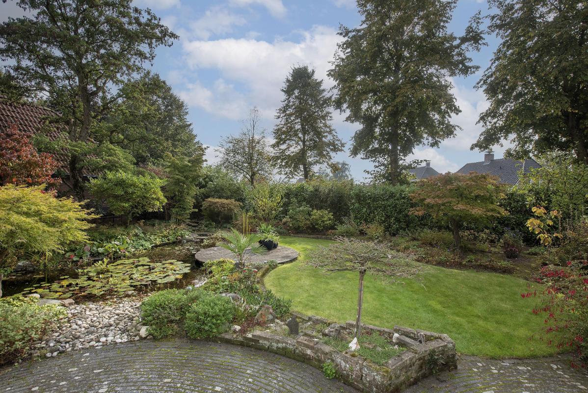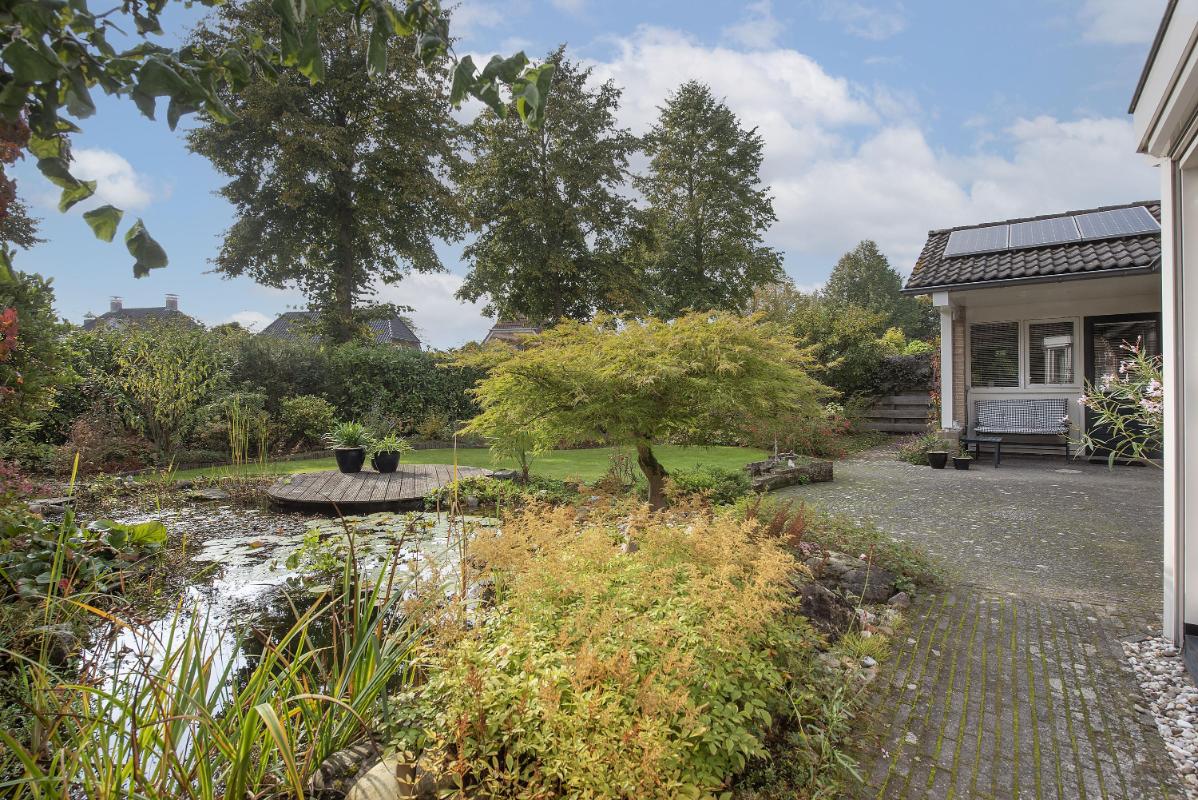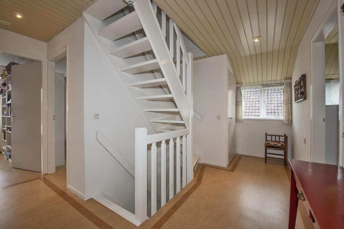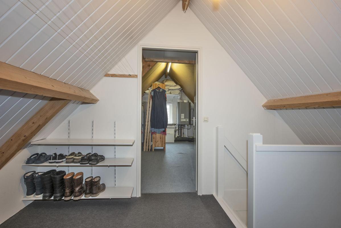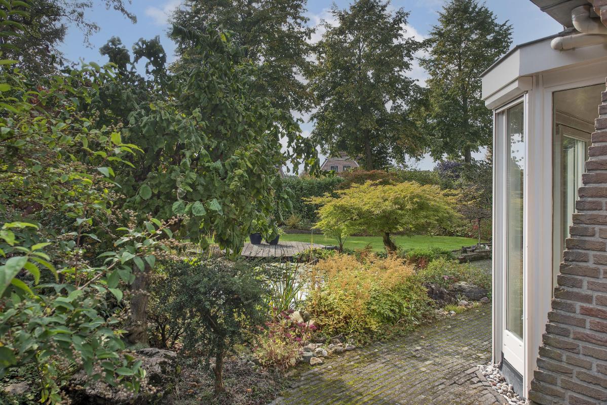 Indeling: Begane grond: entree, hal met trapopgang, toilet met fontein, meterkast met 3-fasen aansluiting, werk/-hobbykamer, woonkamer met houthaard en extra tuingerichte zithoek met schuifpui, eetkamer met schuifpui en tv-hoek, gesloten keuken voorzien van inbouwapparatuur en infraroodverwarming, praktische bijkeuken met keukenblad met spoelbak, aansluitingen voor de wasapparatuur, garage met loopdeur, openslaande deuren en vliering. 1e verdieping: royale overloop met bergkast, 4 zeer ruime slaapkamers waarvan de ouderslaapkamer beschikt over een eigen badkamer met wastafelmeubel, bubbelbad, toilet en douche. Vanuit de overloop is de tweede badkamer bereikbaar, deze is voorzien van een wastafelmeubel, toilet en douche. 2e verdieping: middels vaste trap bereikbaar, overloop met bergruimte, vijfde slaapkamer, zolderberging met boileropstelling.