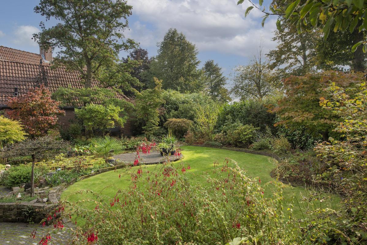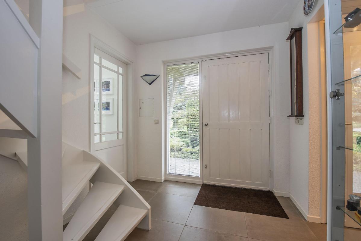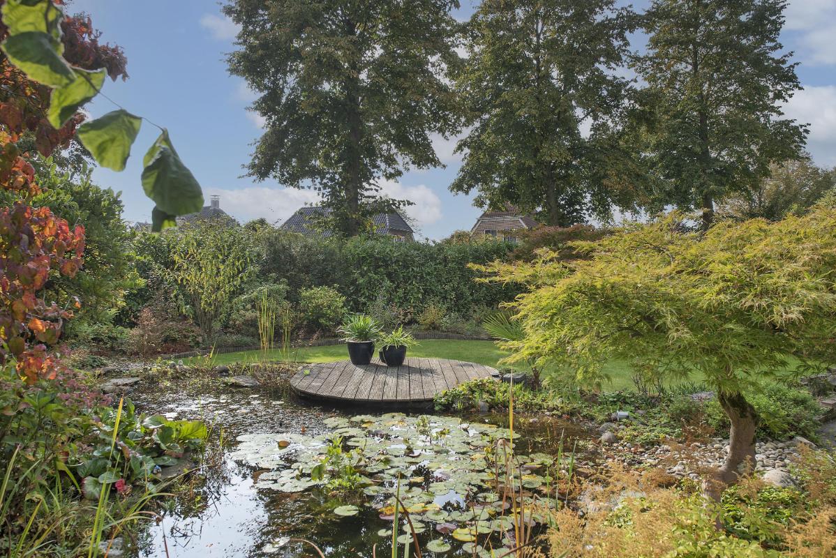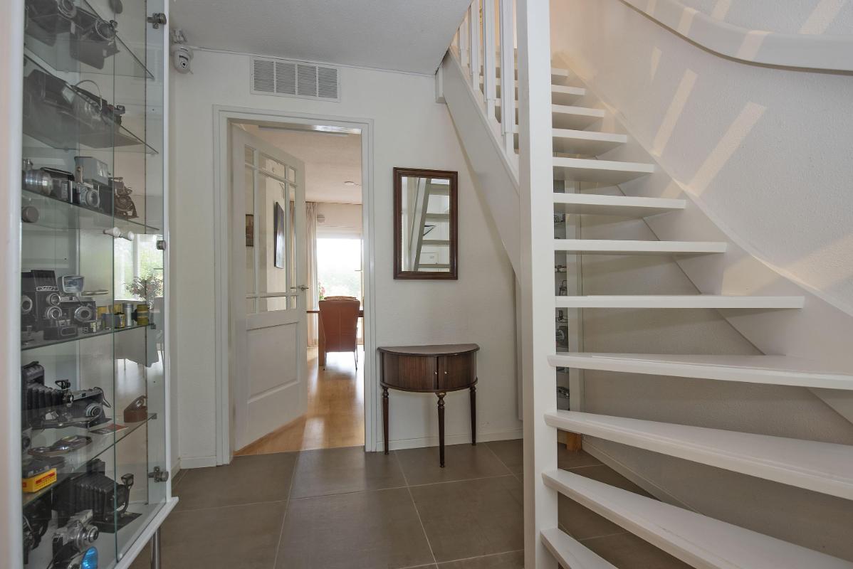 Indeling: Begane grond: entree, hal met trapopgang, toilet met fontein, meterkast met 3-fasen aansluiting, werk/-hobbykamer, woonkamer met houthaard en extra tuingerichte zithoek met schuifpui, eetkamer met schuifpui en tv-hoek, gesloten keuken voorzien van inbouwapparatuur en infraroodverwarming, praktische bijkeuken met keukenblad met spoelbak, aansluitingen voor de wasapparatuur, garage met loopdeur, openslaande deuren en vliering. 1e verdieping: royale overloop met bergkast, 4 zeer ruime slaapkamers waarvan de ouderslaapkamer beschikt over een eigen badkamer met wastafelmeubel, bubbelbad, toilet en douche. Vanuit de overloop is de tweede badkamer bereikbaar, deze is voorzien van een wastafelmeubel, toilet en douche. 2e verdieping: middels vaste trap bereikbaar, overloop met bergruimte, vijfde slaapkamer, zolderberging met boileropstelling.