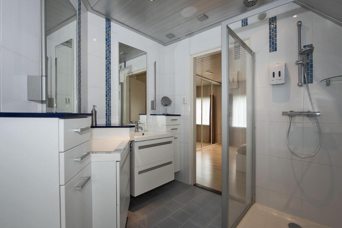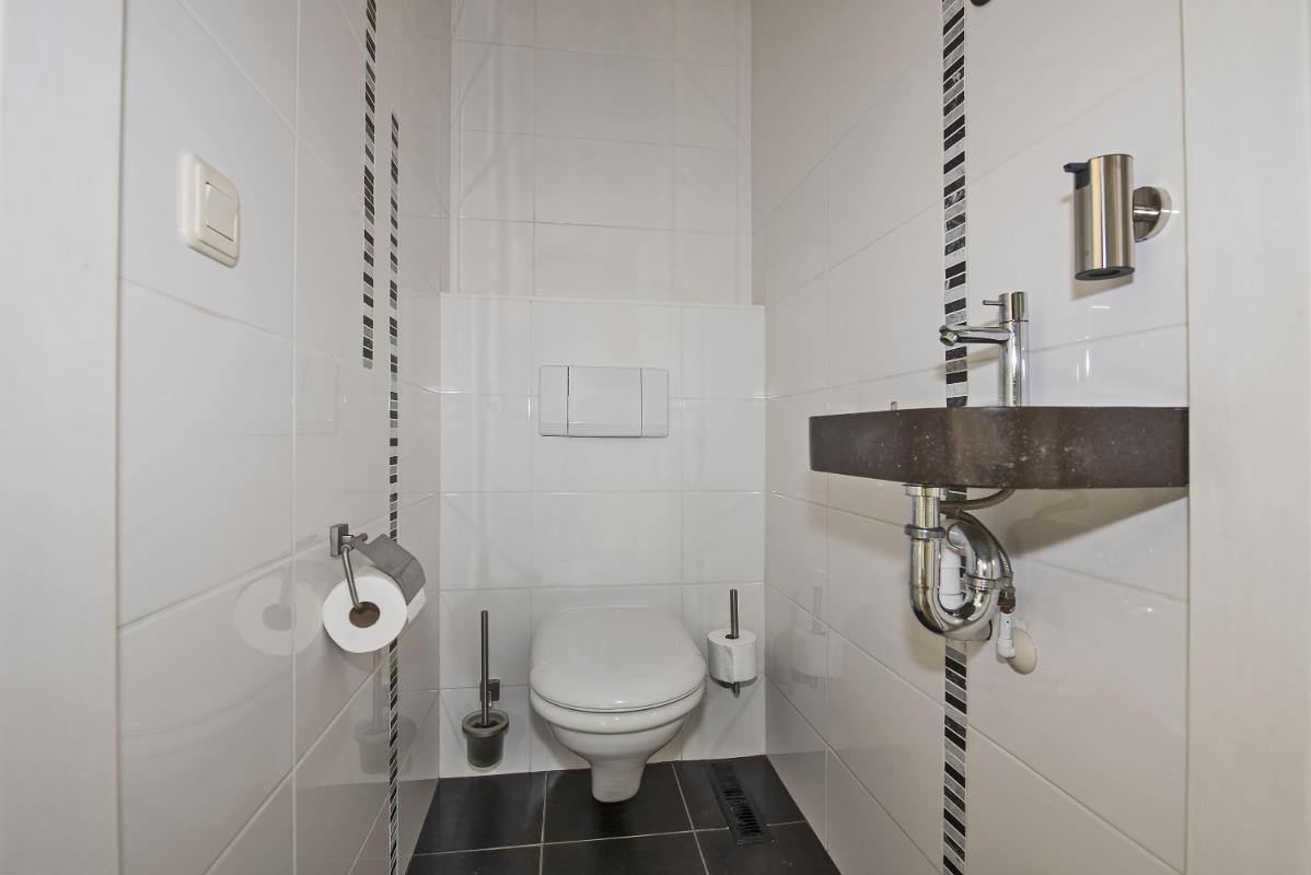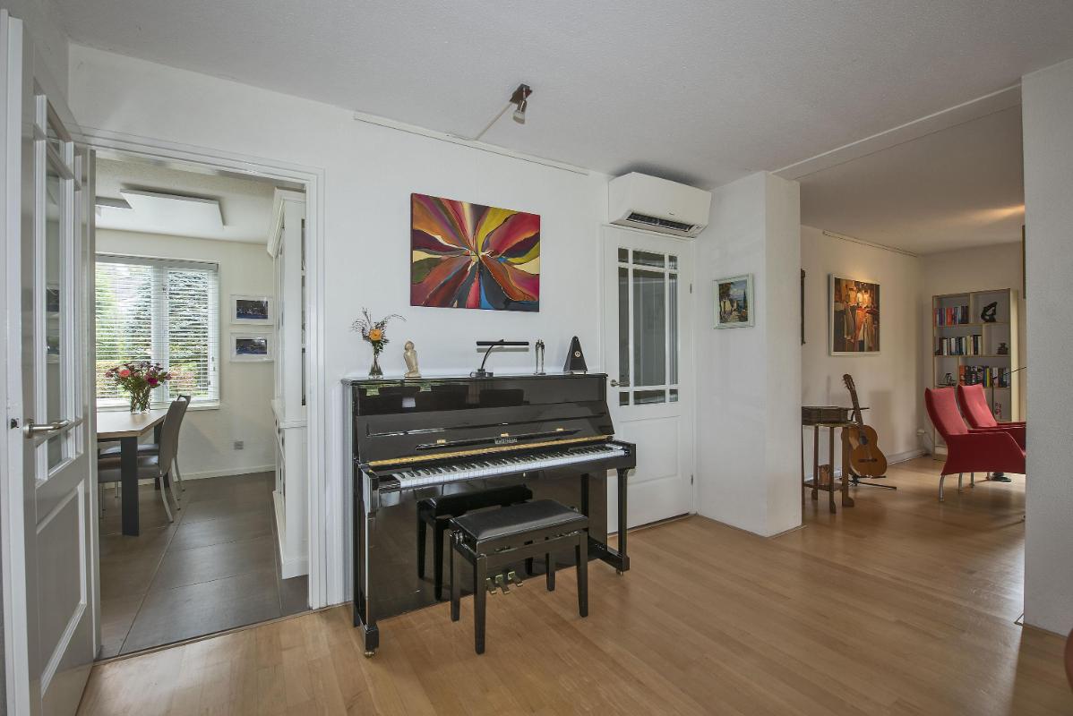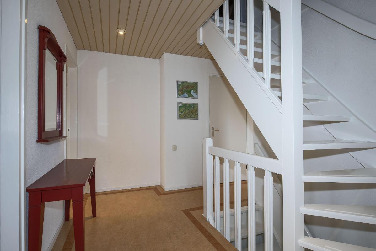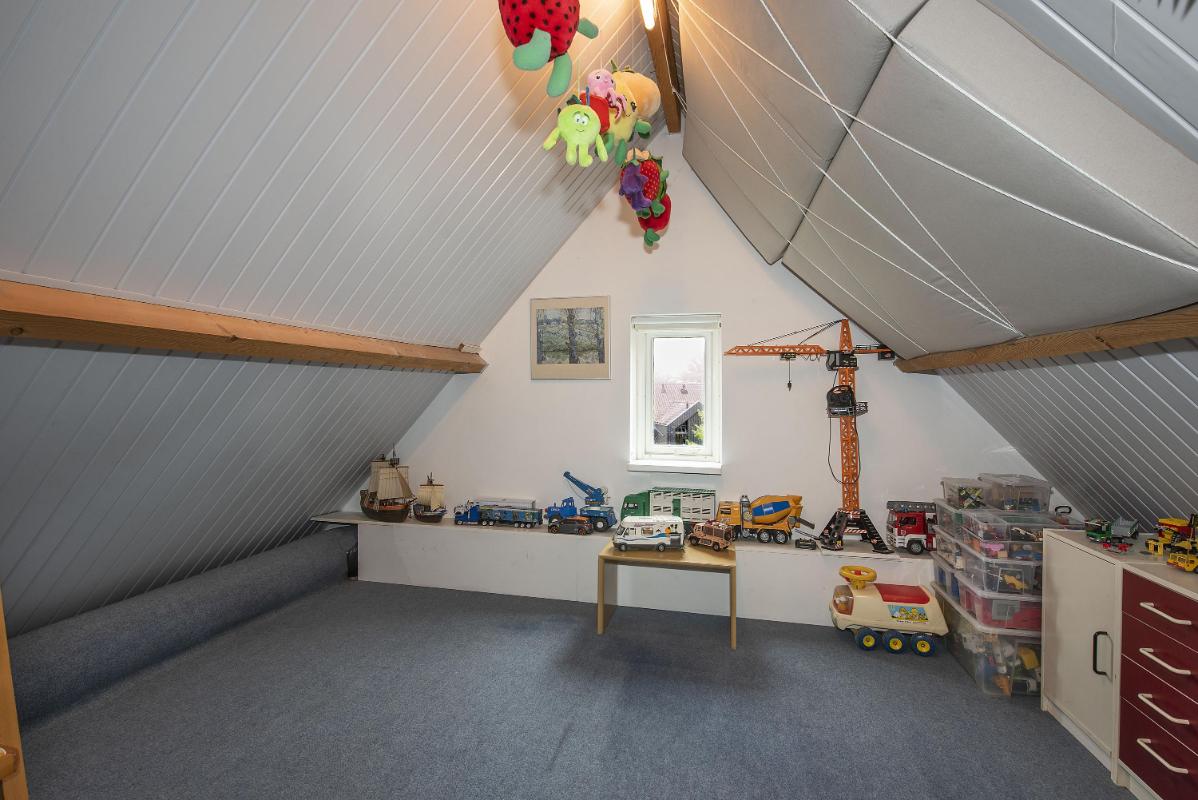 Indeling: Begane grond: entree, hal met trapopgang, toilet met fontein, meterkast met 3-fasen aansluiting, werk/-hobbykamer, woonkamer met houthaard en extra tuingerichte zithoek met schuifpui, eetkamer met schuifpui en tv-hoek, gesloten keuken voorzien van inbouwapparatuur en infraroodverwarming, praktische bijkeuken met keukenblad met spoelbak, aansluitingen voor de wasapparatuur, garage met loopdeur, openslaande deuren en vliering. 1e verdieping: royale overloop met bergkast, 4 zeer ruime slaapkamers waarvan de ouderslaapkamer beschikt over een eigen badkamer met wastafelmeubel, bubbelbad, toilet en douche. Vanuit de overloop is de tweede badkamer bereikbaar, deze is voorzien van een wastafelmeubel, toilet en douche. 2e verdieping: middels vaste trap bereikbaar, overloop met bergruimte, vijfde slaapkamer, zolderberging met boileropstelling.