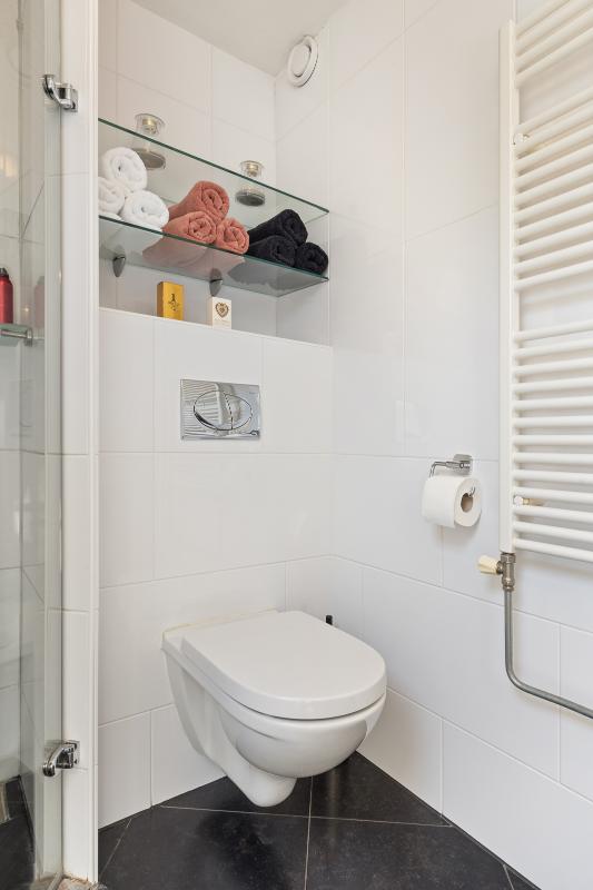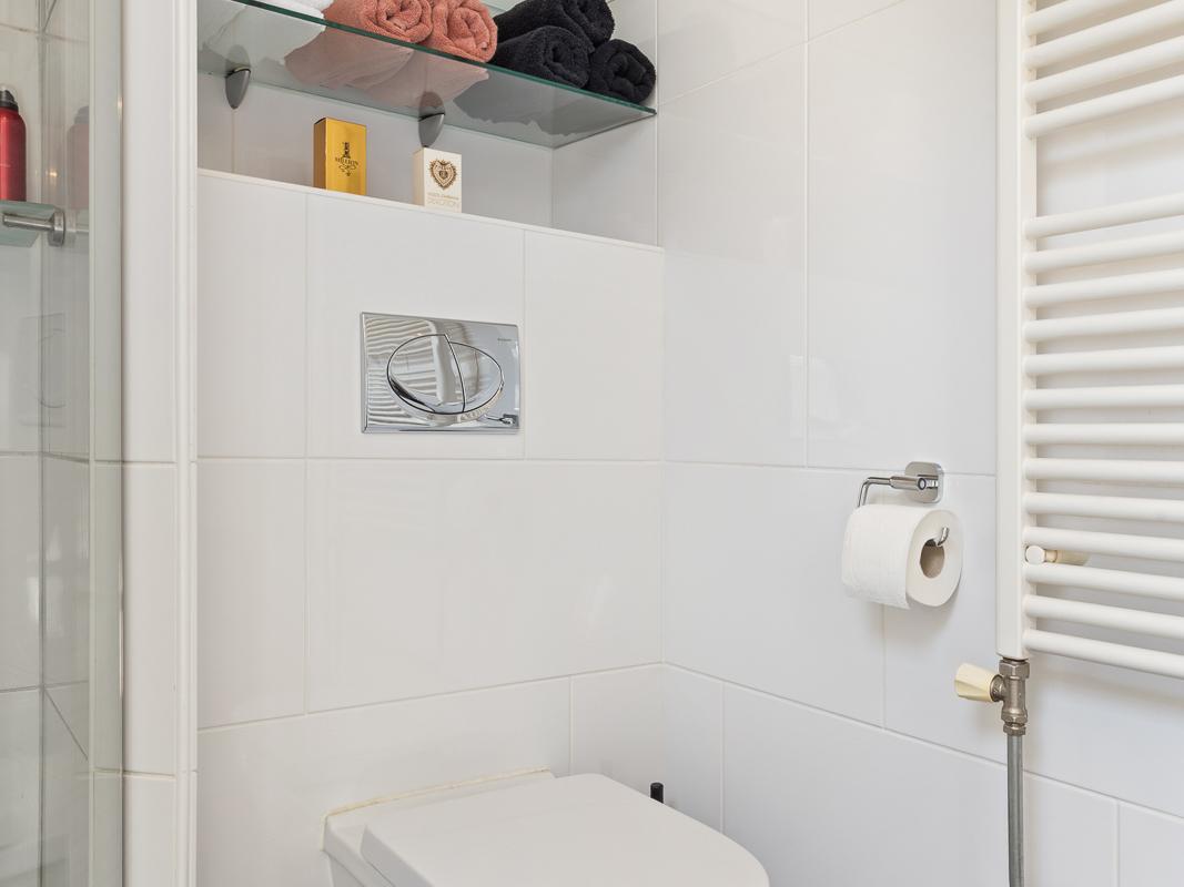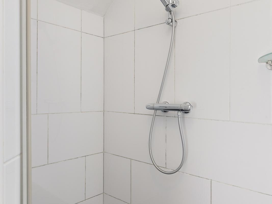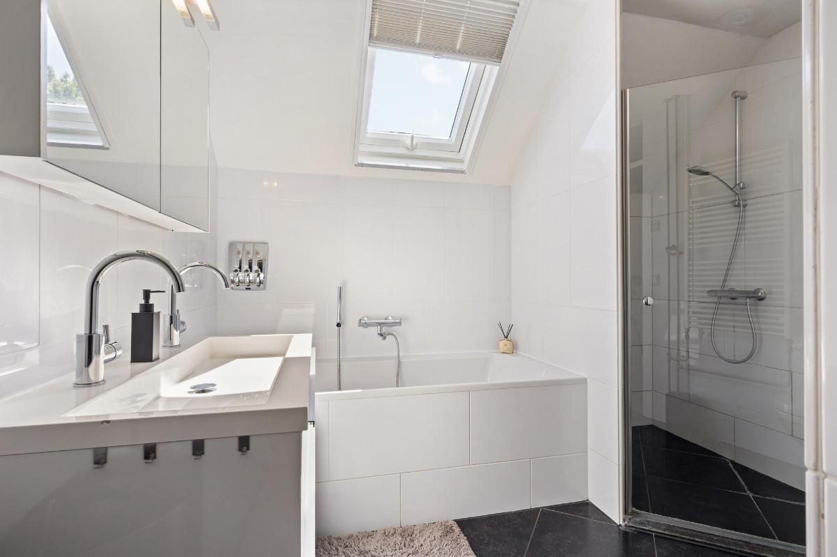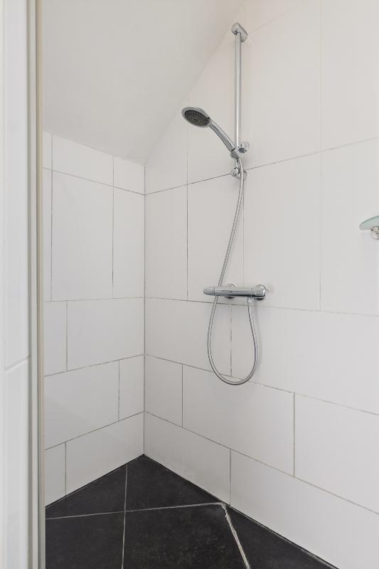 De badkamer op de eerste verdieping is fris, compleet en verzorgd afgewerkt. Je beschikt hier over een comfortabele inloopdouche, een ligbad, een modern wastafelmeubel met opbergruimte én een toilet. Of je nu snel wilt douchen in de ochtend of juist uitgebreid wilt ontspannen in bad – het kan hier allemaal.