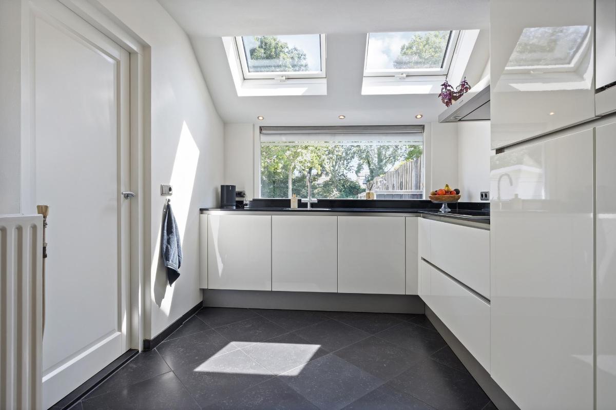 De keuken is een absolute eyecatcher in deze woning. Gelegen in de uitbouw en opgesteld in een moderne stijl, met hoogwaardige materialen en een slimme indeling. Je hebt hier volop werk- en bergruimte, moderne inbouwapparatuur én een Quooker voor direct kokend water – ideaal bij het koken of voor een snelle kop thee.
