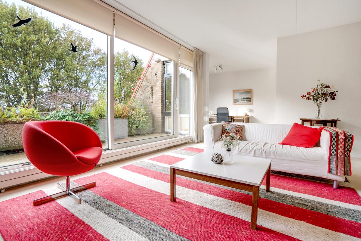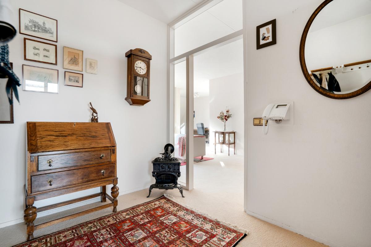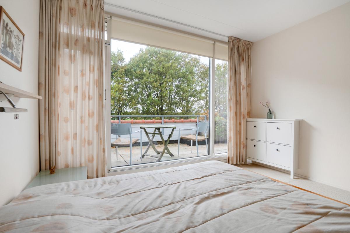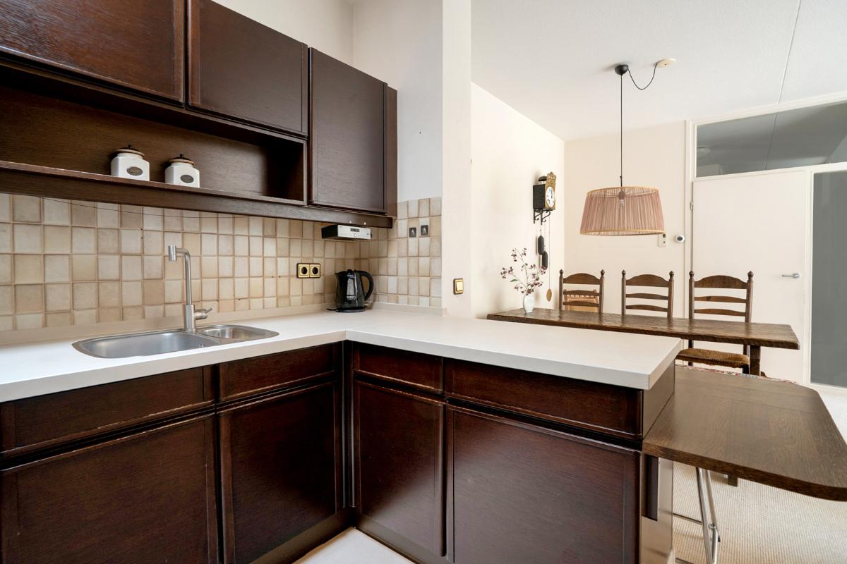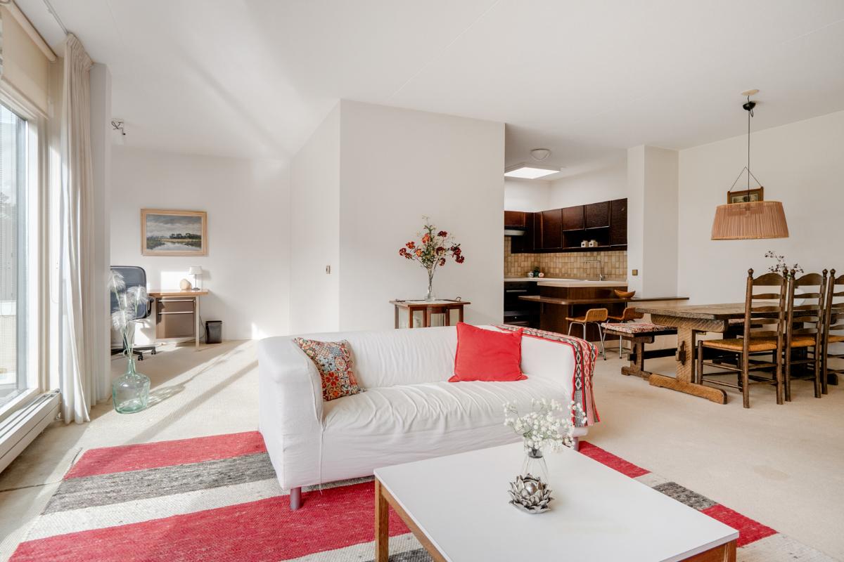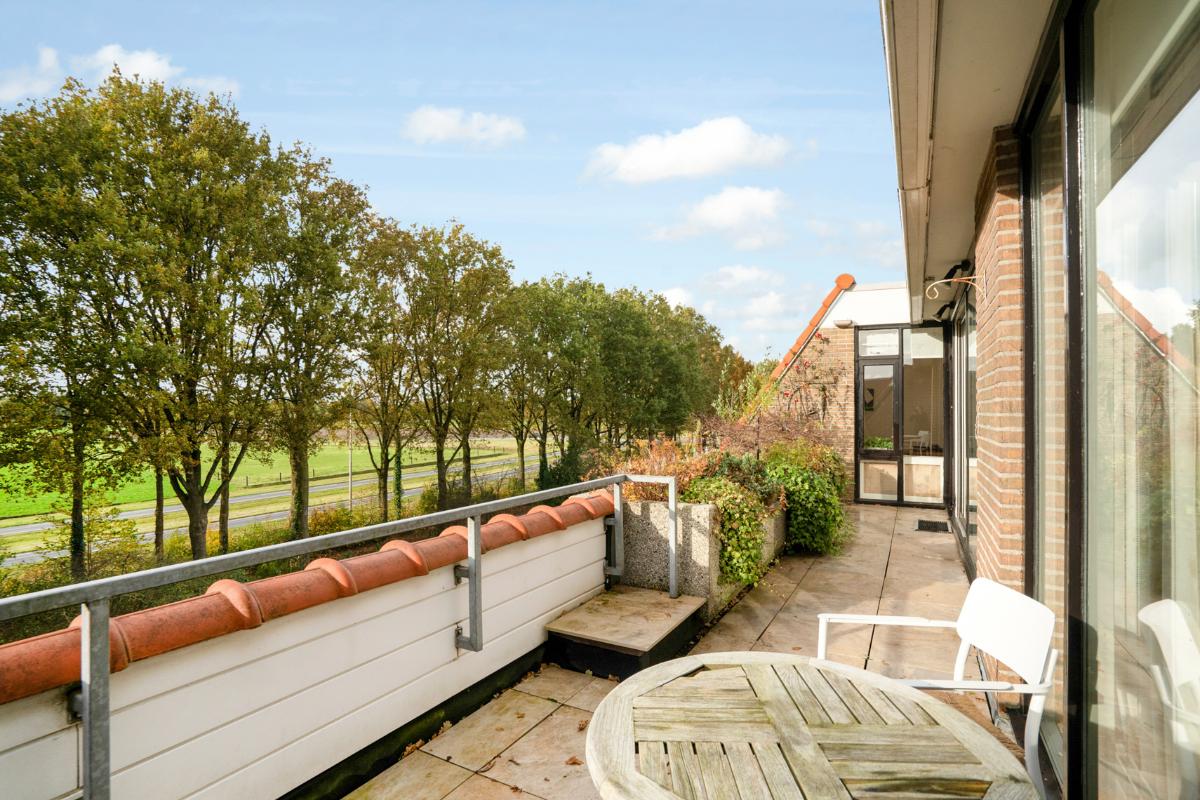 Licht, ruim en uitnodigend Het appartement heeft een verrassend lichte woonkamer met halfopen keuken en toegang tot het ruime balkon op het westen. Dankzij de grote raampartijen en de ligging op de bovenste verdieping geniet je volop van ruimte en rust. De halfopen keuken is praktisch ingedeeld en voorzien van diverse inbouwapparatuur. Verder beschikt het appartement over een ruime slaapkamer, een keurige badkamer met ligbad, douche, toilet en wastafelmeubel, en een separaat gastentoilet in de hal. Het royale balkon (ca. 17 m²) vormt het verlengstuk van de woonkamer – een heerlijke plek waar je vooral van de middag- en avondzon kunt genieten.