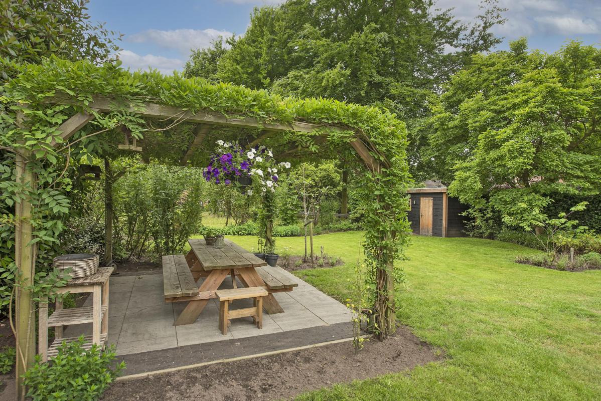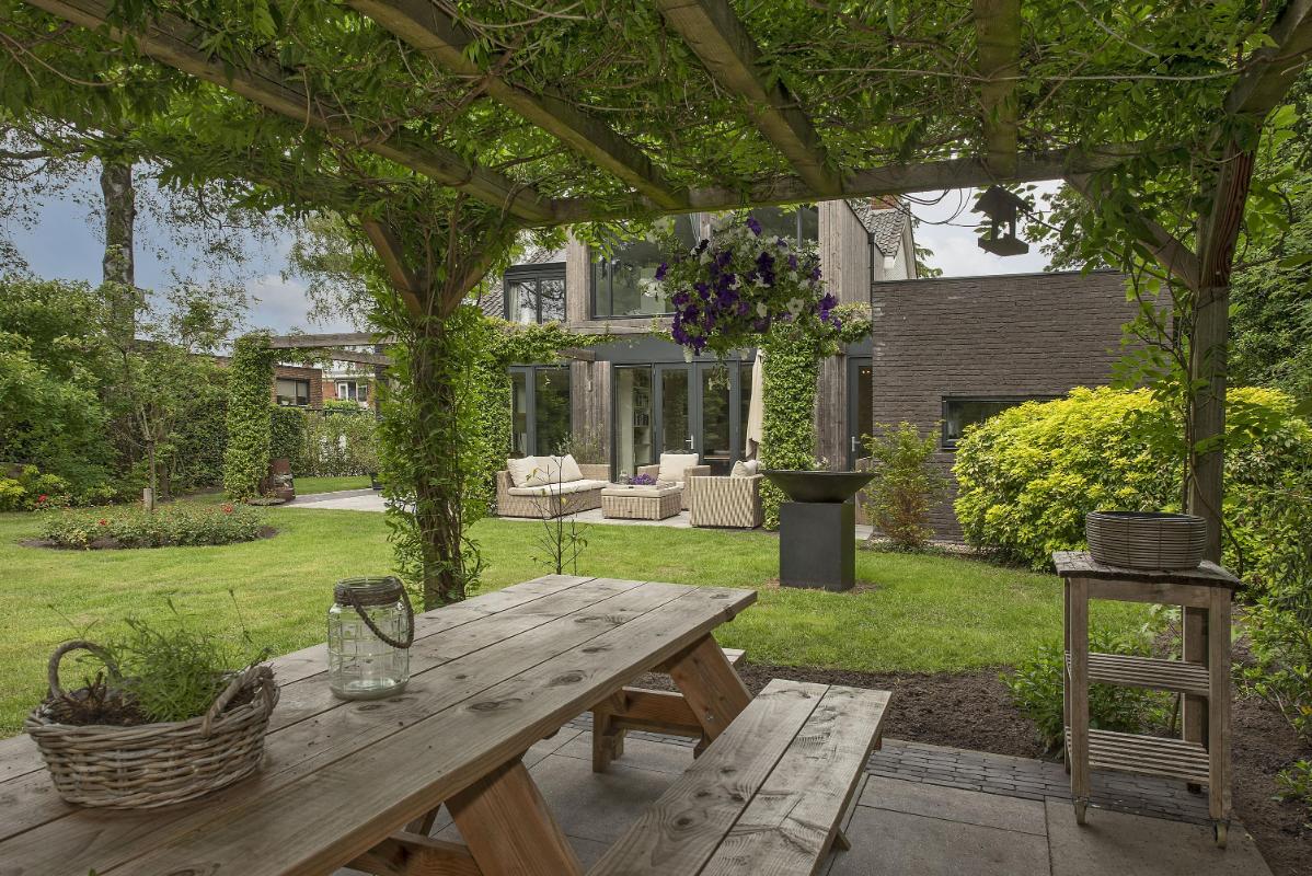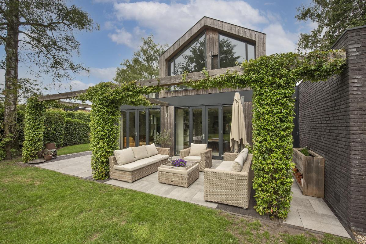 En dan die tuin… ja, ook hier is het dubbel genieten. Rondom de woning is alles met zorg en smaak aangelegd: strakke lijnen, speelse groenaccenten, meerdere terrassen en overal wel een plekje om te zitten, te loungen of gewoon even met een kop koffie van het uitzicht te genieten. Het enige risico? Keuzestress. Want ga je voor het ruime terras grenzend aan de woning, of toch liever lekker beschut onder de fraaie groene overkapping? Eén ding is zeker: buitenleven is hier net zo fijn als binnen wonen. Of eigenlijk… dubbel zo fijn.