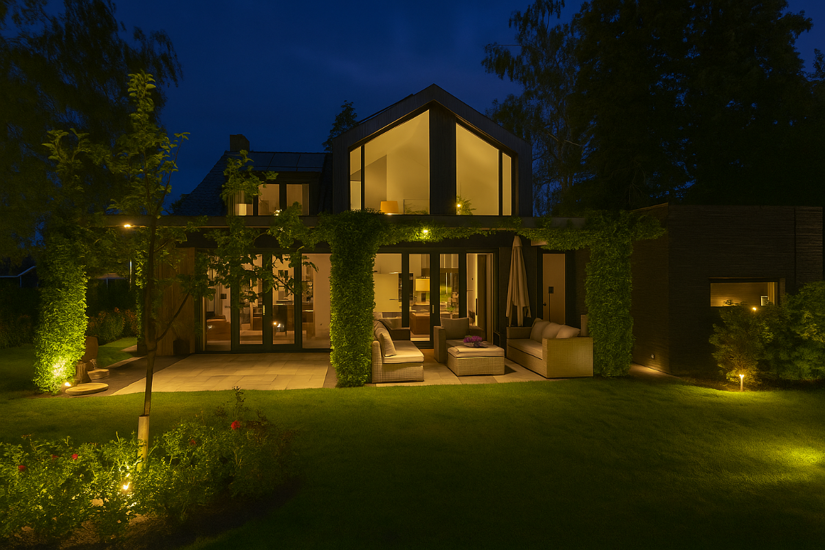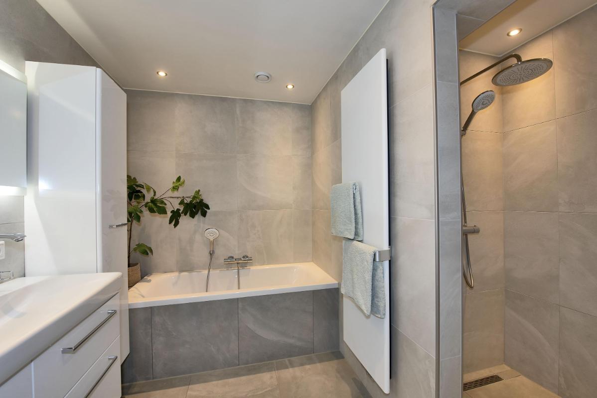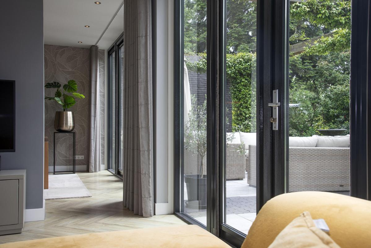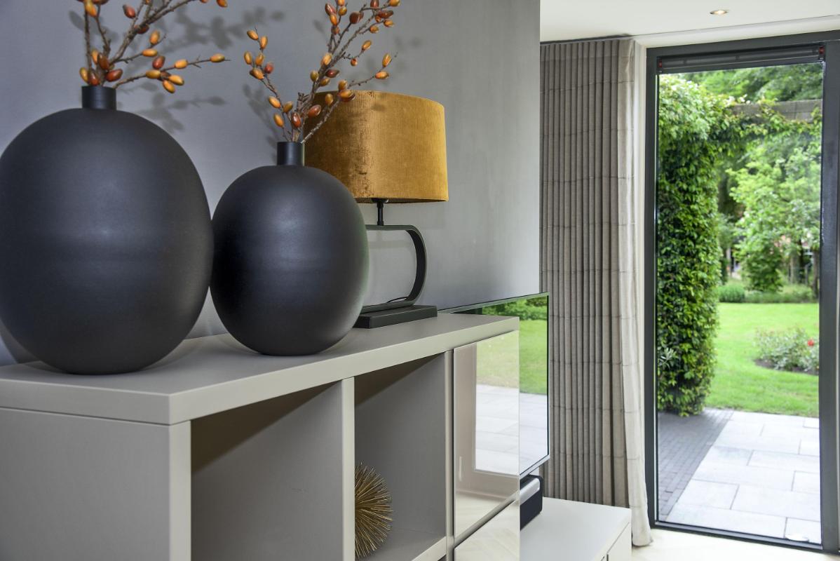En dan die tuin… ja, ook hier is het dubbel genieten. Rondom de woning is alles met zorg en smaak aangelegd: strakke lijnen, speelse groenaccenten, meerdere terrassen en overal wel een plekje om te zitten, te loungen of gewoon even met een kop koffie van het uitzicht te genieten. Het enige risico? Keuzestress. Want ga je voor het ruime terras grenzend aan de woning, of toch liever lekker beschut onder de fraaie groene overkapping? Eén ding is zeker: buitenleven is hier net zo fijn als binnen wonen. Of eigenlijk… dubbel zo fijn.