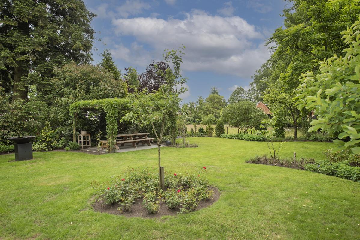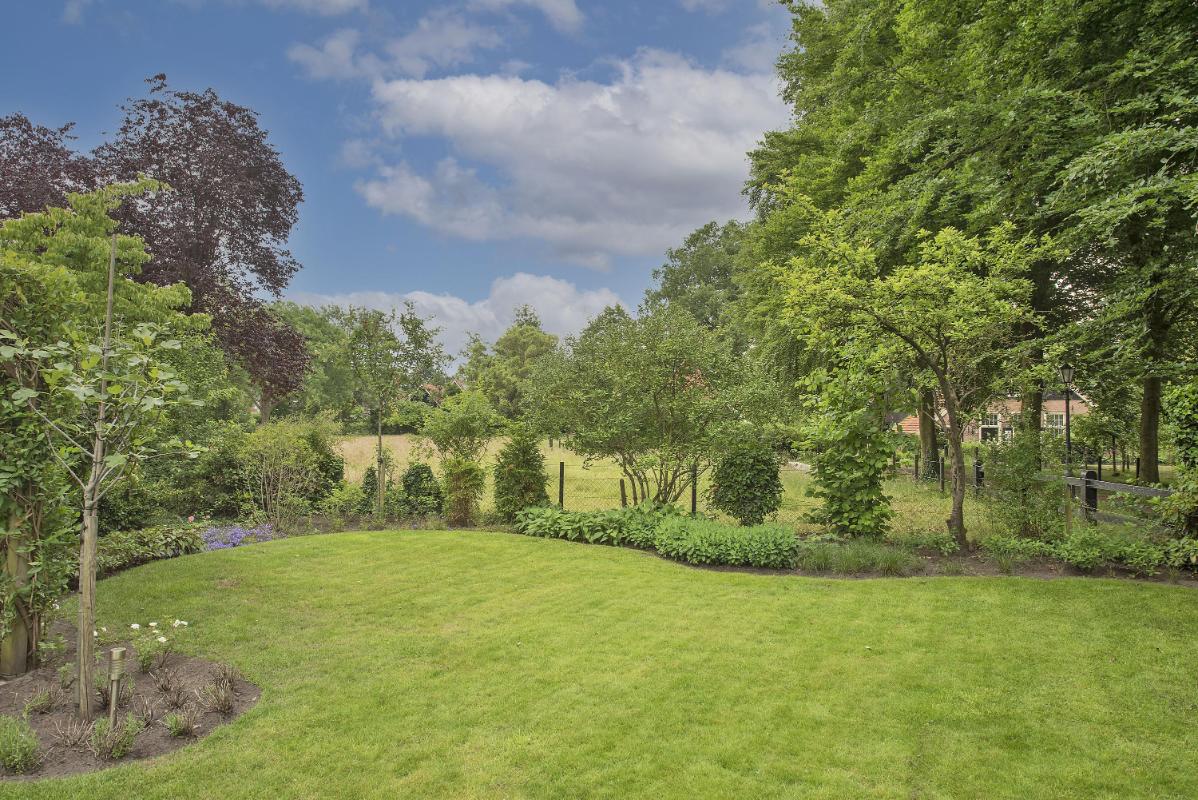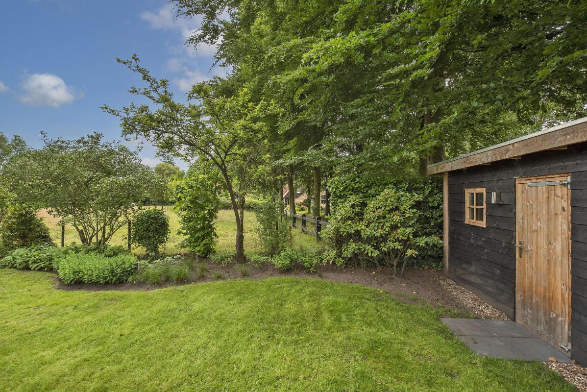 Indeling Begane grond: entree/hal, toilet, trapopgang, meterkast, trapkast, eerste woonkamer aan rechterzijde, houten pui naar tweede woonkamer, open woonkeuken met kook- en spoeleiland, vaste kastwand, fraai uitzicht op de tuin, hal met stookruimte, bijkeuken met wasmachineaansluiting, toegang tot de aangebouwde stenen garage met stortbak en doorgang naar de kantoorruimte met eigen entree. 1e verdieping: overloop met vide, vier slaapkamers, separaat toilet, twee badkamers waarvan één en suite met ligbad, dubbele wastafel, douche en toilet. 2e verdieping: via vlizotrap bereikbare bergzolder. Tuin: rondom de woning, fraai aangelegd, meerdere terrassen, vrij uitzicht over weiland, houten berging.