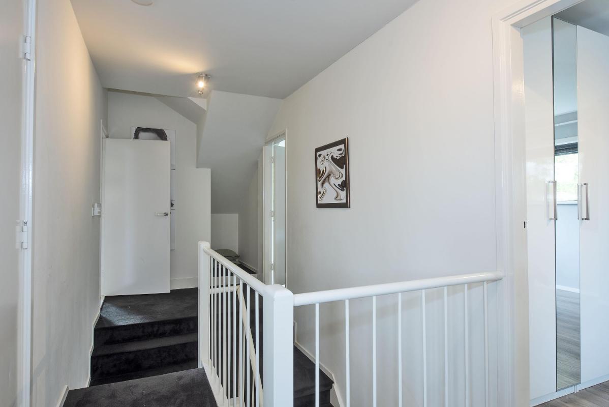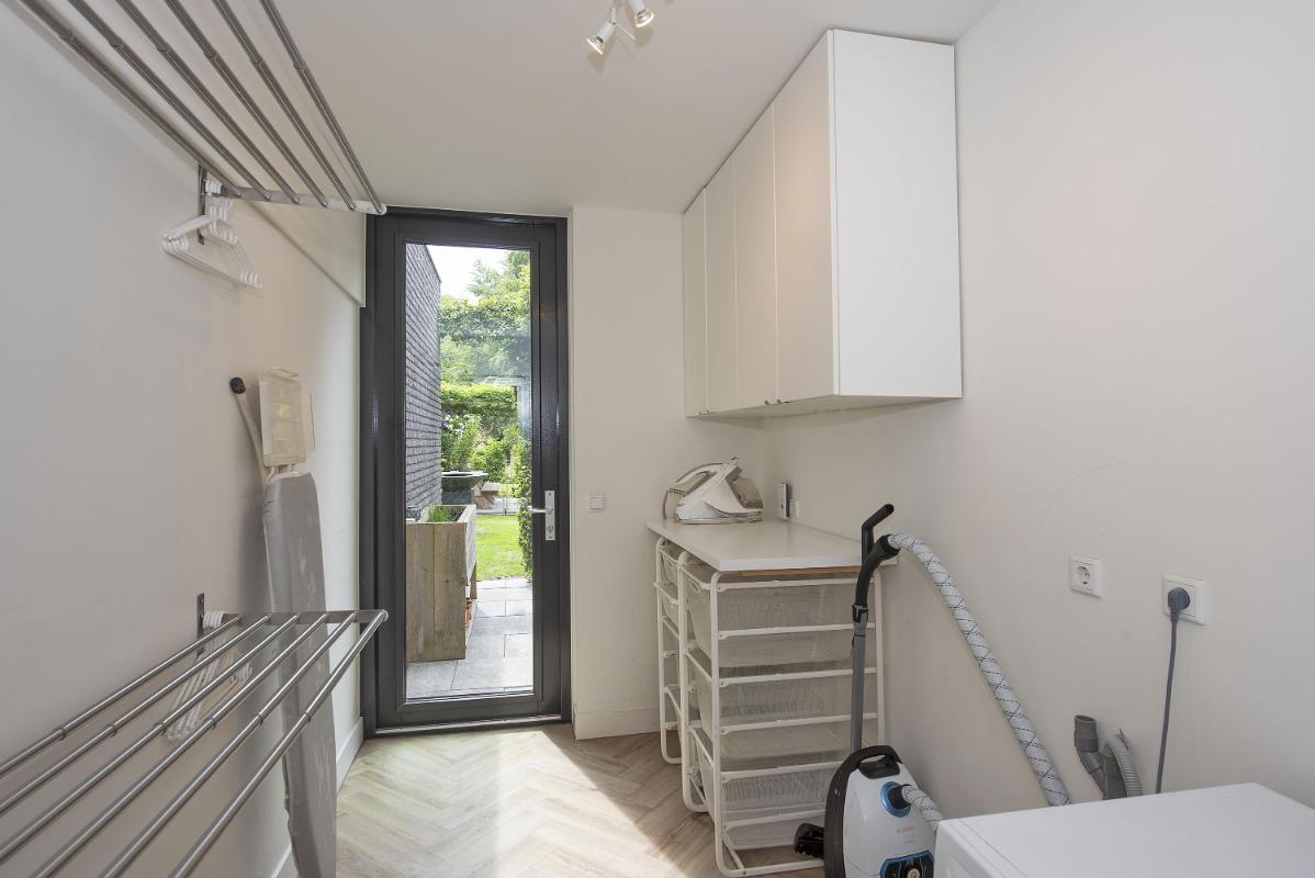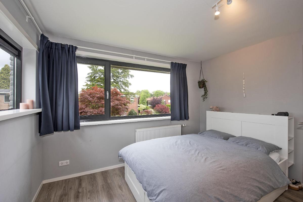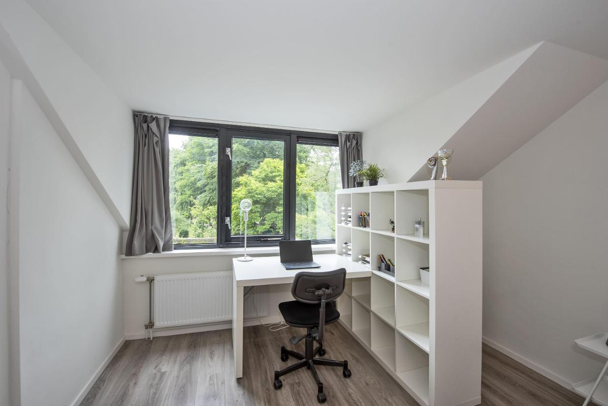 Indeling Begane grond: entree/hal, toilet, trapopgang, meterkast, trapkast, eerste woonkamer aan rechterzijde, houten pui naar tweede woonkamer, open woonkeuken met kook- en spoeleiland, vaste kastwand, fraai uitzicht op de tuin, hal met stookruimte, bijkeuken met wasmachineaansluiting, toegang tot de aangebouwde stenen garage met stortbak en doorgang naar de kantoorruimte met eigen entree. 1e verdieping: overloop met vide, vier slaapkamers, separaat toilet, twee badkamers waarvan één en suite met ligbad, dubbele wastafel, douche en toilet. 2e verdieping: via vlizotrap bereikbare bergzolder. Tuin: rondom de woning, fraai aangelegd, meerdere terrassen, vrij uitzicht over weiland, houten berging.