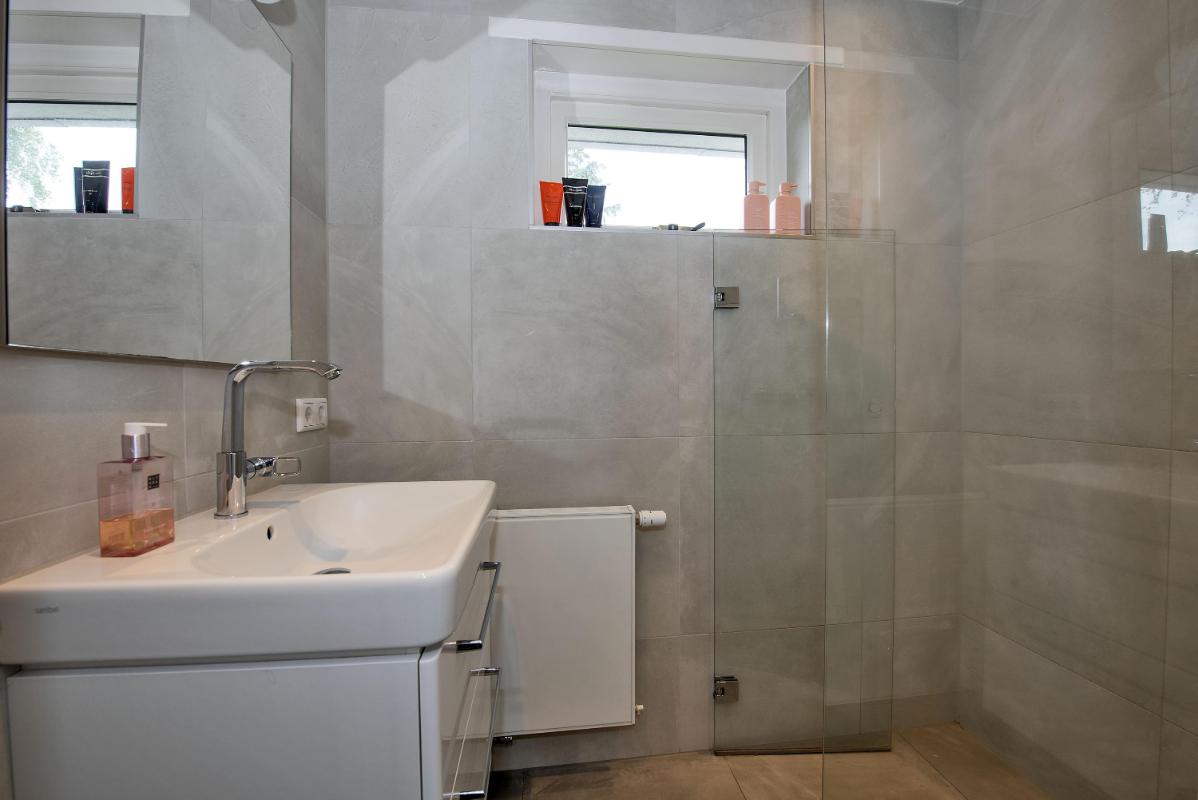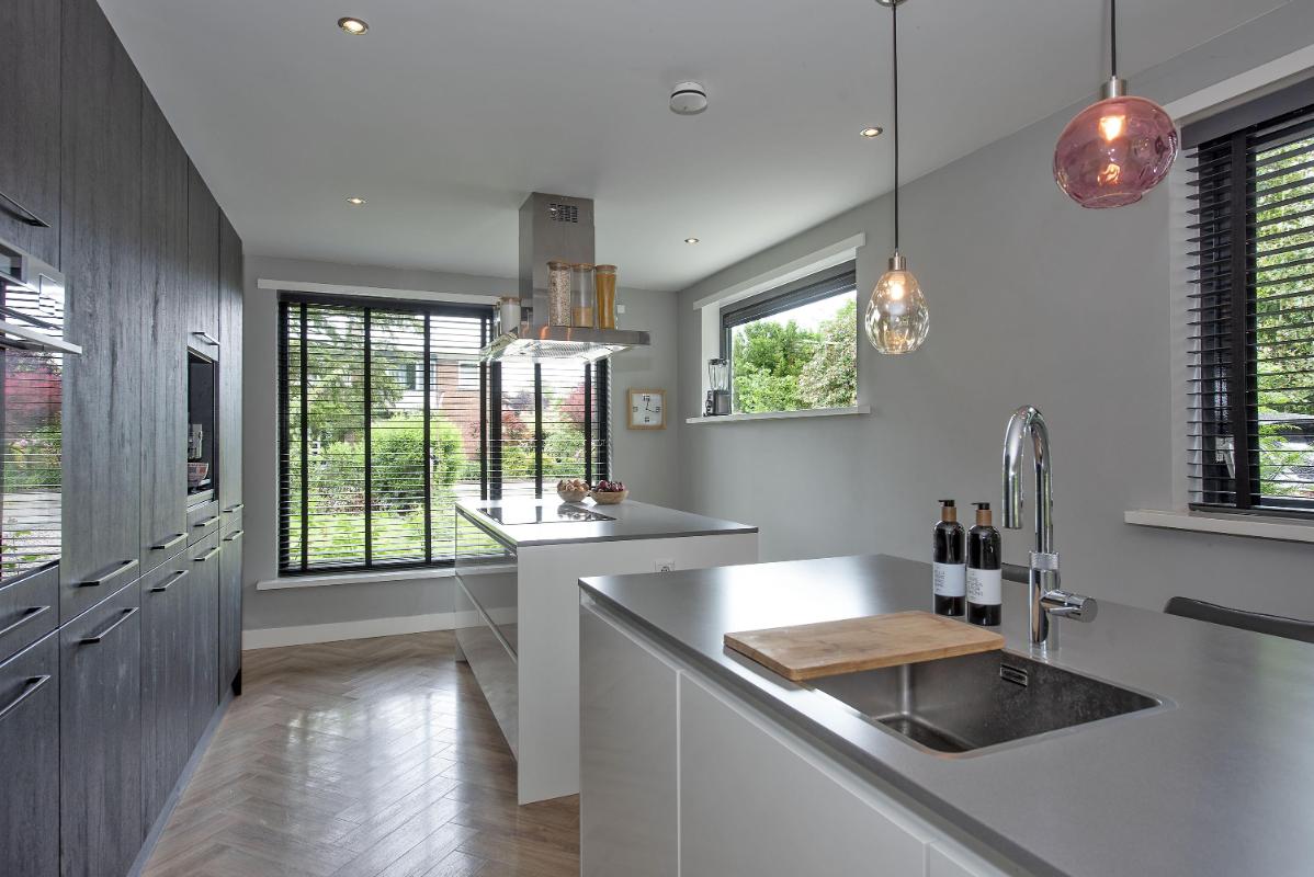 Wat dacht je van twee royale woonkamers, een indrukwekkende woonkeuken met niet één maar twéé eilanden – een kook- én een spoeleiland – en twee complete badkamers? Dubbelop genieten dus. De afwerking is tot in de puntjes verzorgd, met oog voor stijl en comfort. Denk aan een fraai pui tussen de woonkamers, grote raampartijen met uitzicht op het Twentse groen en een riante tuin rondom waar je geniet van volledige privacy. Je achterburen? Grazende koeien. Je dagelijkse uitzicht? Rust, ruimte en groen zover het oog reikt. Naast de woonkamers en de keuken is er ook nog een praktische bijkeuken, een aangebouwde garage en – jawel – een kantoorruimte met een eigen entree. Ideaal om rustig thuis te werken of klanten te ontvangen zonder je wooncomfort te verstoren. Op de eerste verdieping gaat het dubbele geluk gewoon door. Vier slaapkamers, twee badkamers én een speels ingedeelde overloop met vide. De hoofdslaapkamer beschikt over een en suite badkamer met ligbad, douche, toilet en dubbele wastafel. De tweede badkamer is perfect voor kinderen of gasten, en het toilet is apart geplaatst – lekker praktisch. Daarnaast heb je boven ook nog een bergzolder (via vlizotrap), en buiten een houten berging voor al je tuinspullen. Want ook aan opbergen is dubbel gedacht.