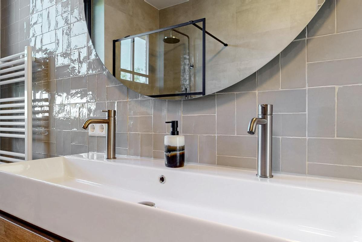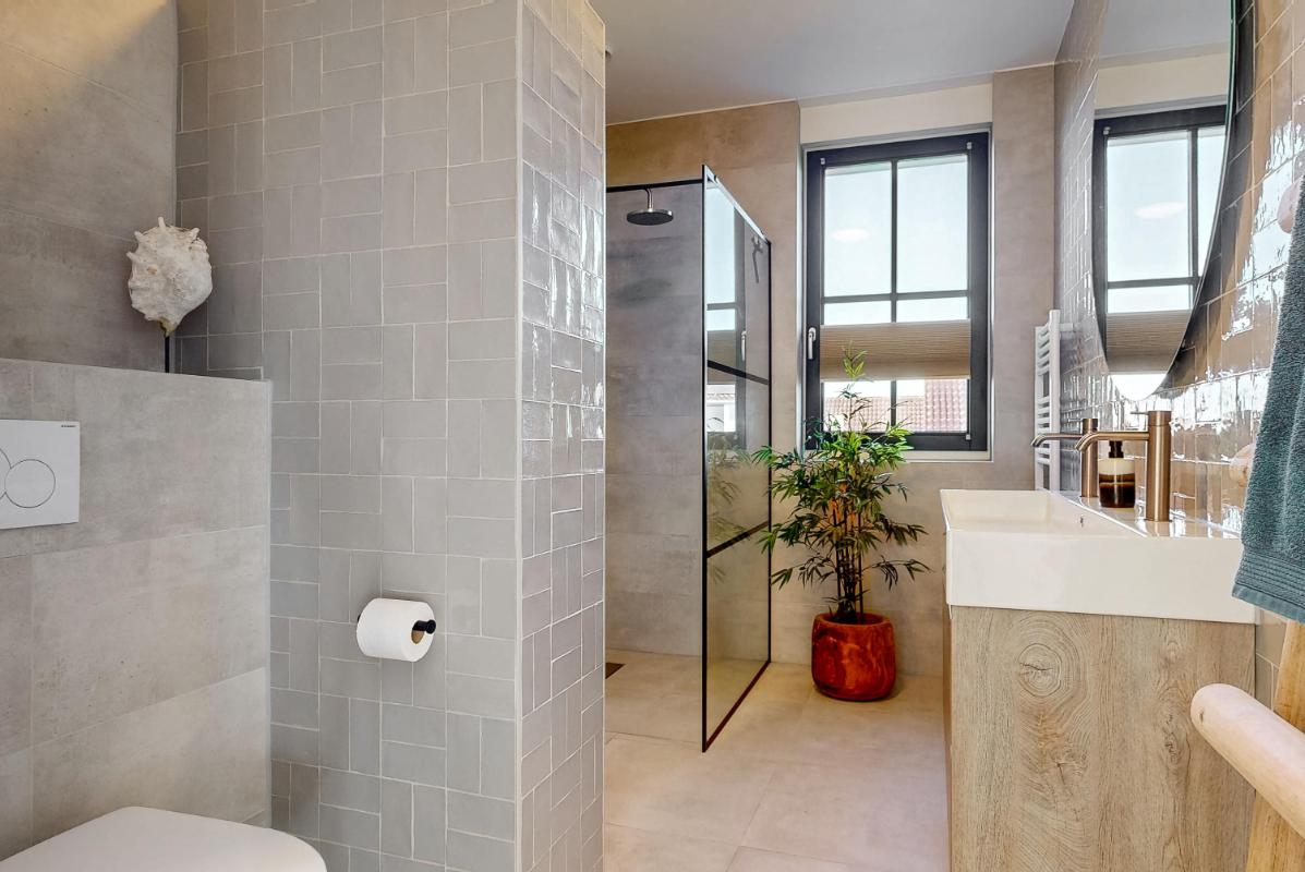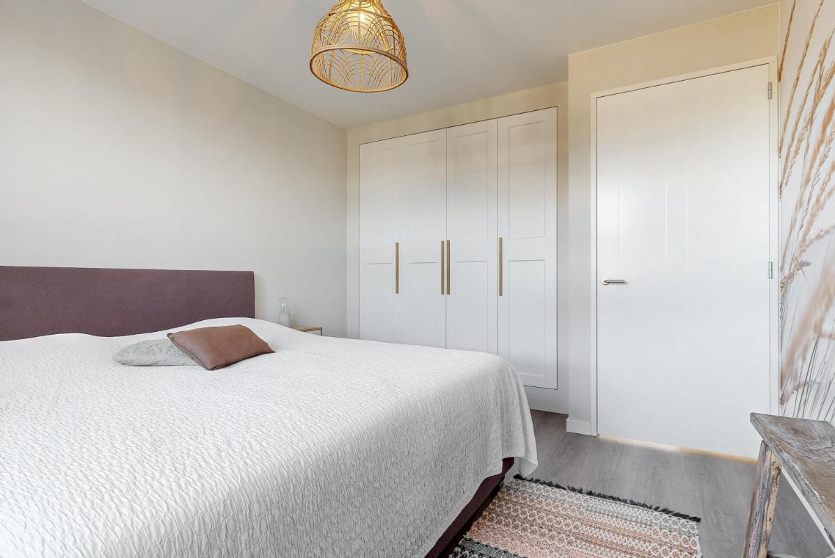 Op de eerste verdieping geeft de ruime, lichte overloop toegang tot drie slaapkamers, de luxe badkamer en de trapopgang naar de tweede verdieping. Twee slaapkamers zijn voorzien van een inbouwkast. De luxe afgewerkte badkamer is uitgerust met een dubbele wastafel met meubel, inloopdouche, hangtoilet en designradiator. Een ideale plek om na een lange dag heerlijk te ontspannen. Zowel de begane grond als de eerste verdieping zijn afgewerkt met een pvc-vloer met vloerverwarming, wat bijdraagt aan het comfortabele woonklimaat.